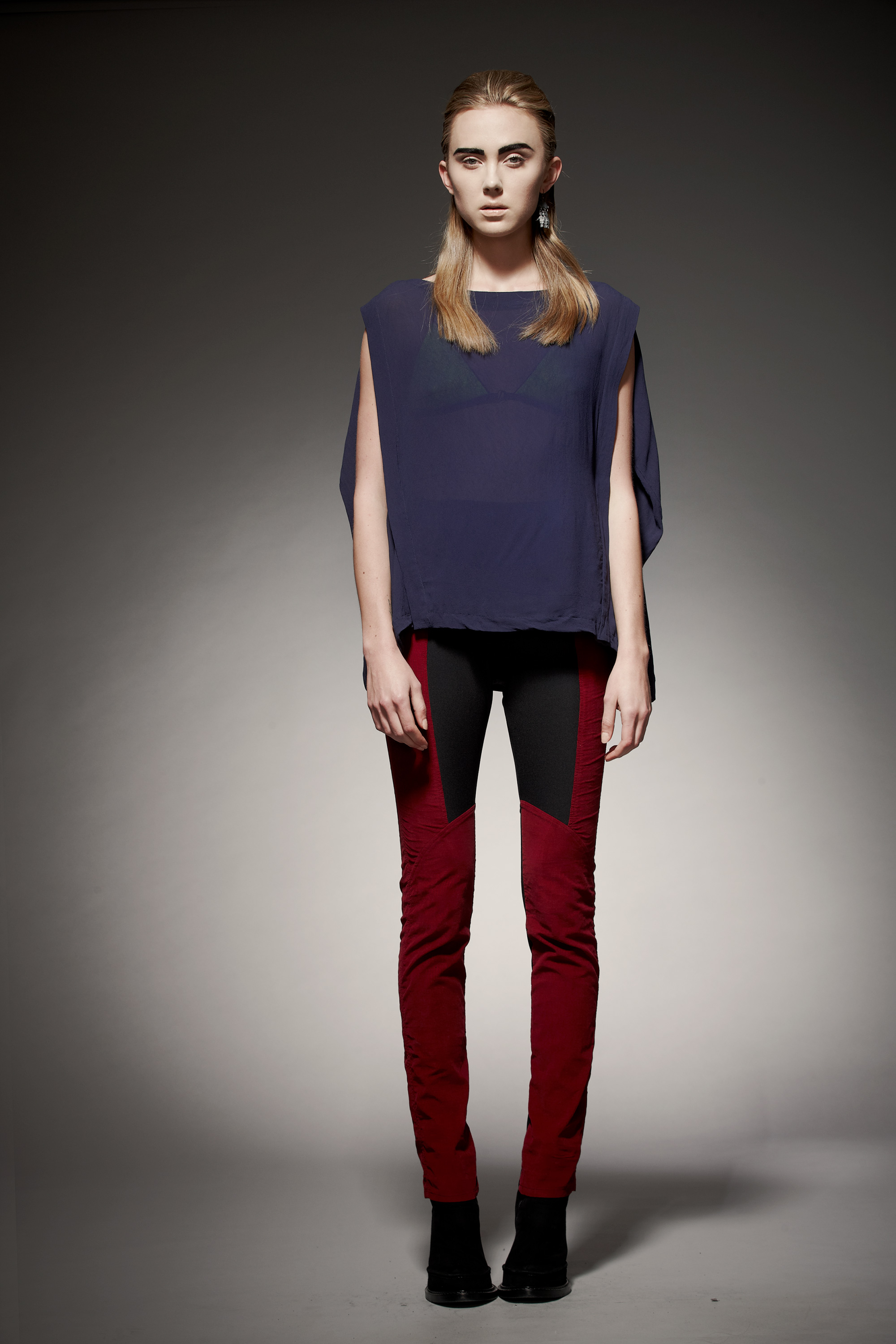 Sara Munro’s Company of Strangers label balances a hard edge look with sexy femininity in the shapes she creates and the fabrics she chooses to work with. The sewing pattern and make instructions for this top are included in the book Home Sewn, which can be purchased from the New Zealand Fashion Museum shop.