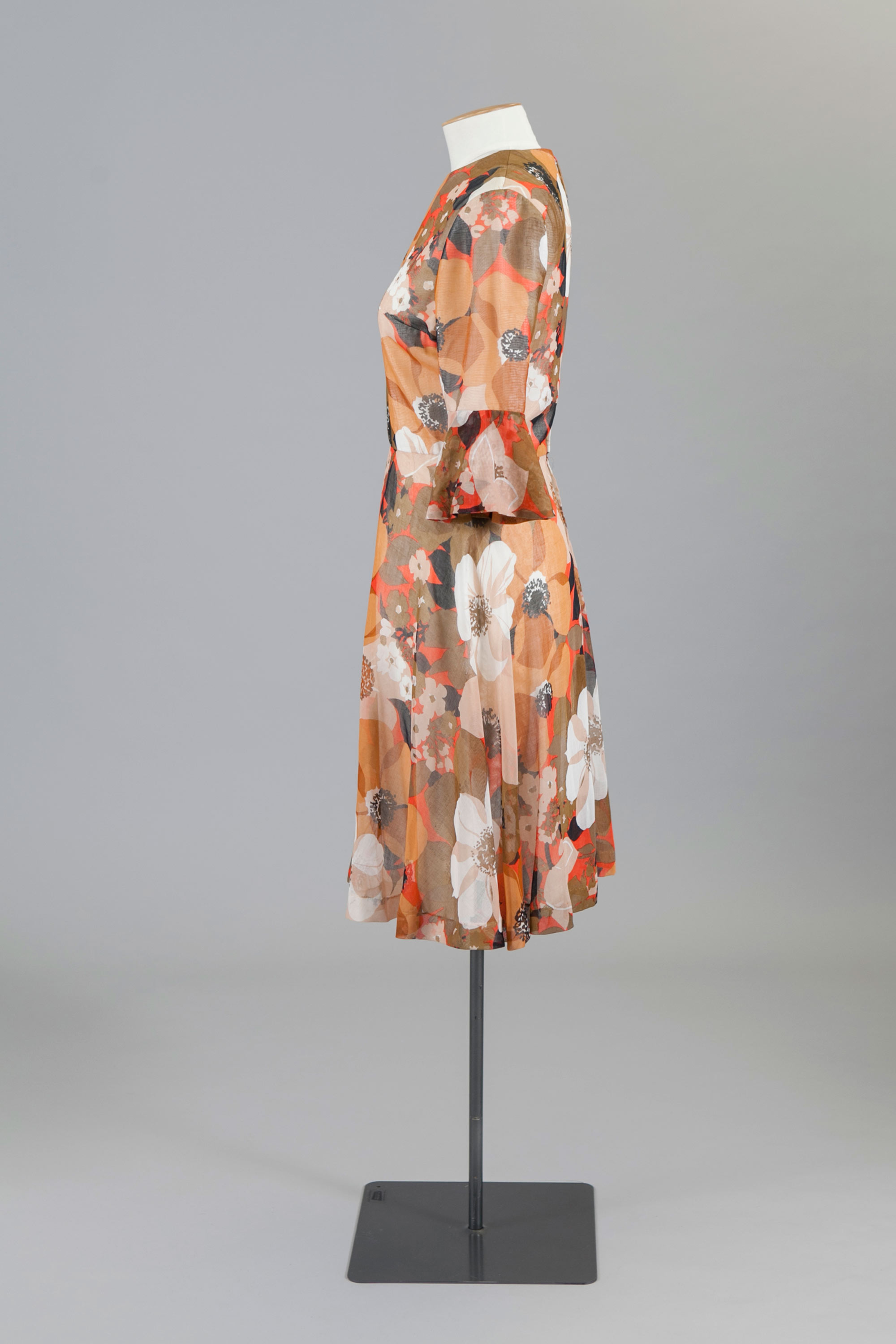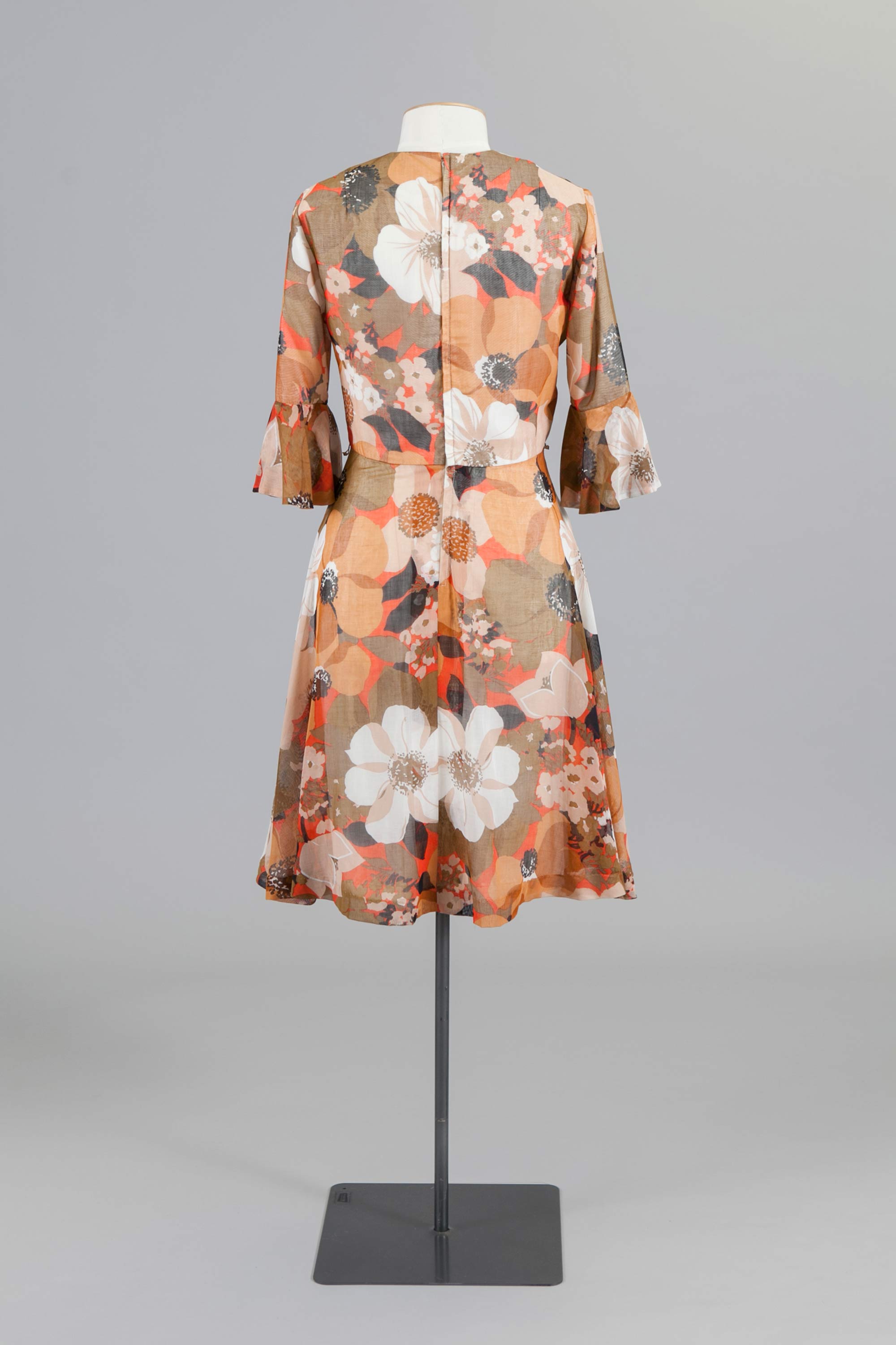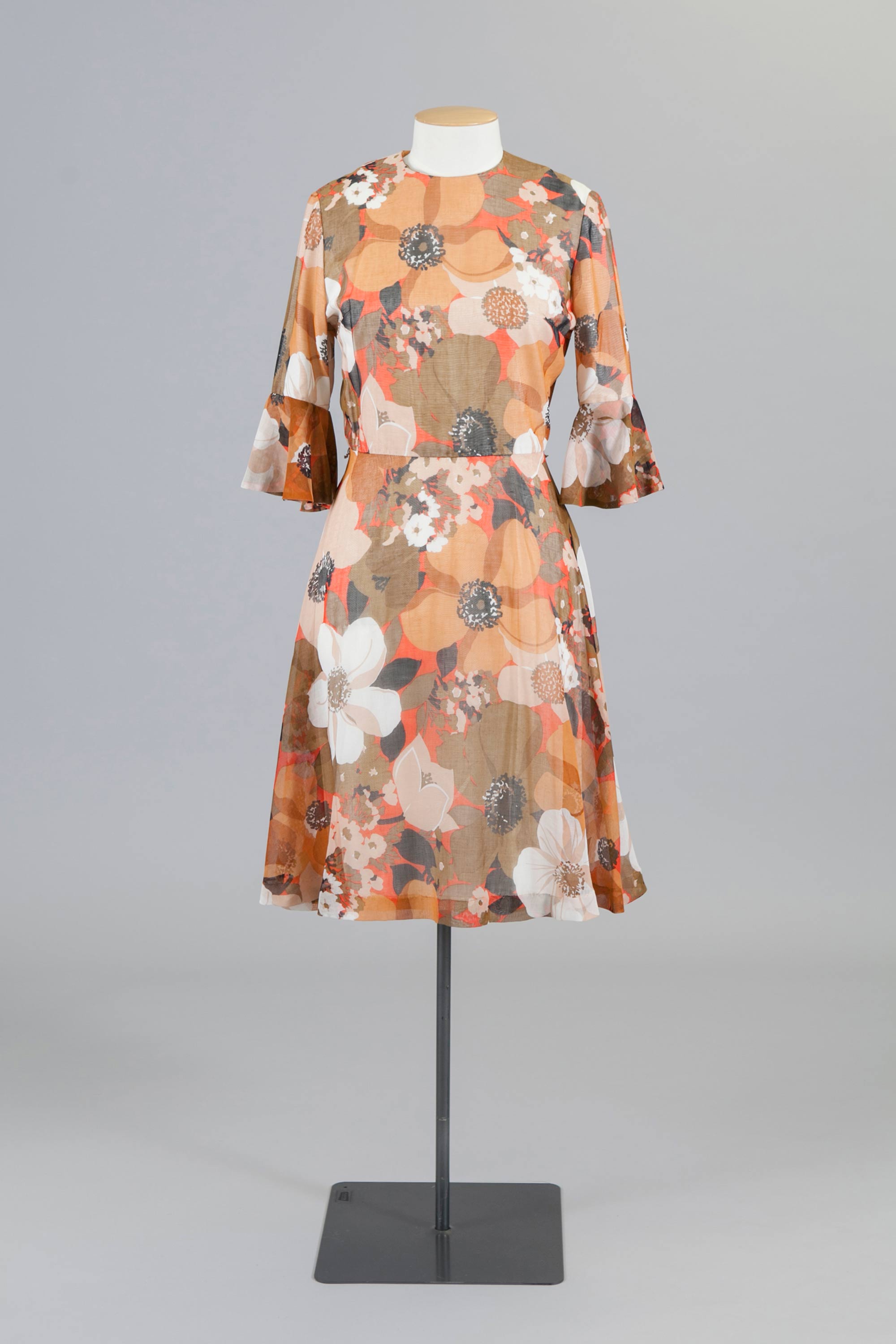 This Babs Radon dress belonged to Gayle Cullwick's mother, Gwen Hopwood. The classic cut of this dress, with its simple bodice, defined waist and A-line skirt provide an elegant form for the sheer fabric's bold floral print to take centre stage.