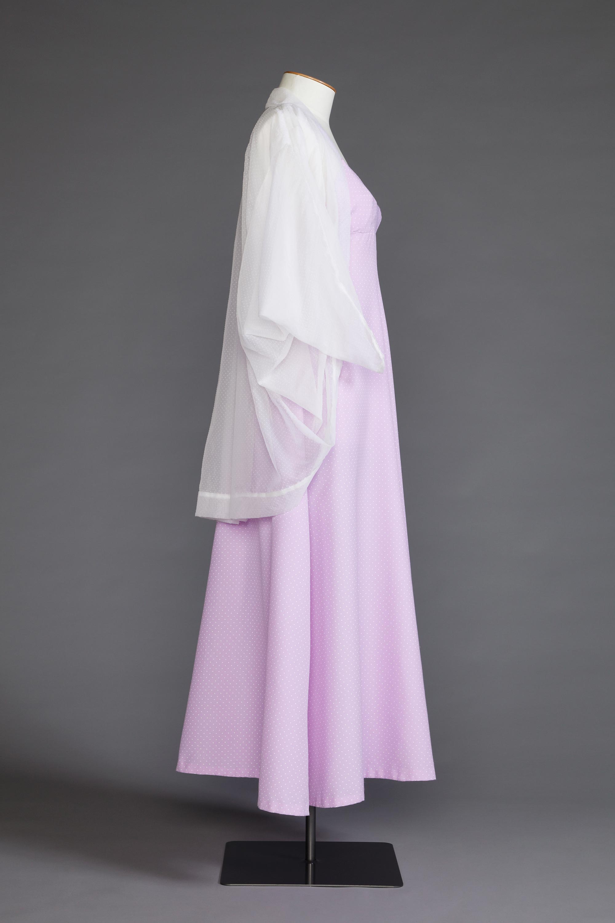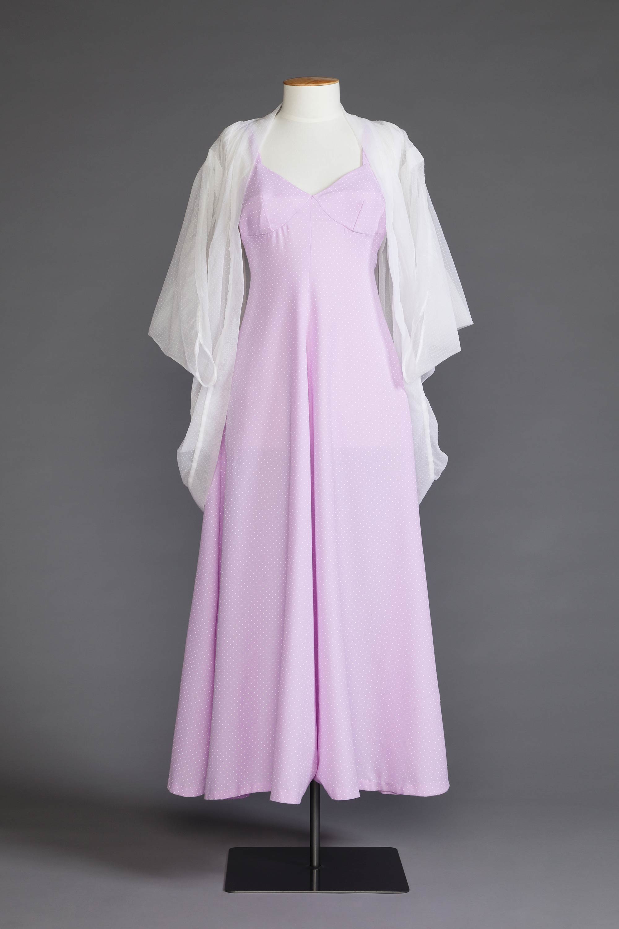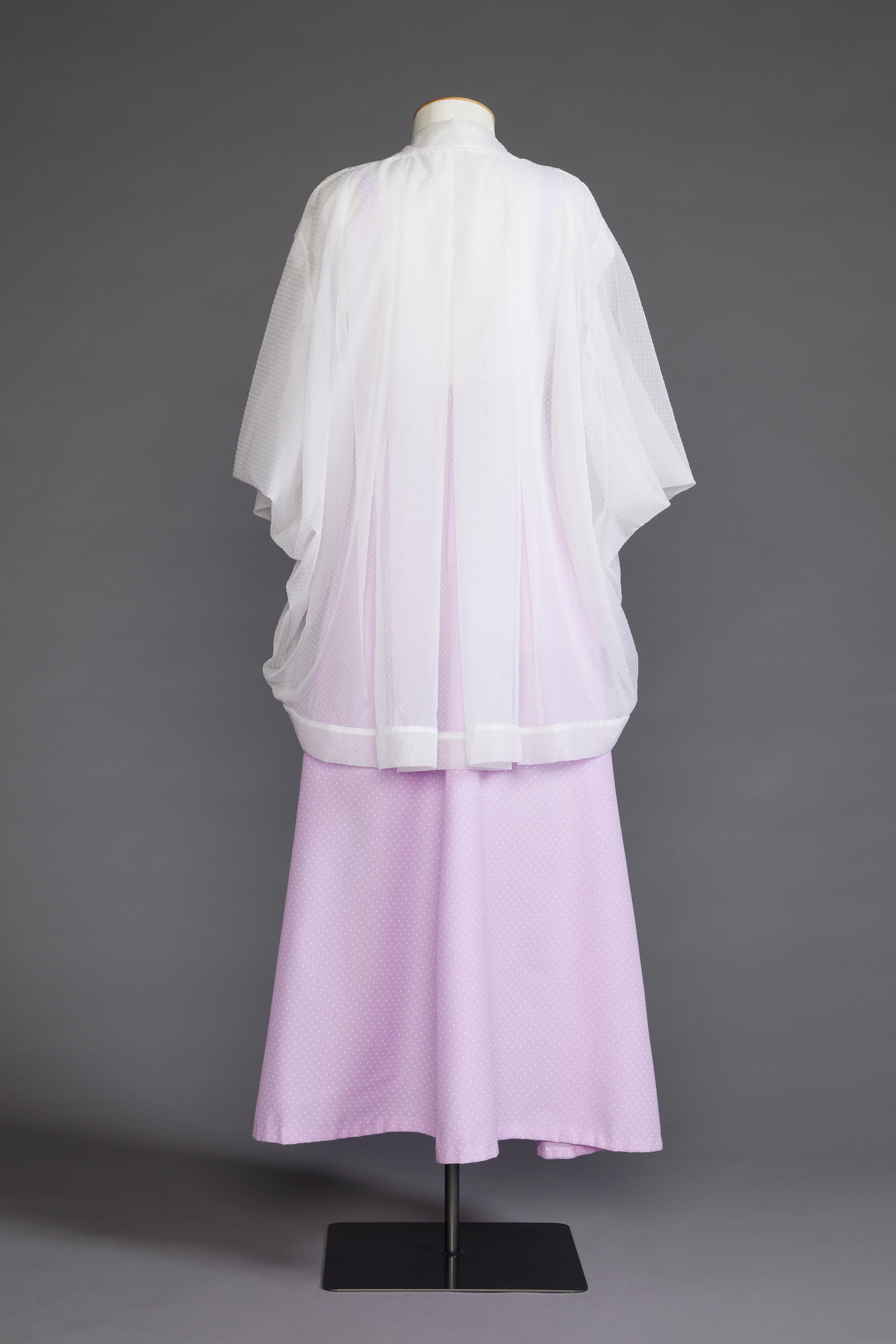 Created for her Pakuranga College Senior School Ball, passionate home sewer Lesley Wedge used this opportunity to mould her first Vogue pattern into a personalised creation together with her mother Anne. This dress encapsulates a pivotal moment in Lesley’s teenage years. On the cusp of becoming a young woman, the dress made her feel poised, confident and chic. There was no doubt that for her school ball the dress would be one of her own creations. Lesley felt that "to have been simply purchased off the rack would have been unimaginative and boring". The choice of polka dot crepe in soft lilac for this formal occasion suggests a playful spirit behind the sophisticated style.