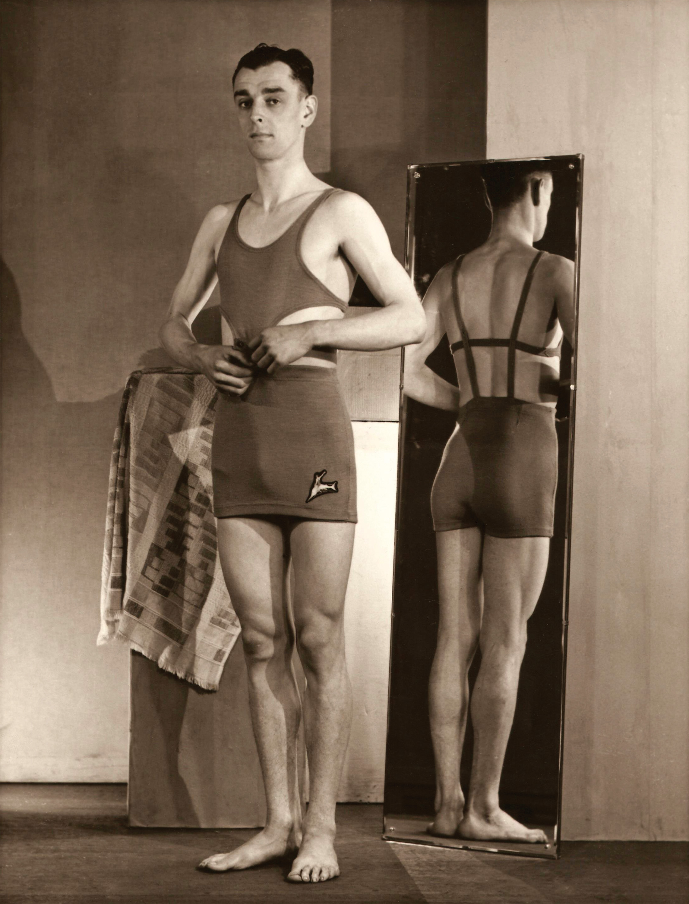 This Speedo bathing suit was manufactured by Manawatu Knitting Mills. The top unbuttons to allow an even tan.