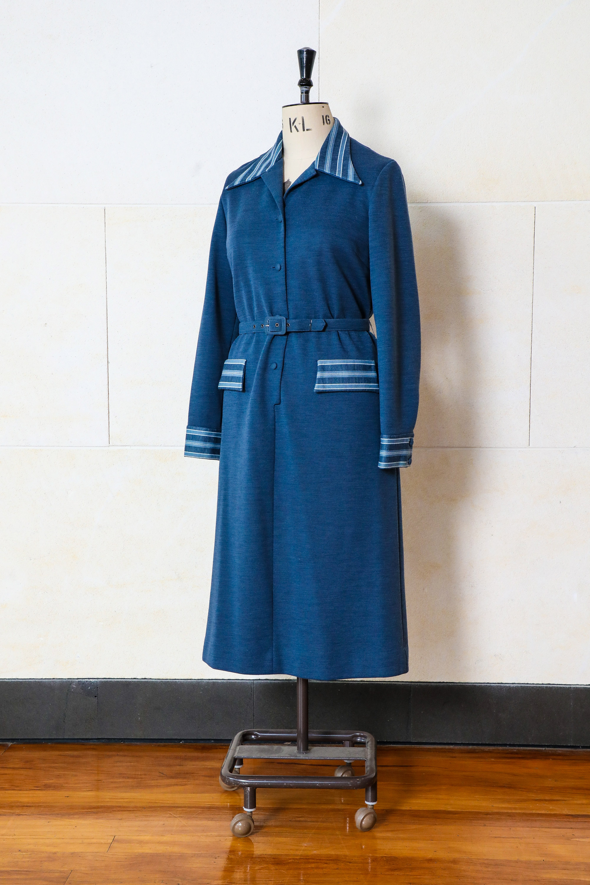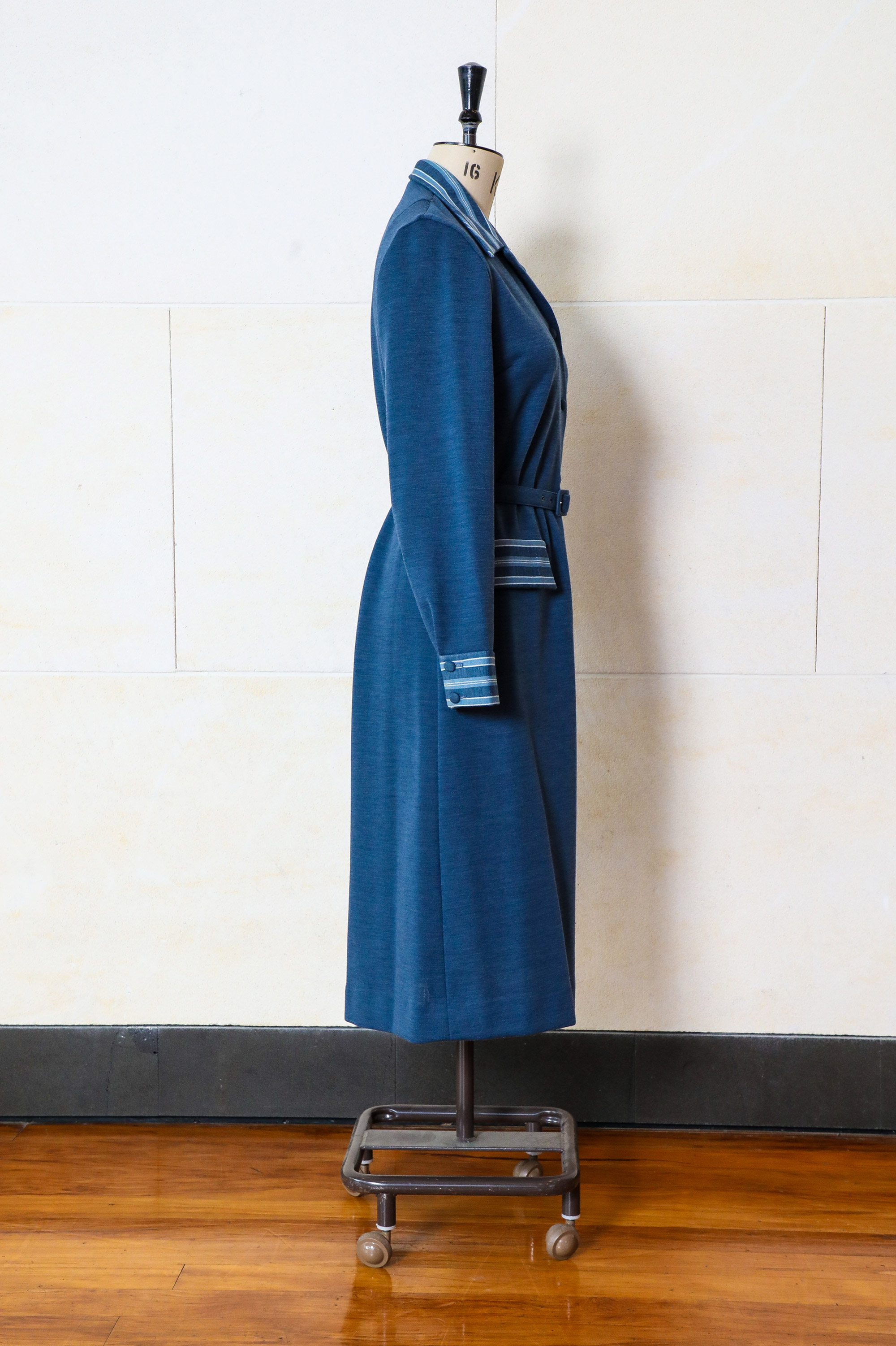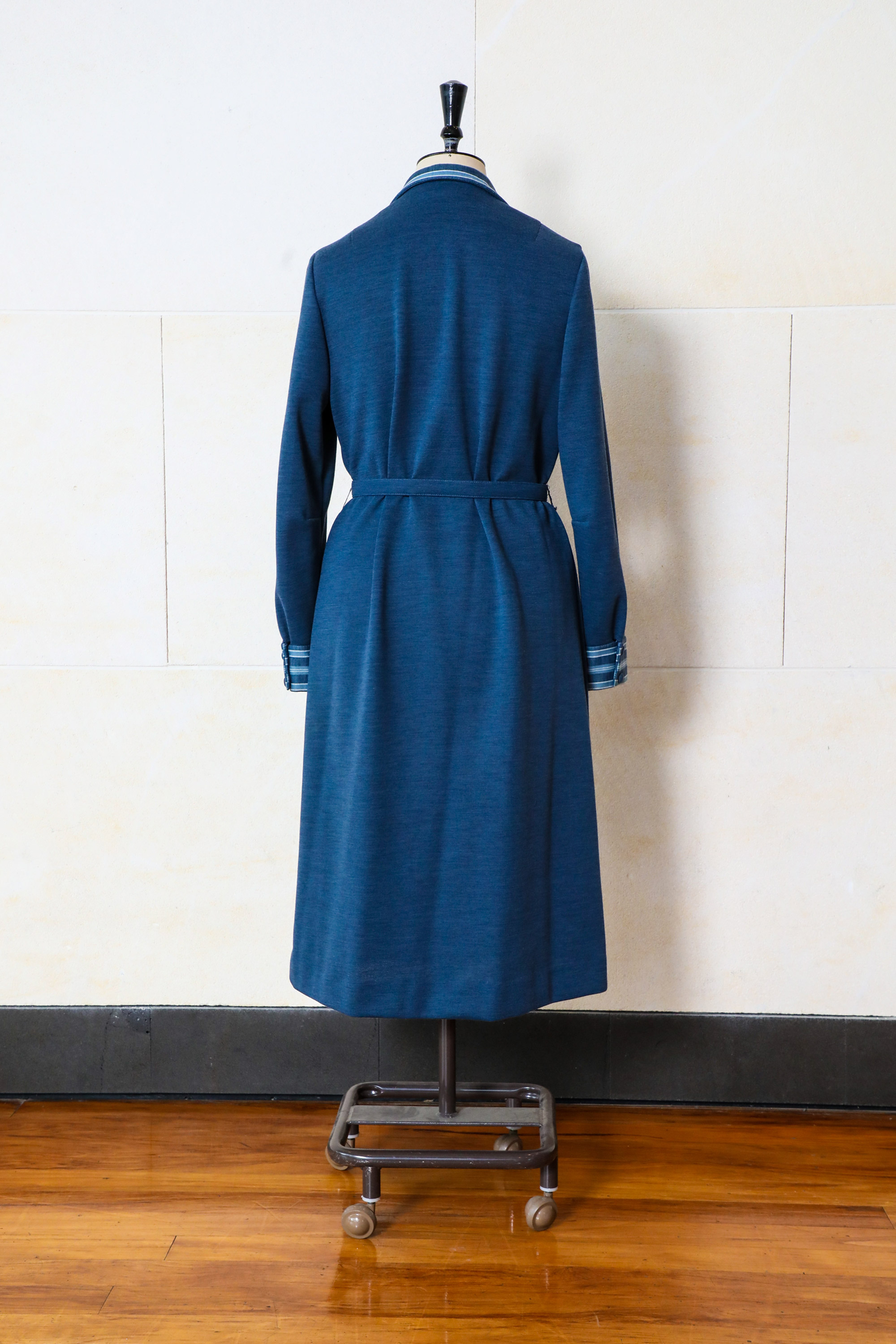 Belted dress with striped collar & cuffs