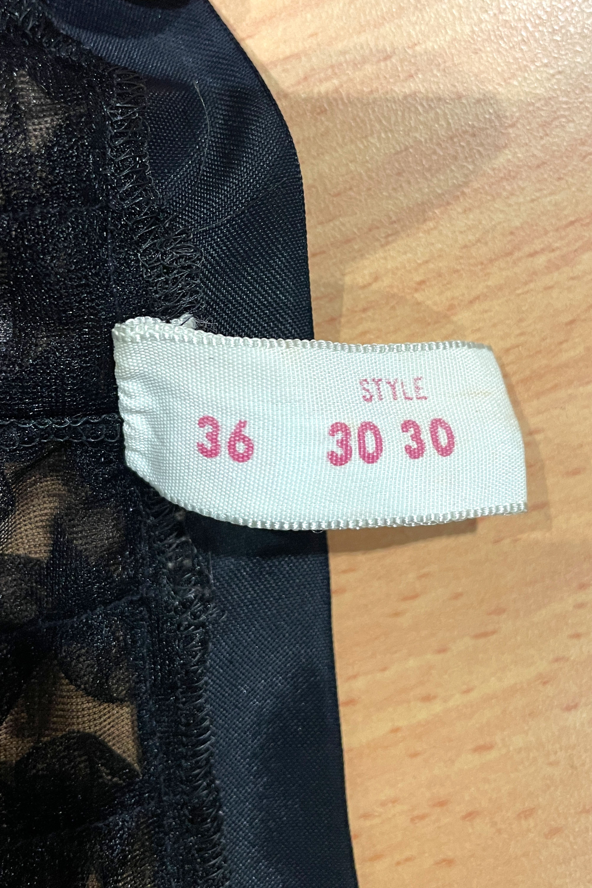 The straps and bow details at the shoulder are made of a co-ordinating black synthetic satin ribbon.