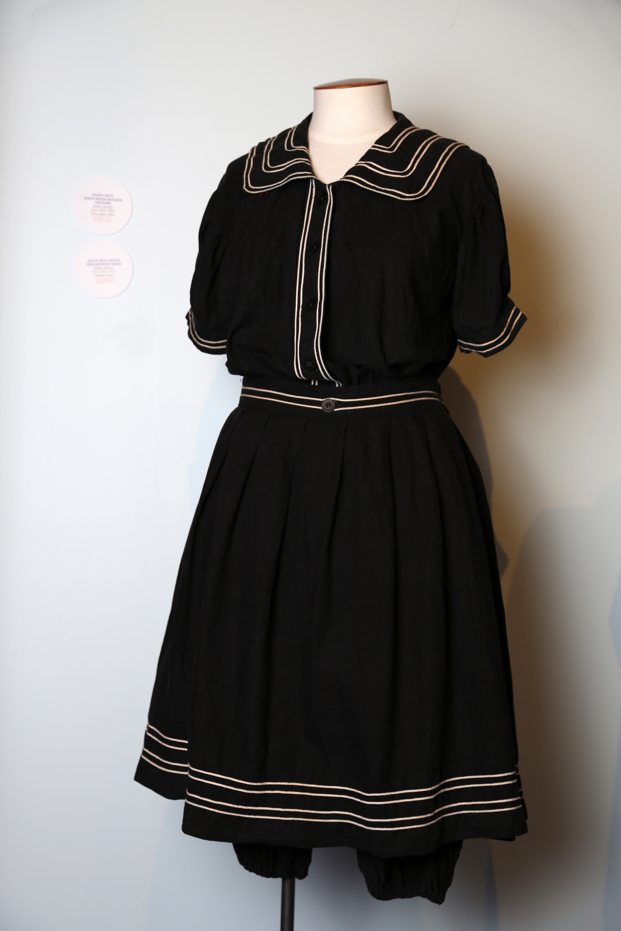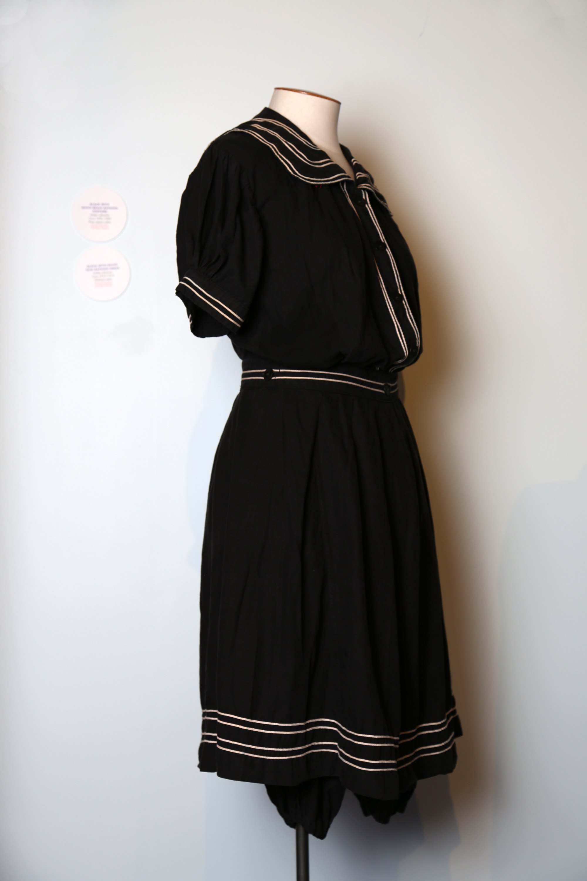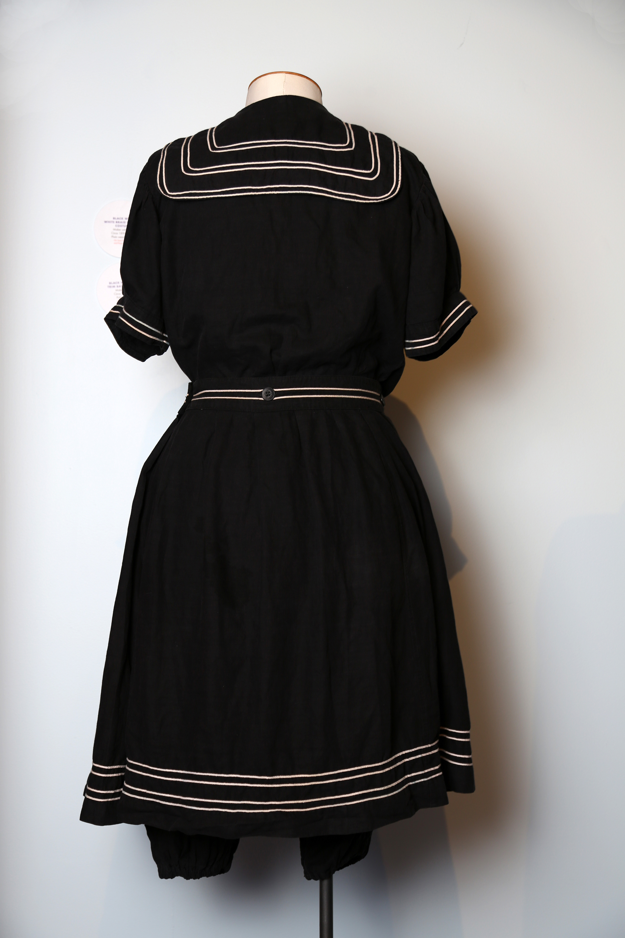 Black bathing costume with white braid