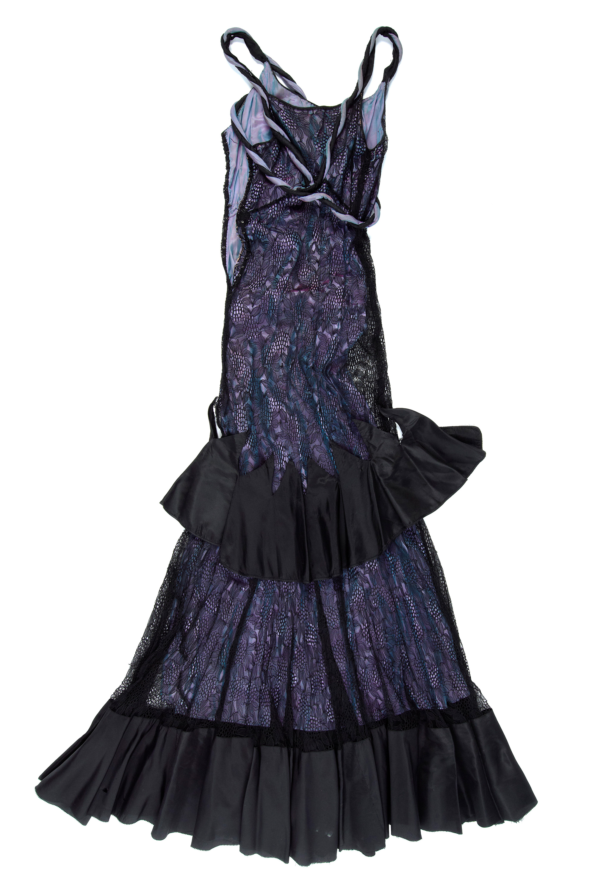 Black lace evening gown with taffeta lining