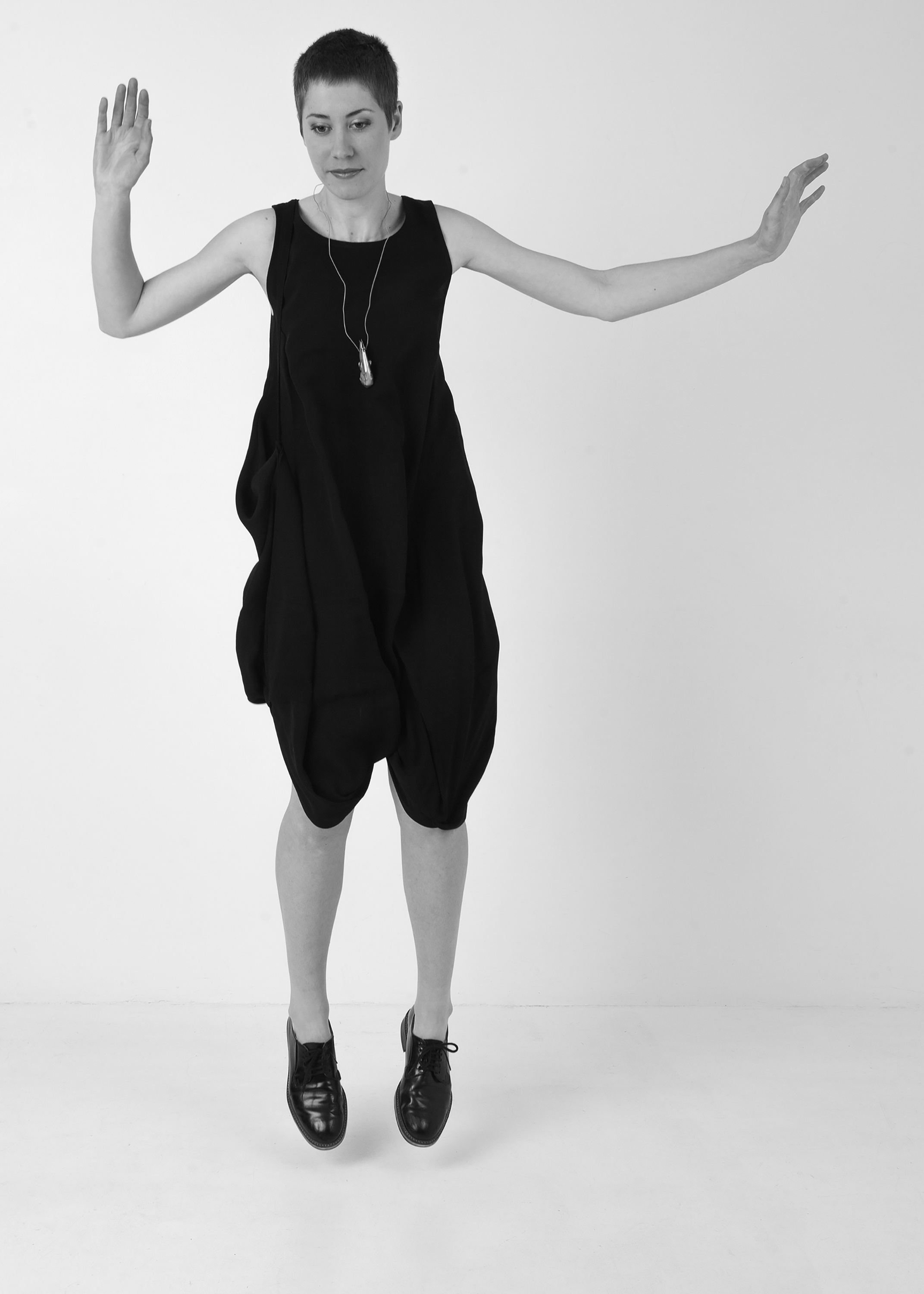 Fraser Crowe’s little black dress creates zero textile waste. The dress has built-in ties to allow the wearer to flip the volume to the back for a slimmer silhouette, or to the front to create a layering detail.