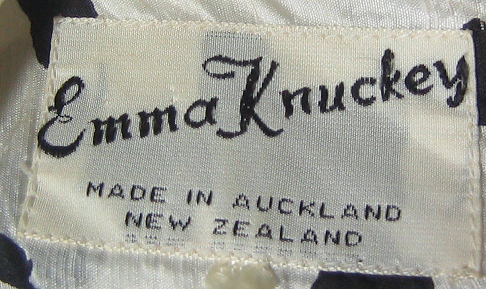 Emma Knuckey gained a reputation for beautifully cut garments, self described as "pure uncluttered design and line which would take the wearer anywhere from morning to dinner at night". She imported her fabric from Europe, very clear that her business was founded on the quality of the material, and the quality of the garment.