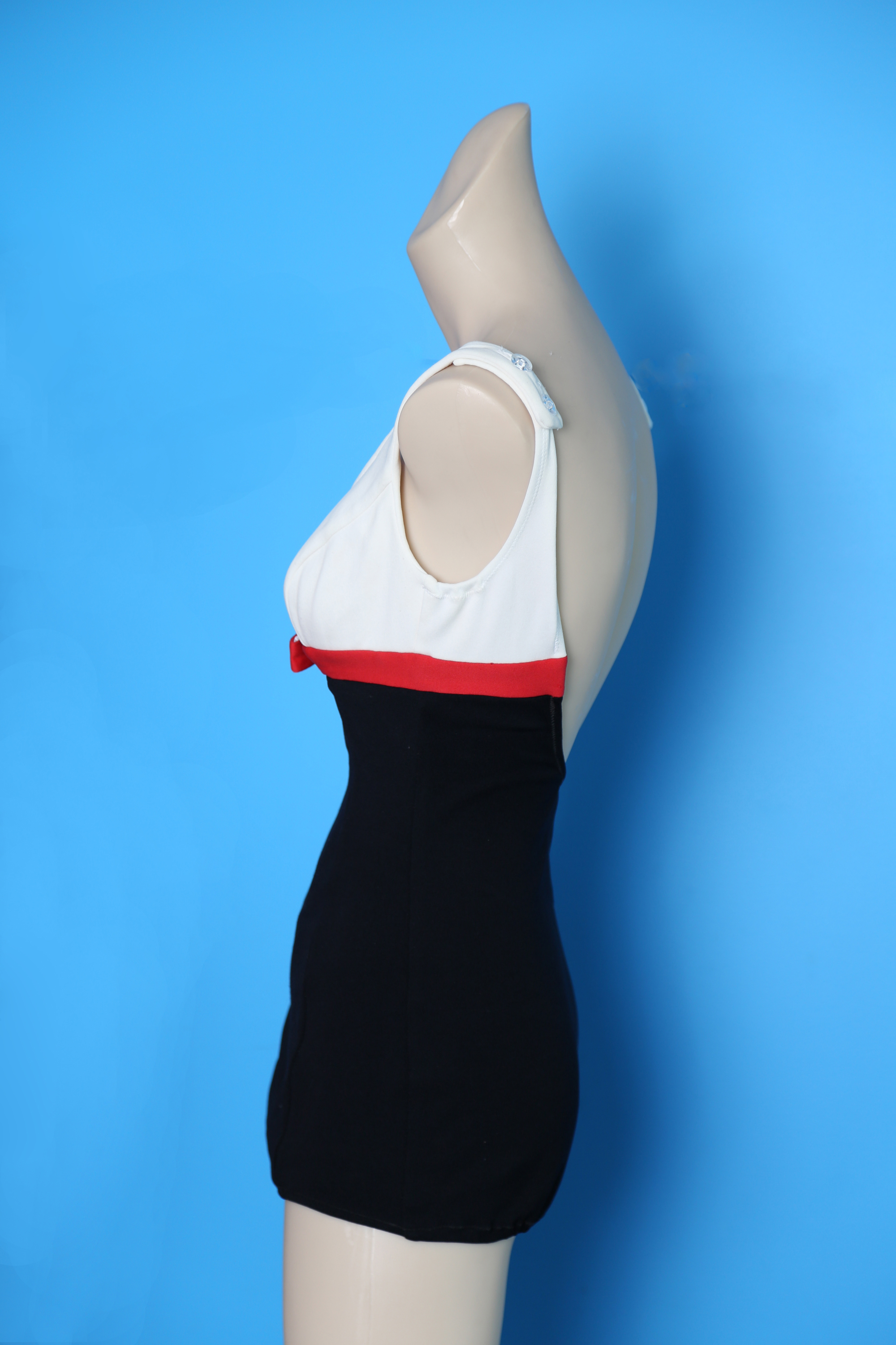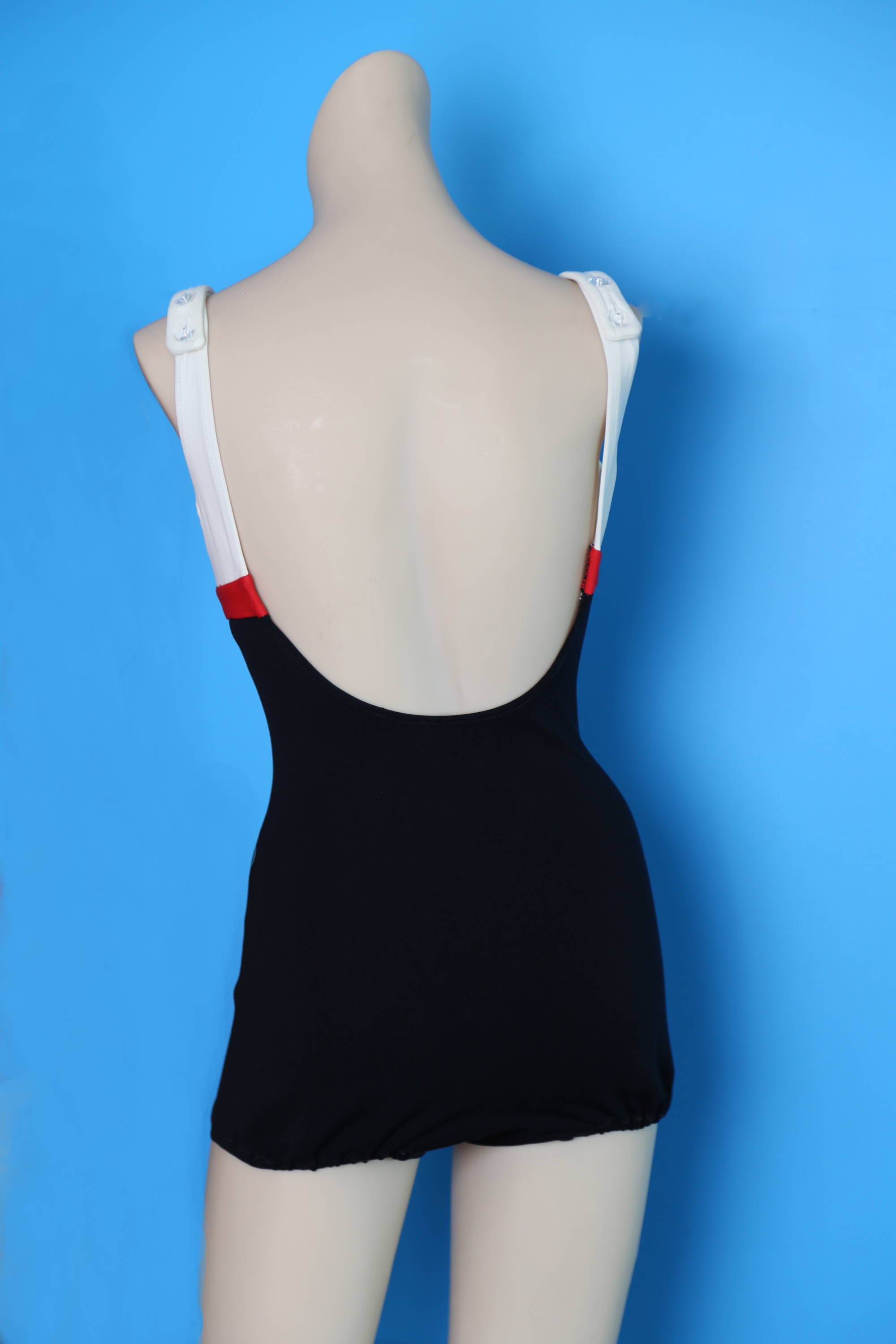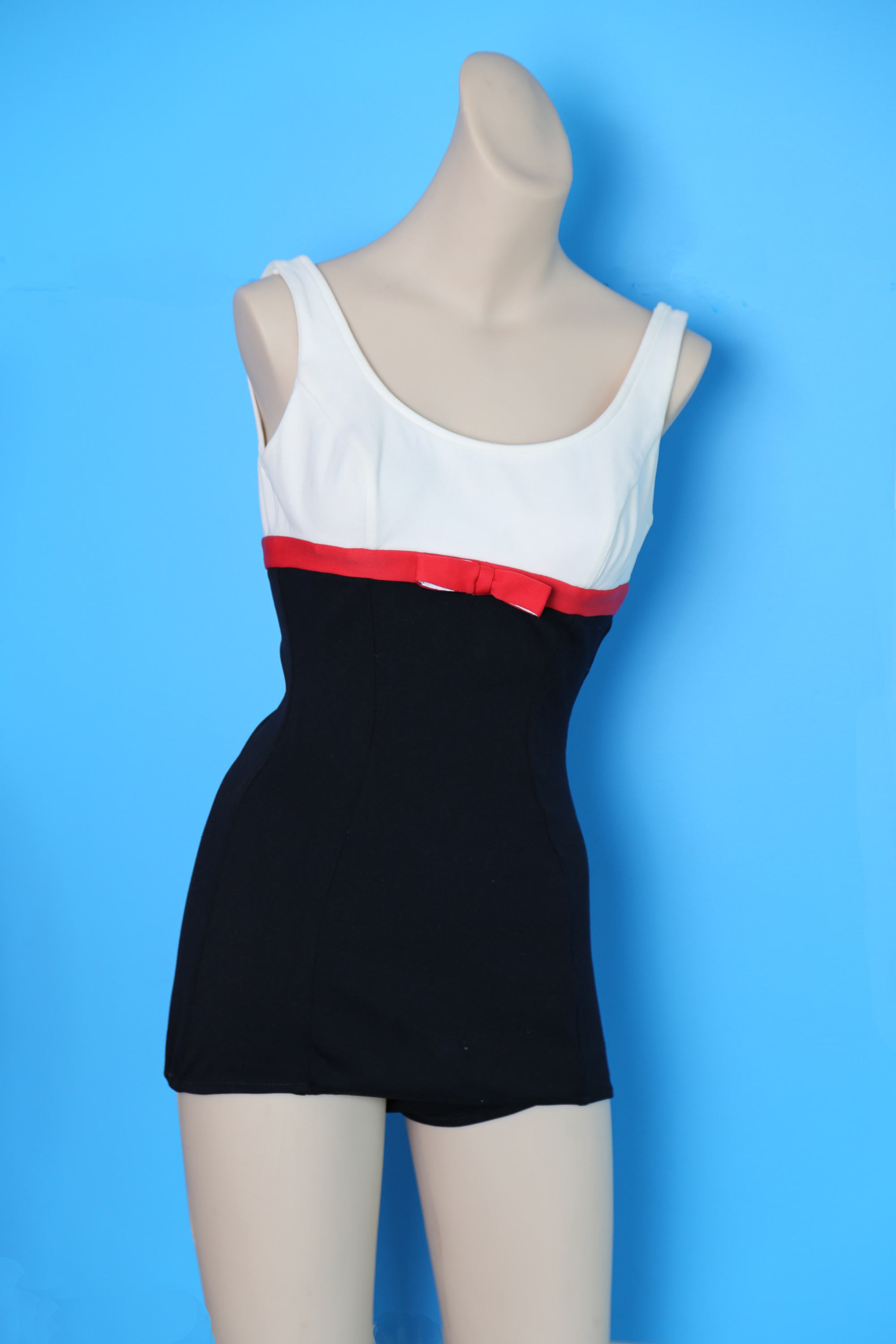 Black & white swimsuit with red bow