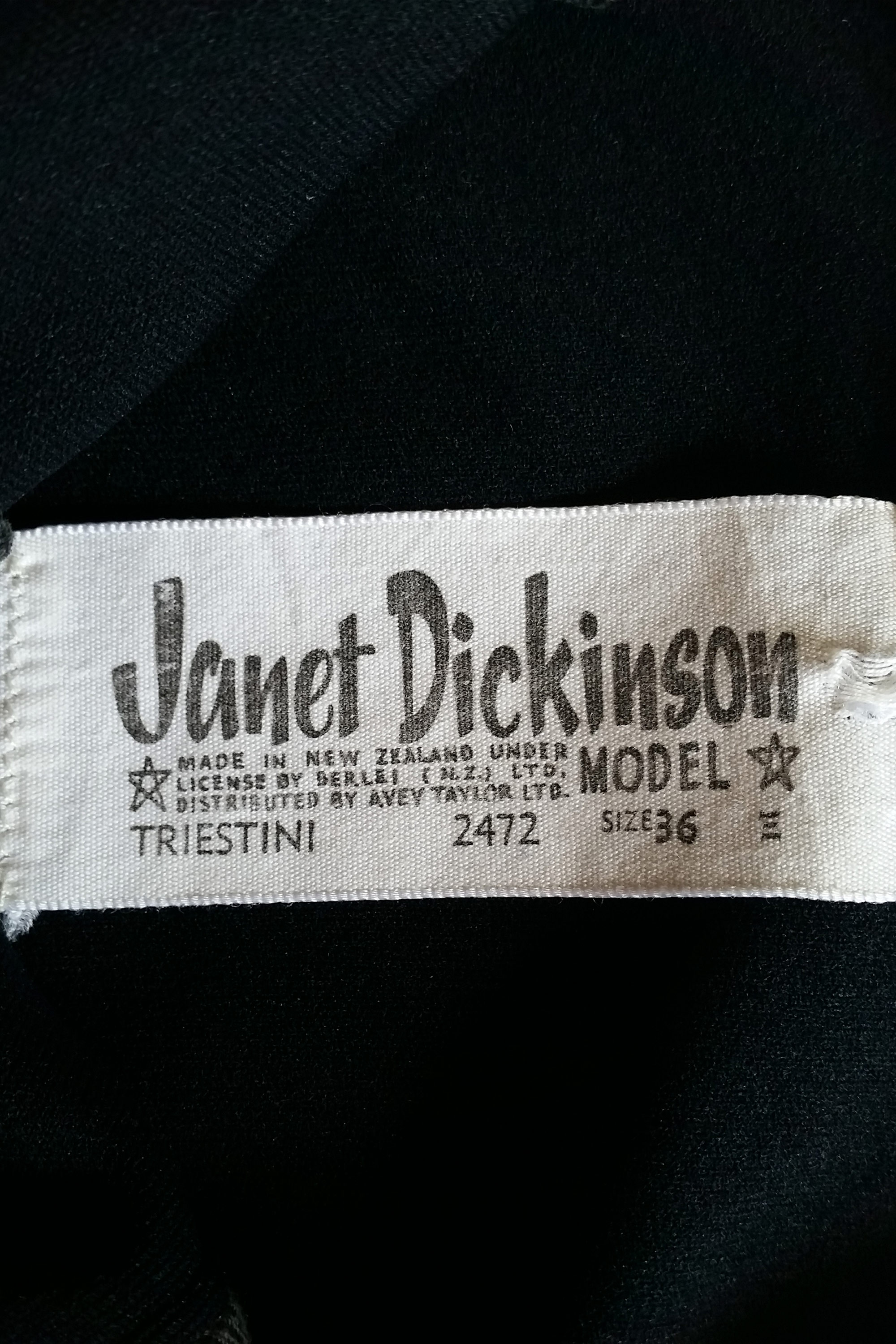 This swimsuit was made under licence by Berlei (NZ) Ltd and distributed by Avey Taylor Ltd.It is made from Bri-Nylon - a nylon fabric trademarked in 1958 by the British Nylon Spinners. This became the default option for swimwear in New Zealand for the next two decades. With its quick-drying properties, its durability and colour fastness, and variety of textures, patterns and rich colours, Bri-Nylon surpassed anything that had come before. It belonged to Janet Macindoe who bought a bach in Manly in 1959. Her daughter Anna remembers says they spent six weeks there every summer holidays. "As kids we would either be sailing (in P Class and later Lasers) or out with all the fathers on their runabouts. Races took place every Wednesday, Saturday and Sunday during the school holidays. The mums would meet on the beach for the start of racing at 2pm, and would sit in their bathing suits, chatting on their straw mats and beach chairs till we all came back about 4.30. Then they would go and prepare dinner and/or get ready for yet another ‘drinks party’ at another family’s bach. The good sunfrocks came out and elegant flat sandals were worn. These drinks parties seemed to take place most nights. The food used to be chips and onion dip, cheese and pineapple on toothpicks, peanuts and homemade pate on Snax crackers."