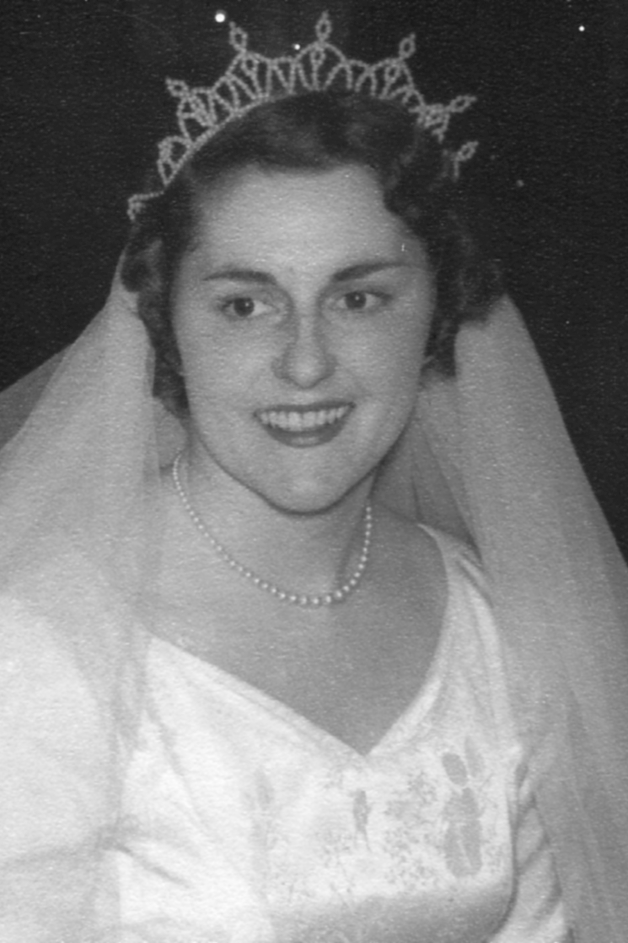 Display artist Hazel Craig was also a self-taught milliner who opened her own salon The Gold Room on Dowling Street in the mid-1950s. She specialised in the design of hand-made model hats and bridal headwear, primarily coronets and tiaras fashioned from pearls. This tiara was made for Greta Haslemore, whose marriage to Reg Barton took place in Dunedin in 1955.