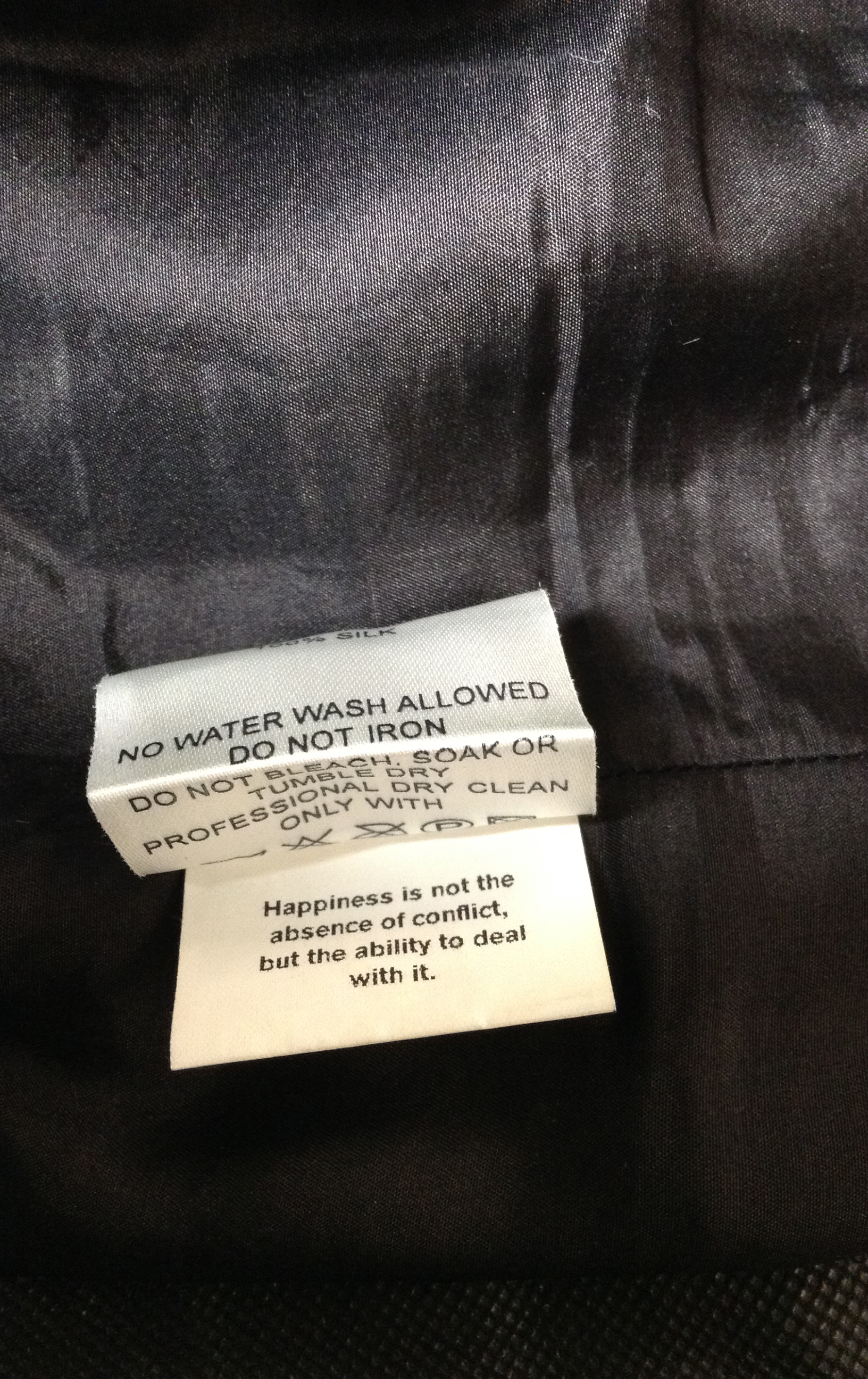 This bright sequin cocktail dress by Trelise Cooper has "Happiness is not the absence of conflict, but the ability to deal with it" written on the care tag. Trelise likes to include small details like this to give the wearer something special.