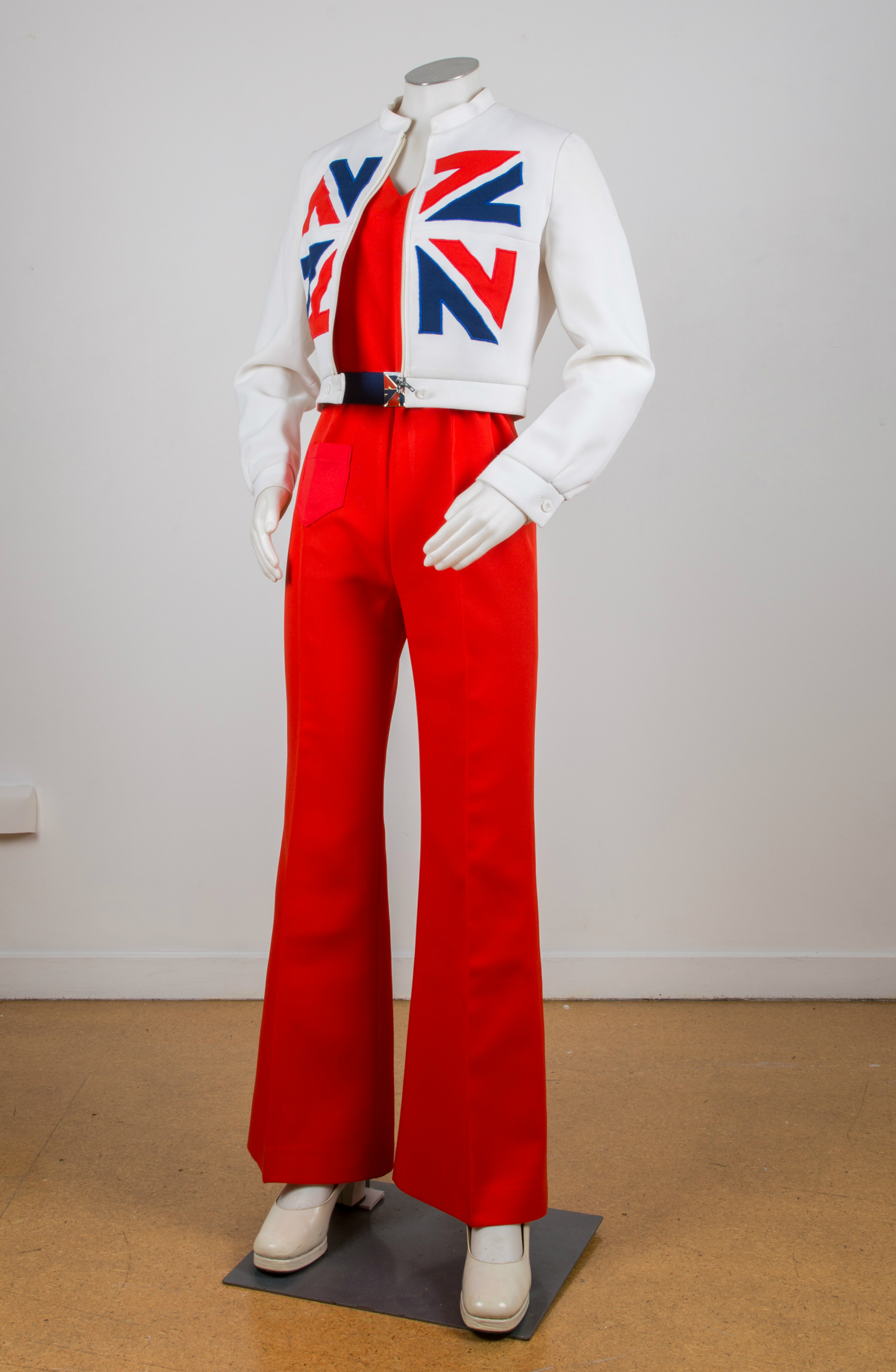 In late 1973, a young New Zealand fashion designer, Jane Daniels, was announced the winner of a nationwide competition for the design of the 'victory hostess' uniforms to be used at the 1974 British Commonwealth Games in Christchurch the following summer. The role of these hostesses was pivotal in the plan of 'The Games' (as they were popularly known), as the victory hostesses were to carry the medals out to the victory ceremonies following the final of each event. Applications to perform this role poured in from young women throughout the country. Among the victory hostesses eventually selected was Oamaru teenager Chris Garey who later described her role as "the experience of a lifetime". She has maintained a strong link to this experience by taking up the opportunity to purchase her uniform immediately after The Games and has preserved it carefully for more than 40 years. Jane Daniels' competition winning entry was yet another triumph in the 20-year-old's burgeoning career as a fashion designer and followed a string of such successes over the previous four years. These included two successive wins in the prestigious Apparel Cup, and three New Zealand Fashion Showcase awards, one of these a design for a Miss New Zealand gown to be worn on the international stage. As for the design itself, Jane's total look for the victory hostesses' uniform teamed perfectly with the stylised modernism of Colin Simon’s iconic games symbol, and was the outcome of a well grounded yet inspired approach to the competition brief. Her rationale of entry submitted to the competition, carefully outlined the core priorities of her design; it could well serve as a master class in strategic thinking. In discussing her priorities Jane took what may seem a surprising approach for a fashion designer by ranking practicality most important of all, noting that "some venues may be windy and both hands of the Victory Hostess will be holding the Victory Cushion". This clear-headed understanding of the physical context for which she was designing is again evident when she later notes that "the garment must be practical, distinctive, and easily recognisable from a distance". In this regard she demonstrated a strong understanding of the role that colour would play in her design by rejecting the use of colour prints that "would blur into colours other than those of The Games when seen at a distance". Here she stipulated that "white should predominate", in order that the victory hostesses could be easily distinguished from the uniforms of the officials and also "stand out from the brown of the track and the green of the inner stadium". This was no small consideration for this particular event. The Games were to be broadcast live and for the first time New Zealanders would be viewing them on colour television, a new technology in homes around the country. Uniformity was also an essential quality of Jane's design intentions and led to her decision that the hostesses would be more suitably kitted out in trousers rather than skirts. "It became evident that trousers would present a neat unbroken line," she reasoned, "whereas the heights of the victory hostesses would differ slightly, thus varying skirt lengths and presenting not as tidy a picture". Trousers, Jane also successfully argued, "were acceptable as both day and evening wear". Even the belt buckles were custom designed as part of her total look. A further priority of Jane's planning was the task of ensuring that "the garment must be representative of New Zealand" and in addressing this, she turned to Māori culture for a cue noting, "I had only to look at Māori history and culture for inspiration ... thus the modern representation of the traditional feathered cloak worn by Māori chieftains appears as the short cape." Jane's cogent rationale was accompanied by a number of highly accomplished sketches, which combined to persuade the judges to award her the $250 first prize and see her designs feature as a production highlight of the Christchurch Games. The uniforms were manufactured by Christchurch manufacturer Cantwell Creations, which were also sponsors of the victory hostess design competition. Shortly after the Christchurch Games, Jane travelled to London where she spent a number of years developing her career as a fashion designer. This included a very intensive year of training at the prestigious private fashion school founded by the highly acclaimed pattern maker, Natalie Bray. After returning to New Zealand she established her own Auckland based label, Jane Daniels, which continues to feature as a leading New Zealand fashion design label.