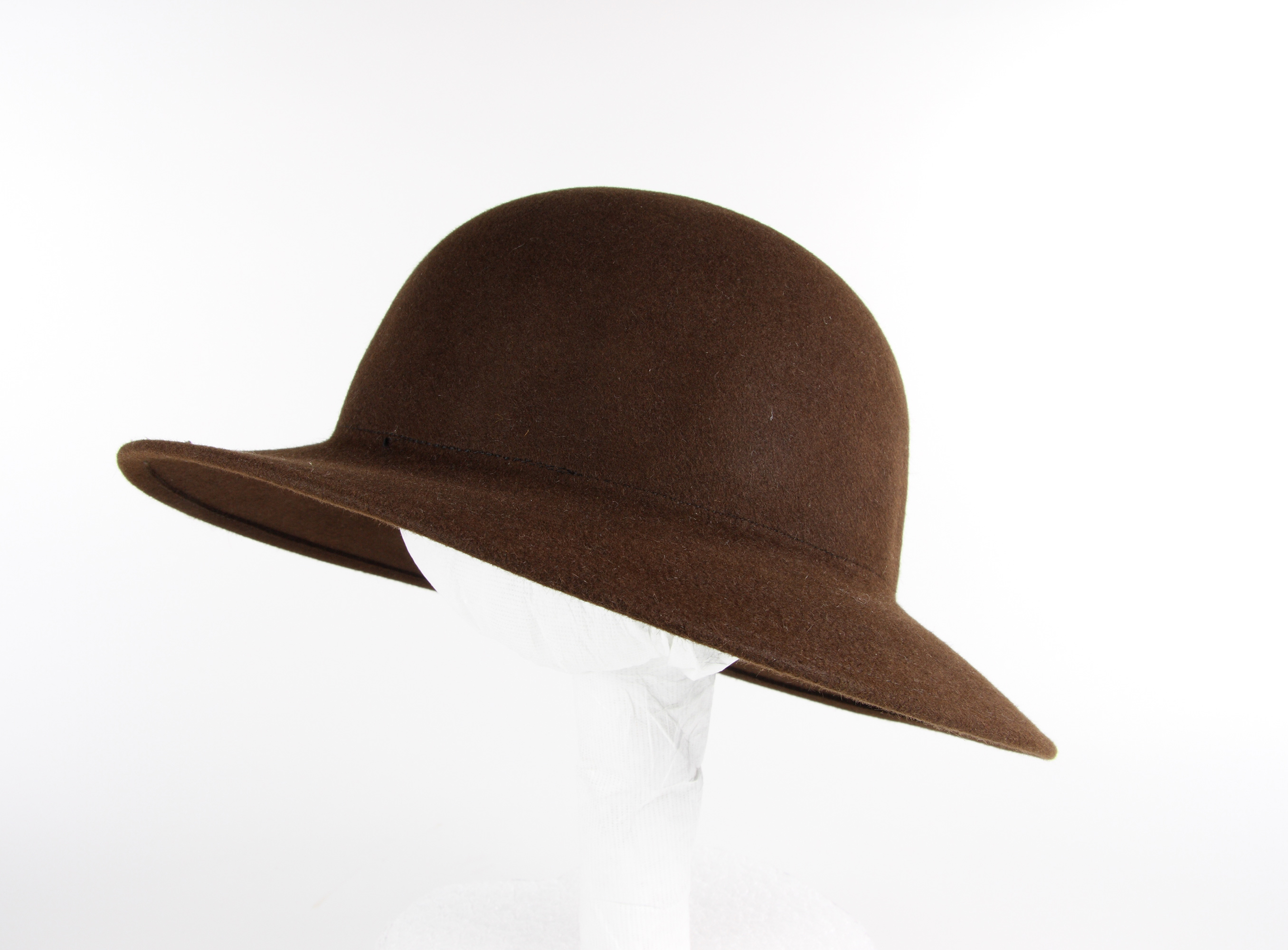 Despite the downturn in the hat trade, Treister Hats stayed in the business longer than most of its competitors by manufacturing a wide variety of styles for both sexes. School uniform felts, Fred Dagg canvas cow-cocky hats, Annie Hall derbys and high-domed Courrèges-style air hostess hats (for Air New Zealand) were among the many other specialised items manufactured by the company over the years. This hat was worn as part of the girls' uniform of Wellington High School in the 1940s.