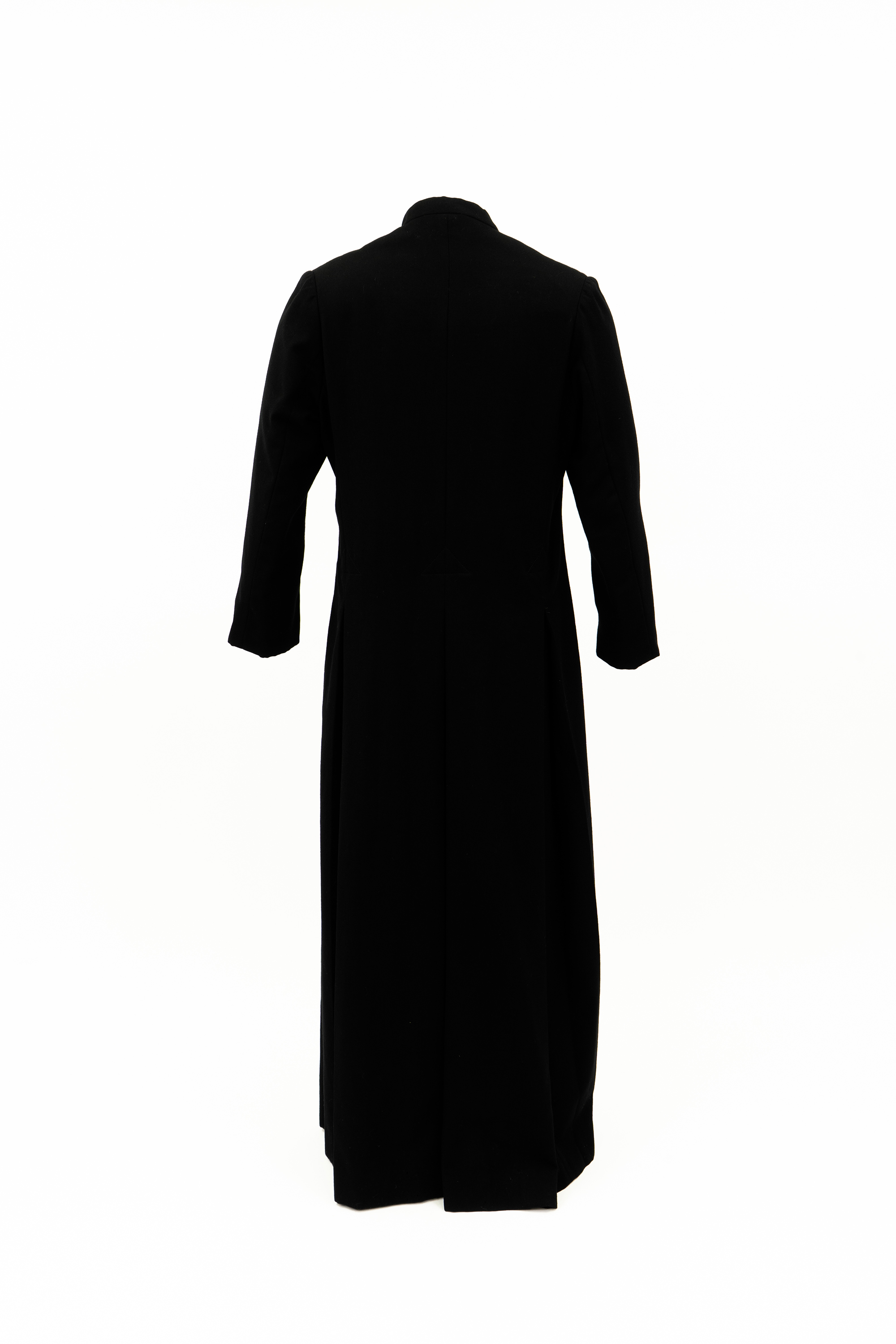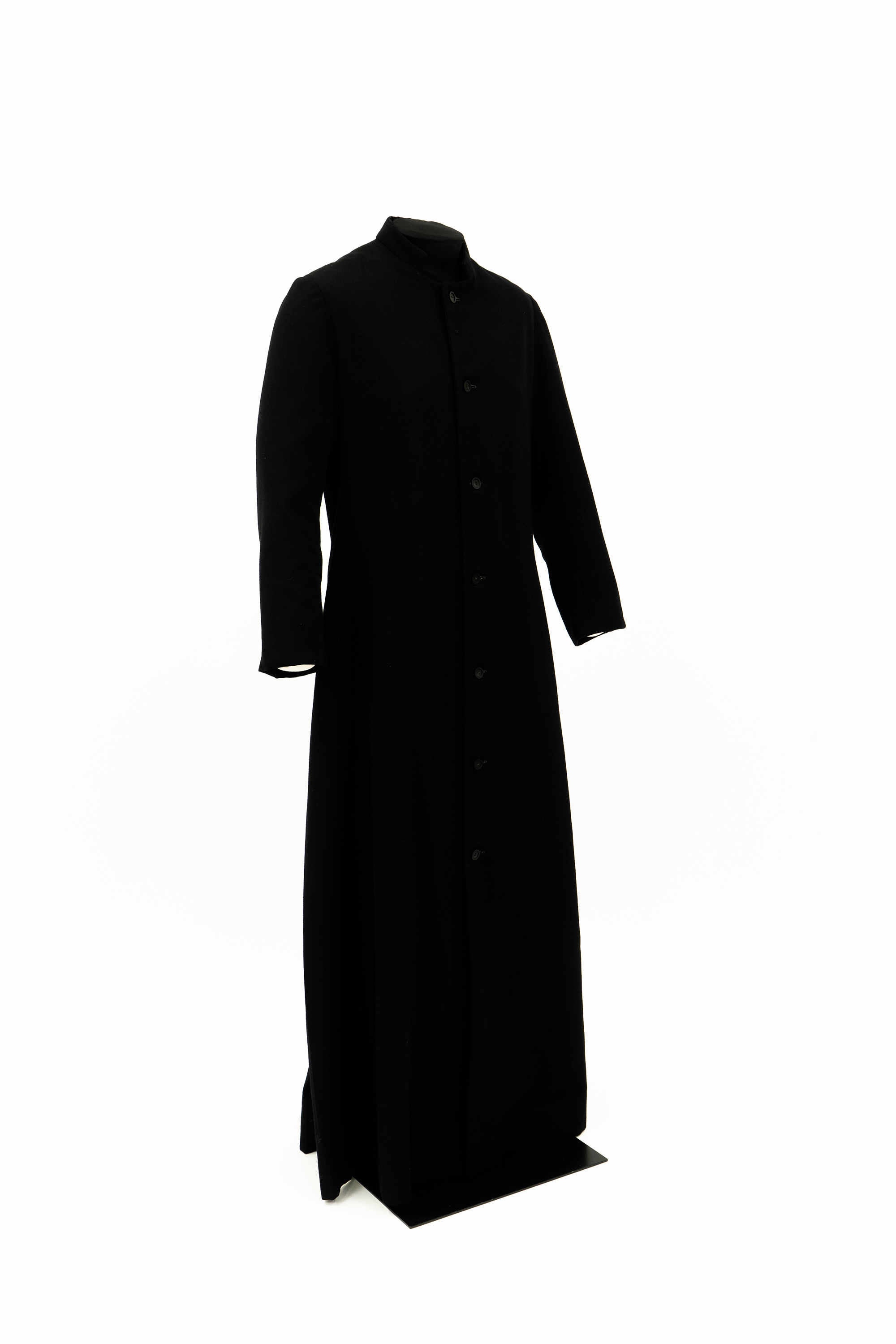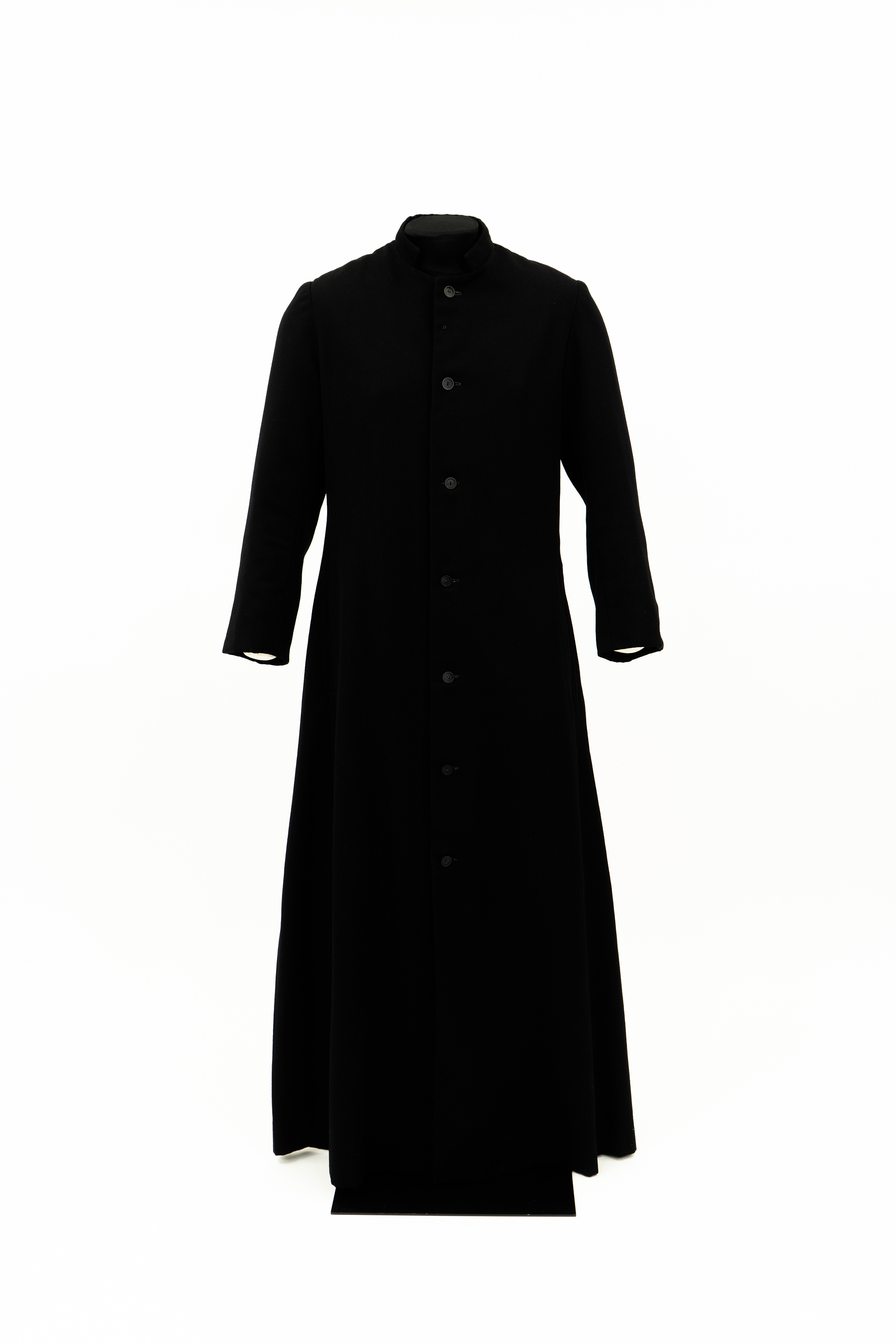 Colin Cole was one of New Zealand’s leading designers from the late 1950s through to the 1980s. He aspired to make women look their best, while pushing at the boundaries of convention with his striking yet feminine designs. In the 1970s Colin had a brief foray into menswear design, where he designed this cassock coat and a corduroy knickerbocker suit.