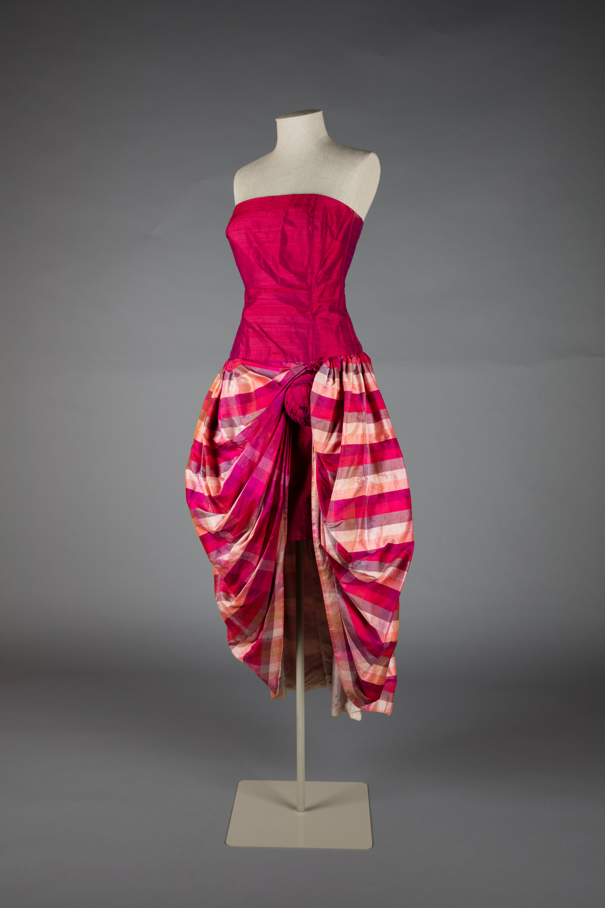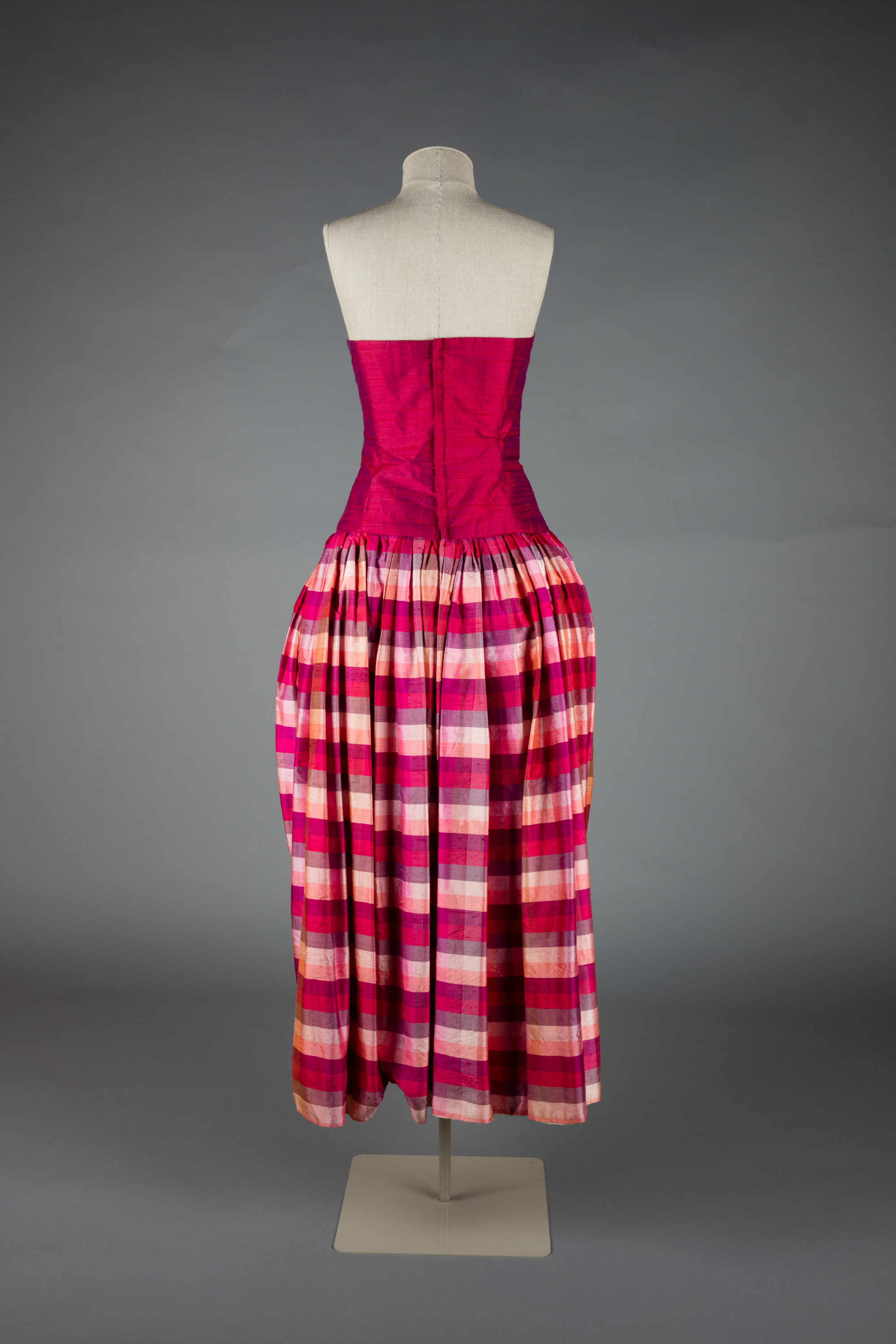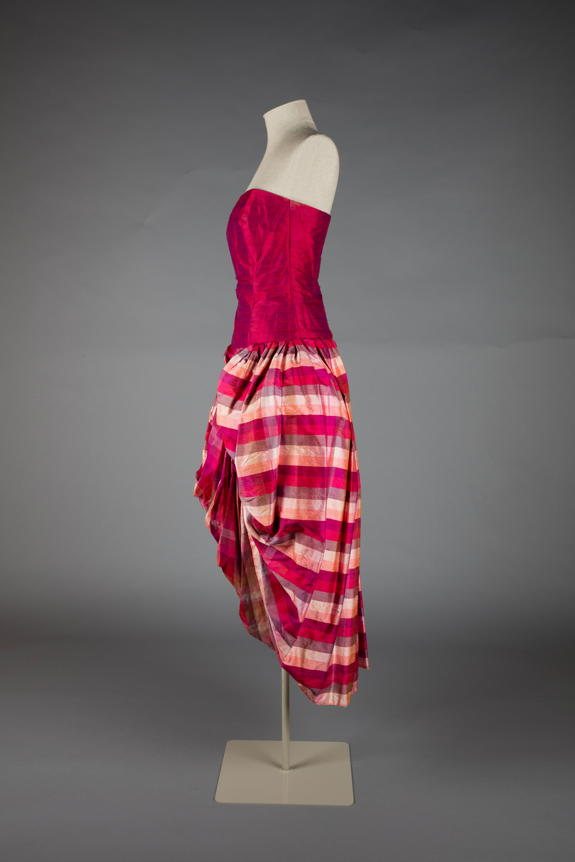 Hilaire Field had a birthday looming and the dress she had bought wasn't right so she called in to see Tim Allan and he gave her this dress to try on. It fitted perfectly. She also had shoes that matched perfectly that were bright cerise, pointy toe and a very high slim heel. The main body of the shoes had clear plastic in cut outs of the leather.