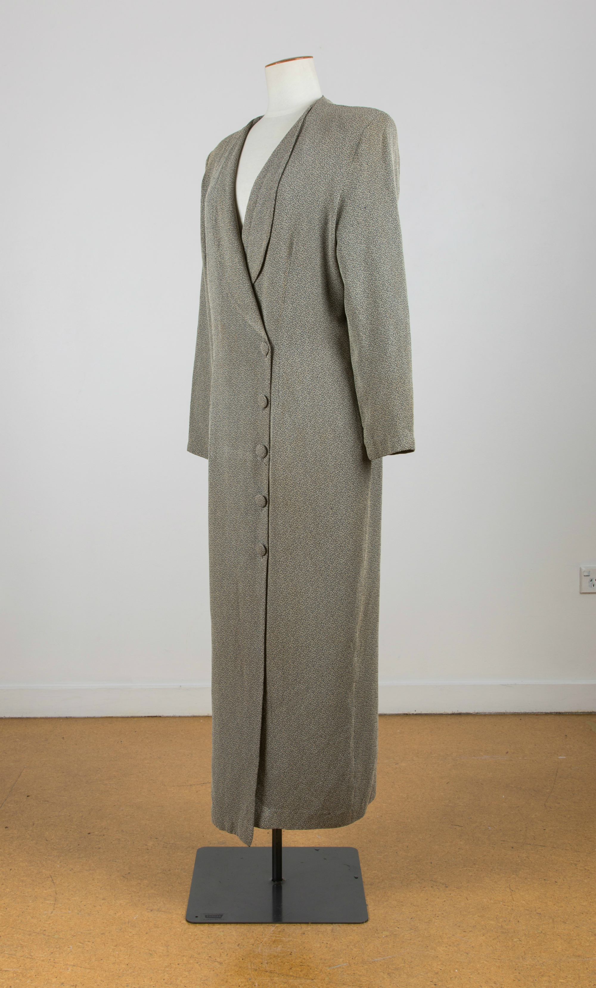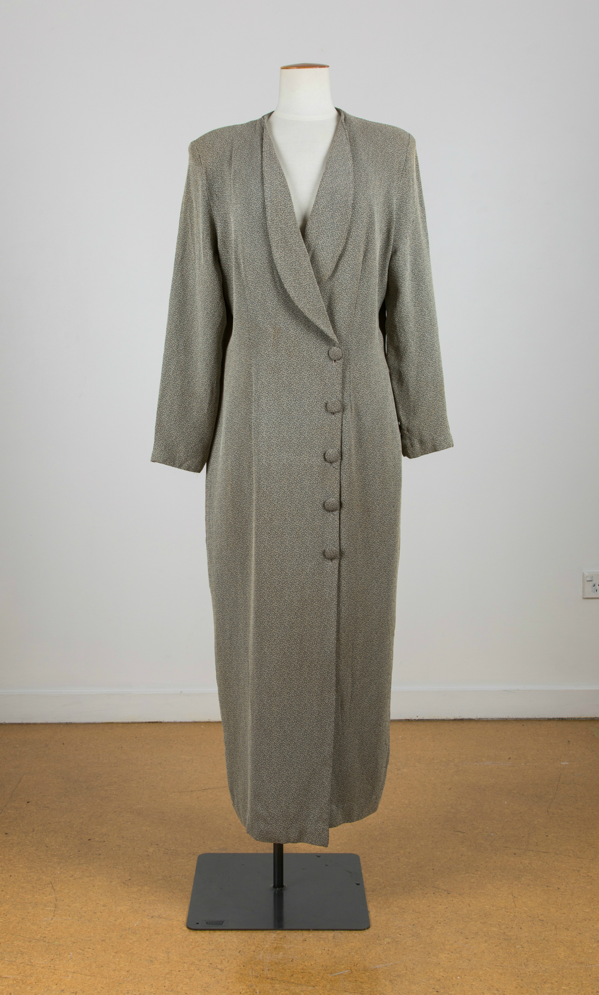 Coatdress with self-fabric buttons