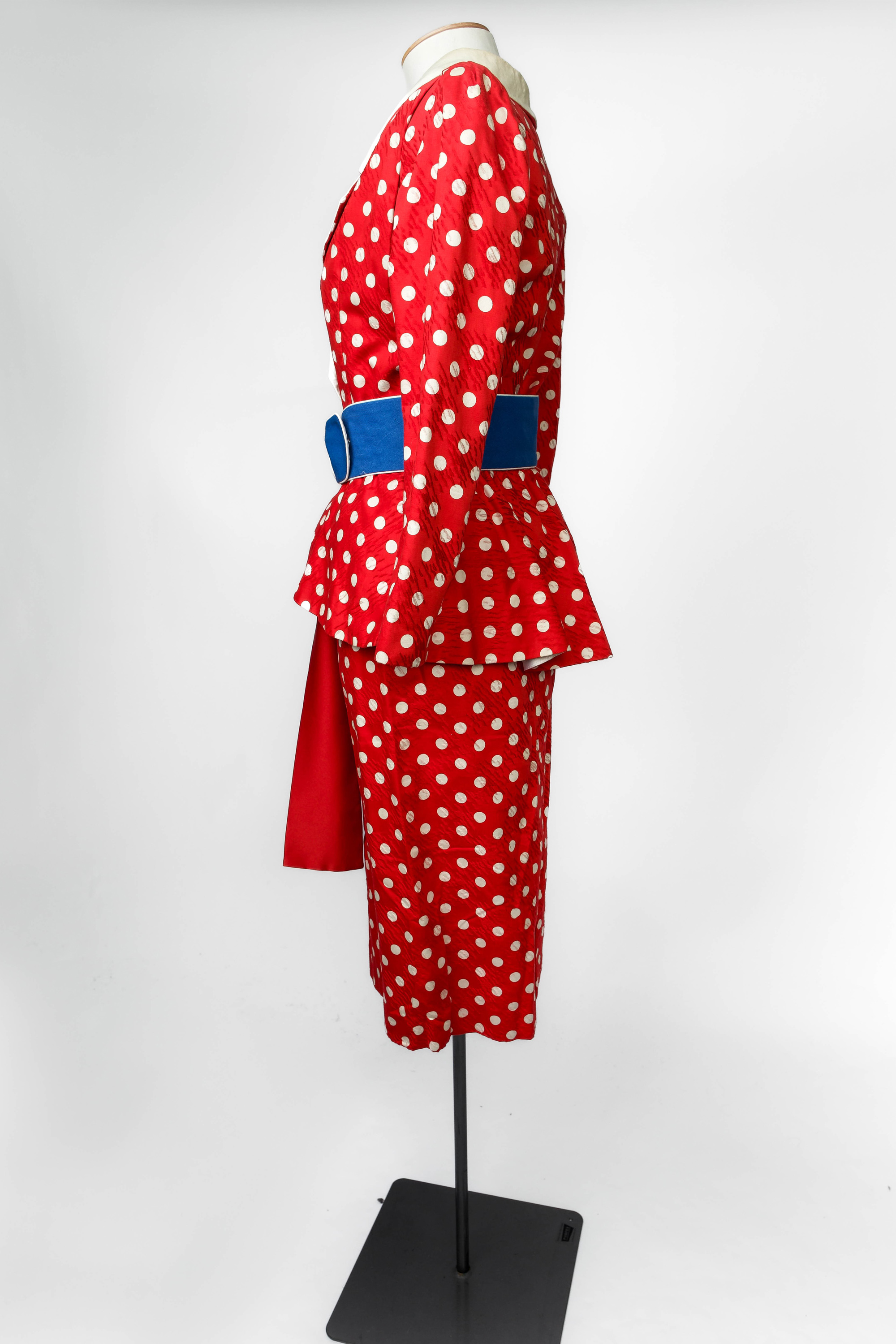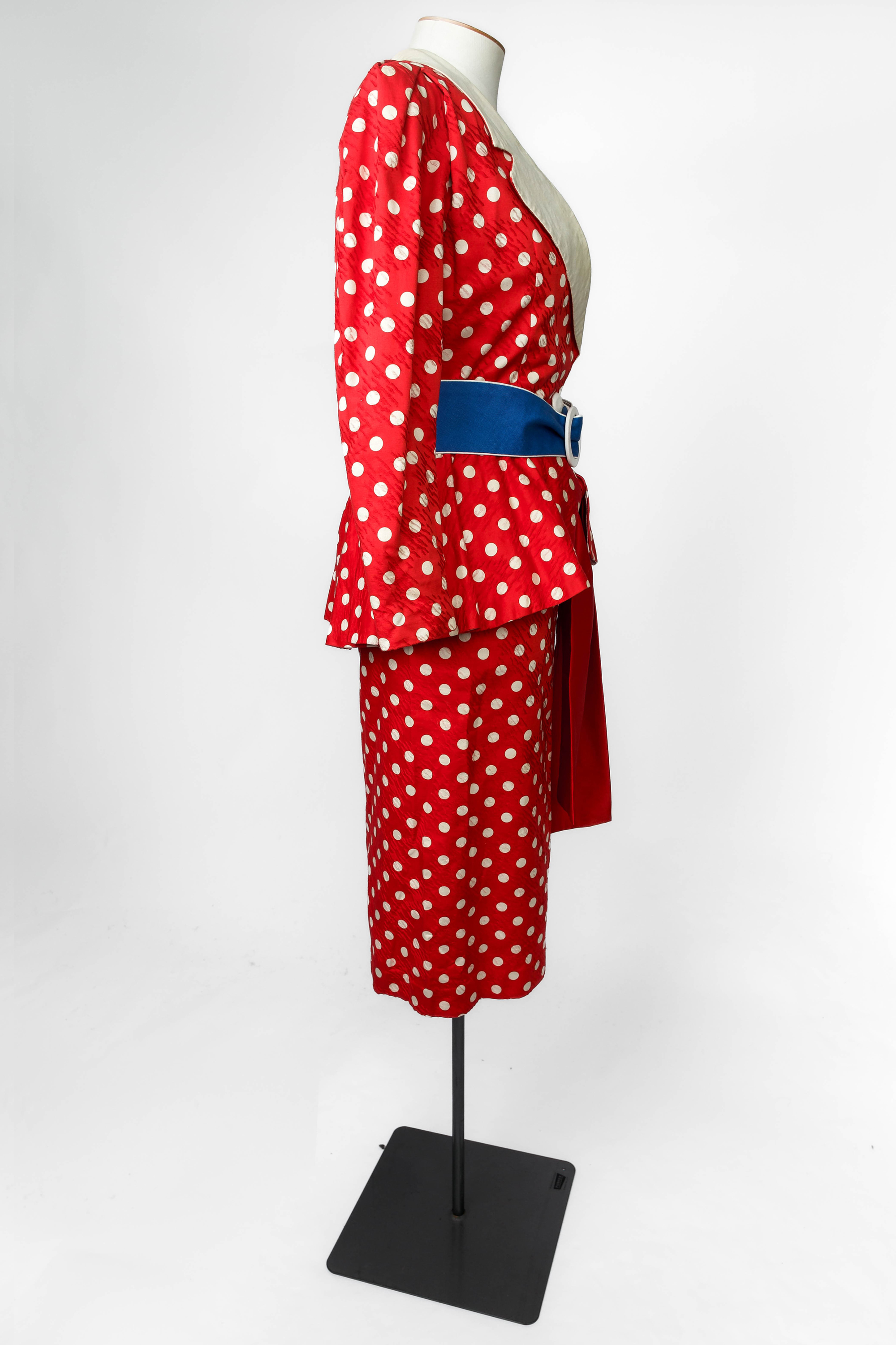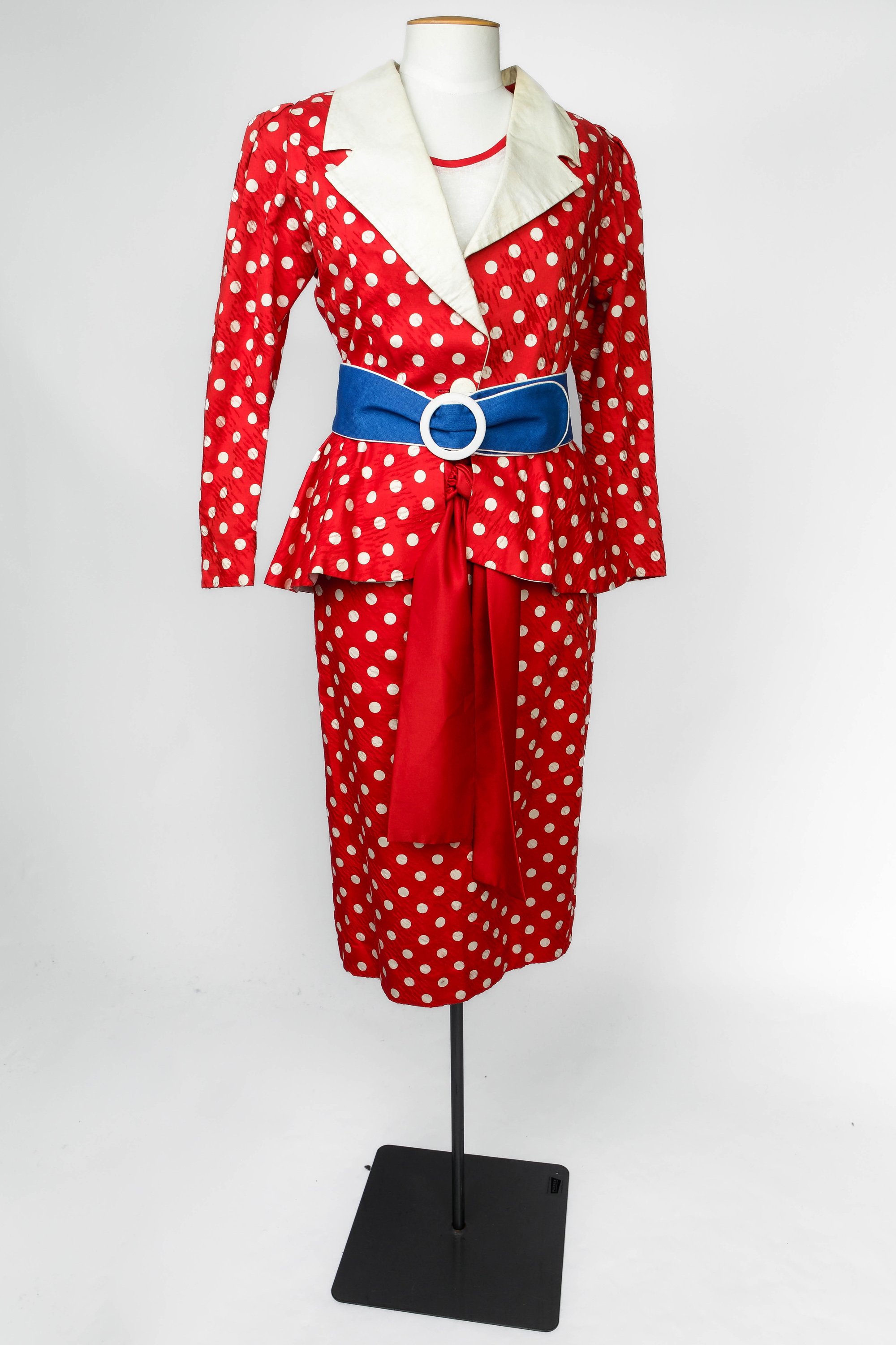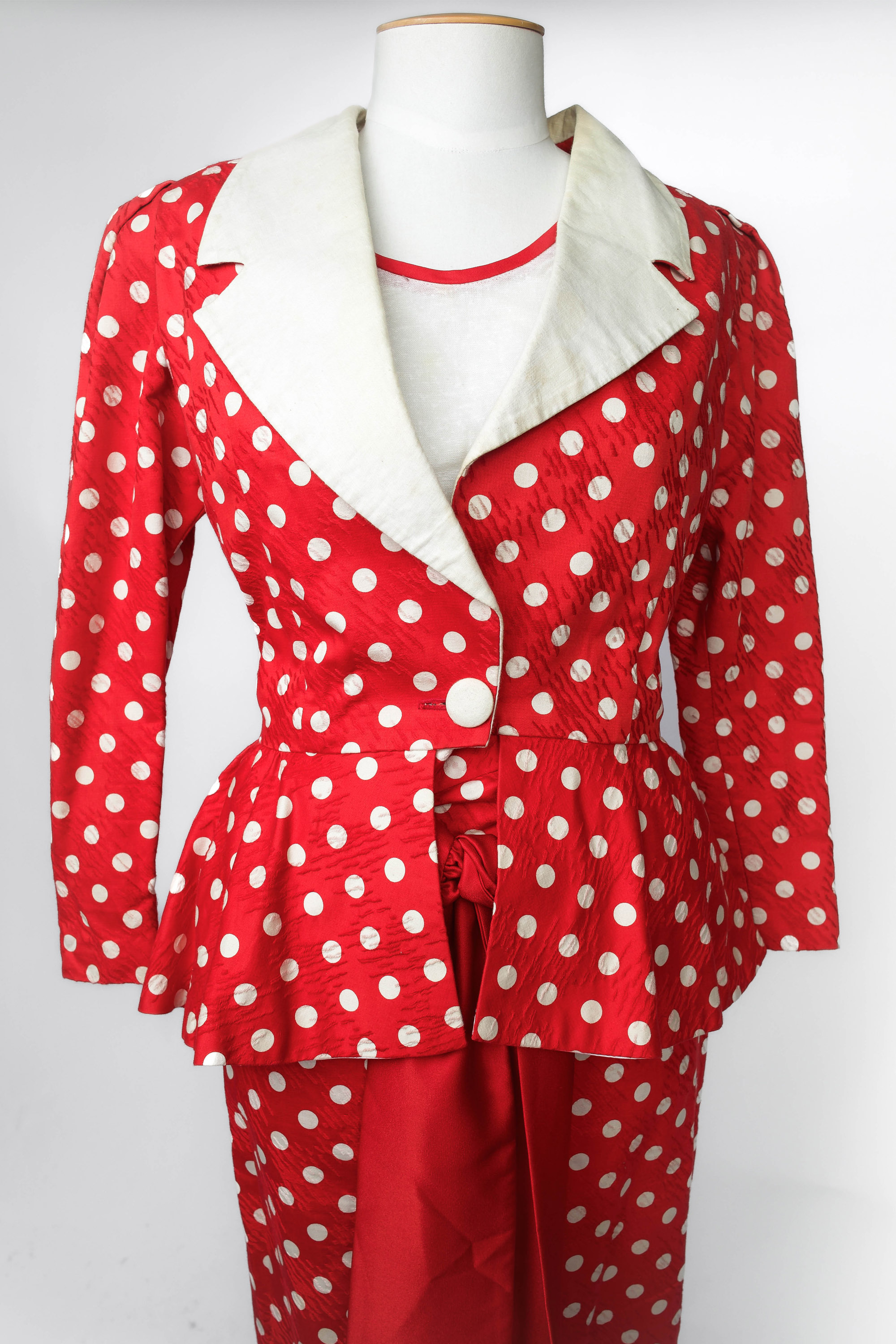 Colin Cole red and white polkadot suit ensemble, 1980s