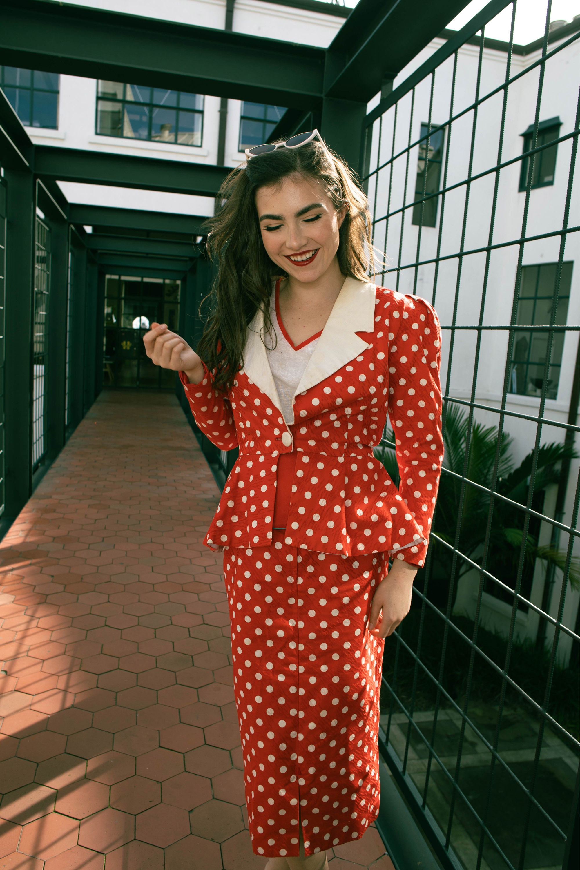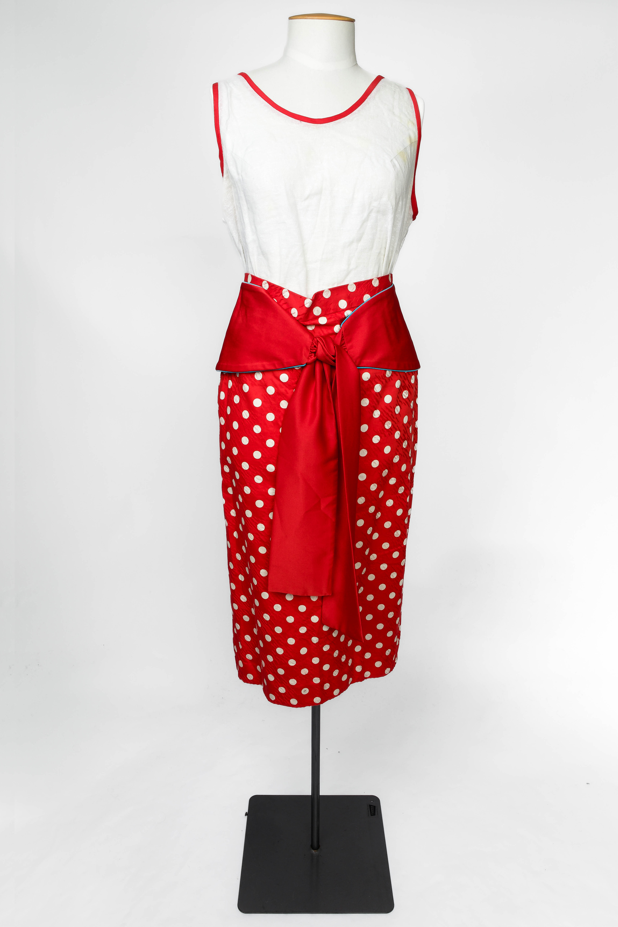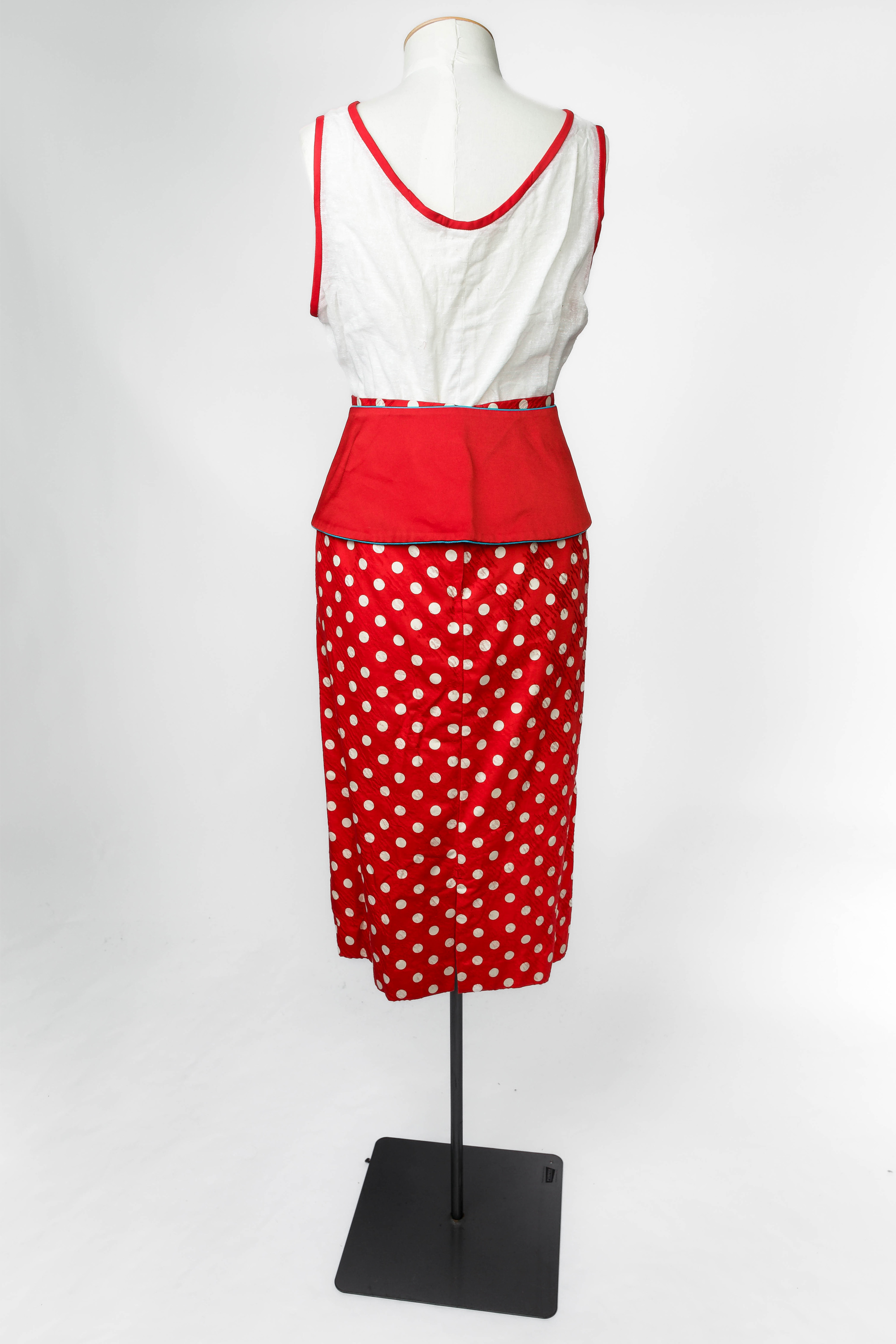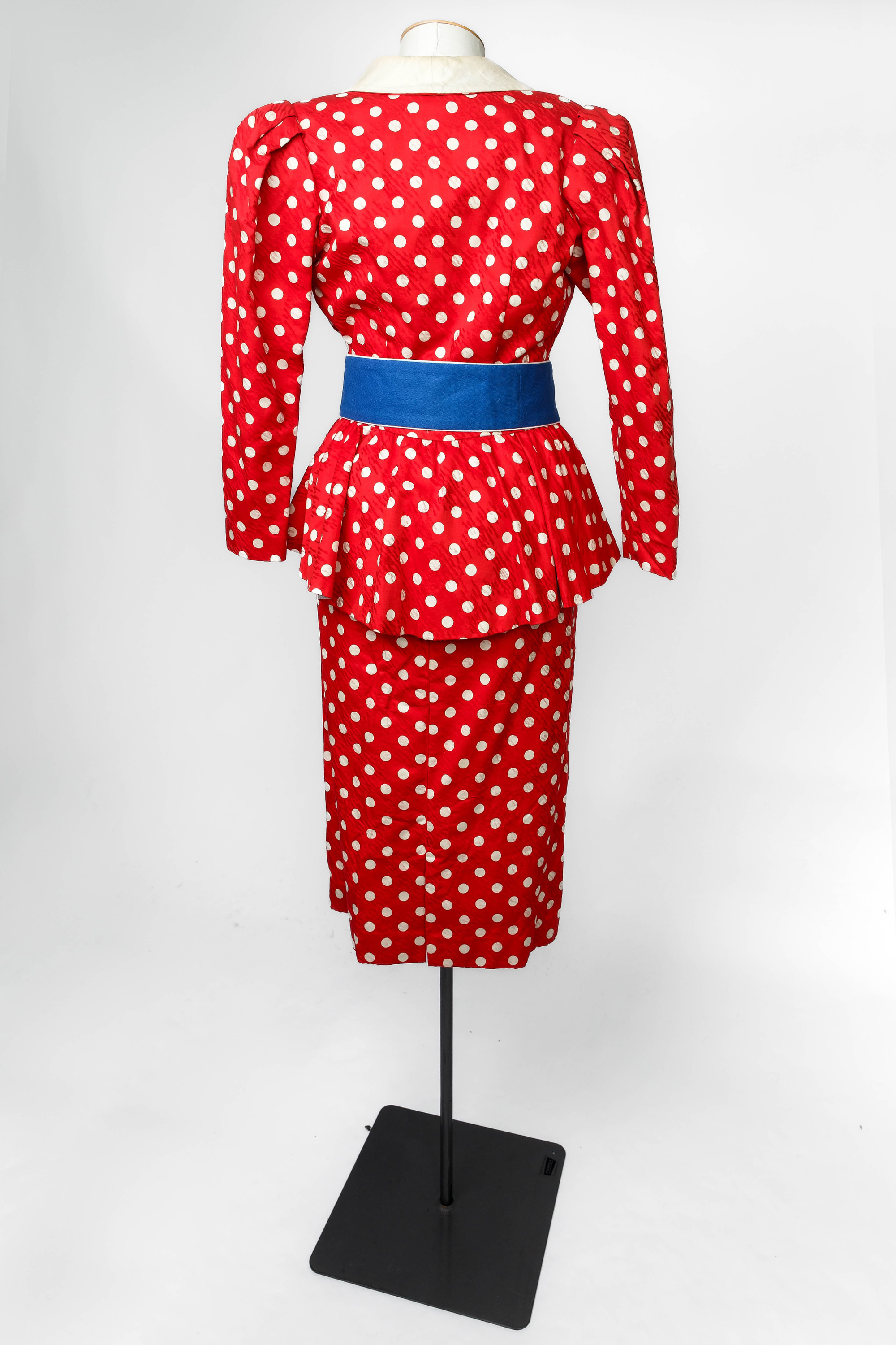 Colin Cole red and white polkadot suit ensemble, 1980s