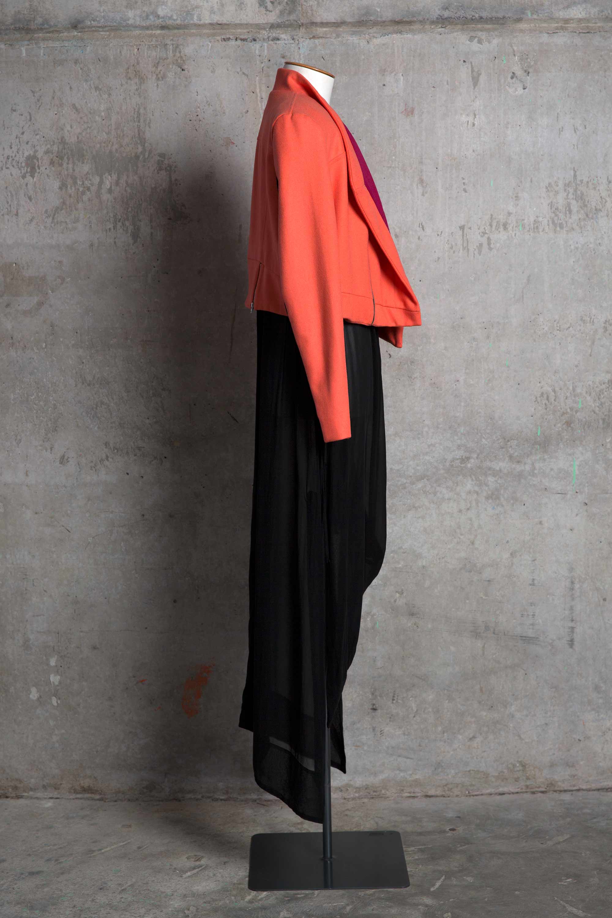 This dress and jacket was part of the Company of Strangers Winter 2013 Pop Shop Collection. The collection was inspired by the Pop art movement of the 1980s – particularly Keith Haring's work and colours. A continuing theme through Company of Strangers collections are rebellious spirits and creative people who gave the world something to talk about.