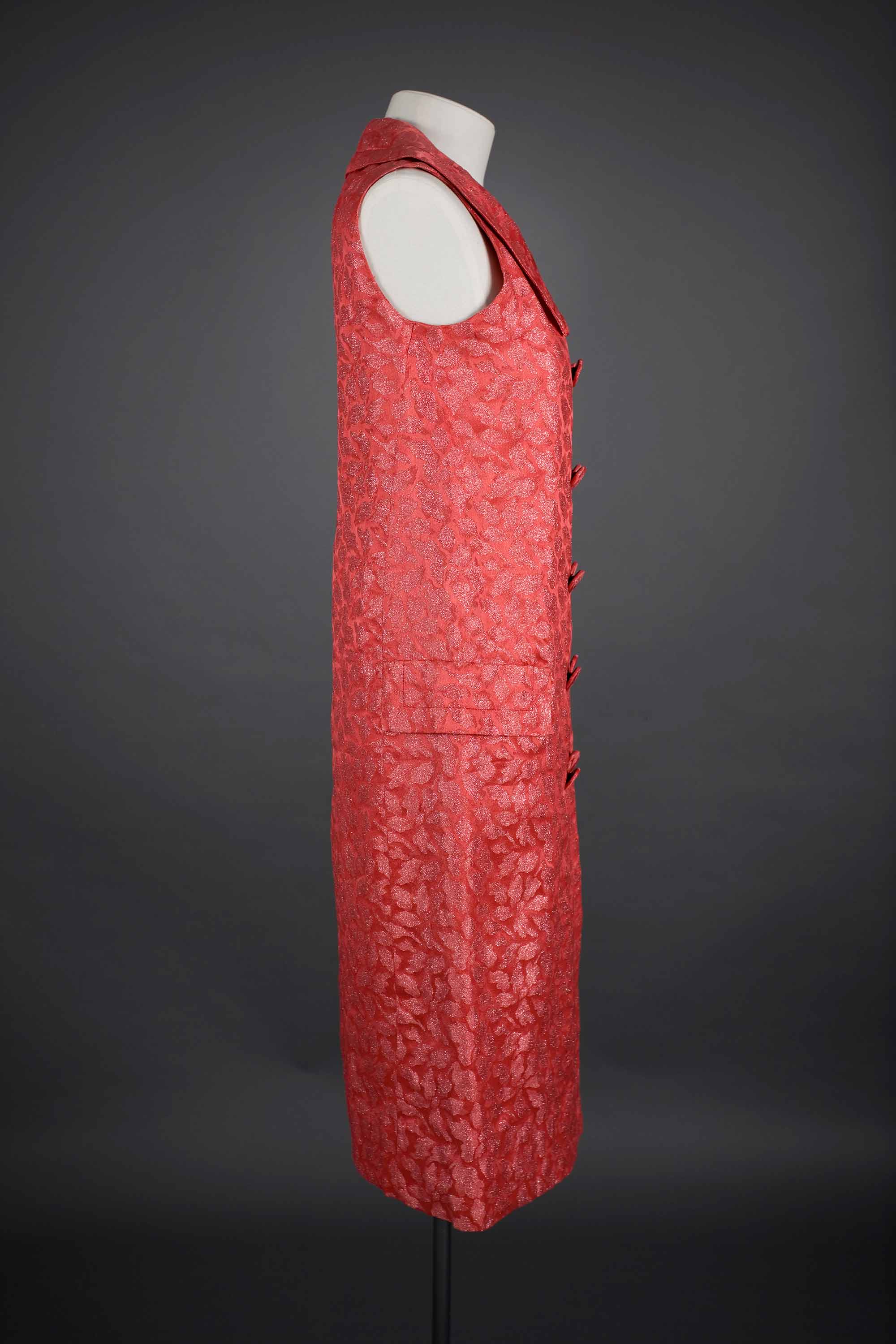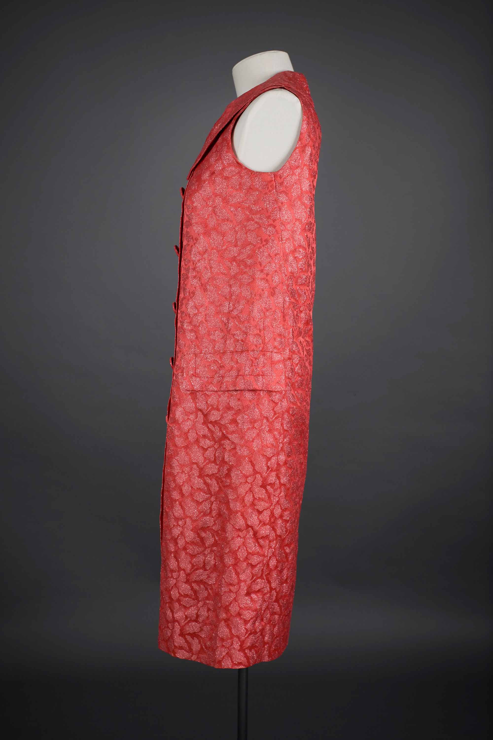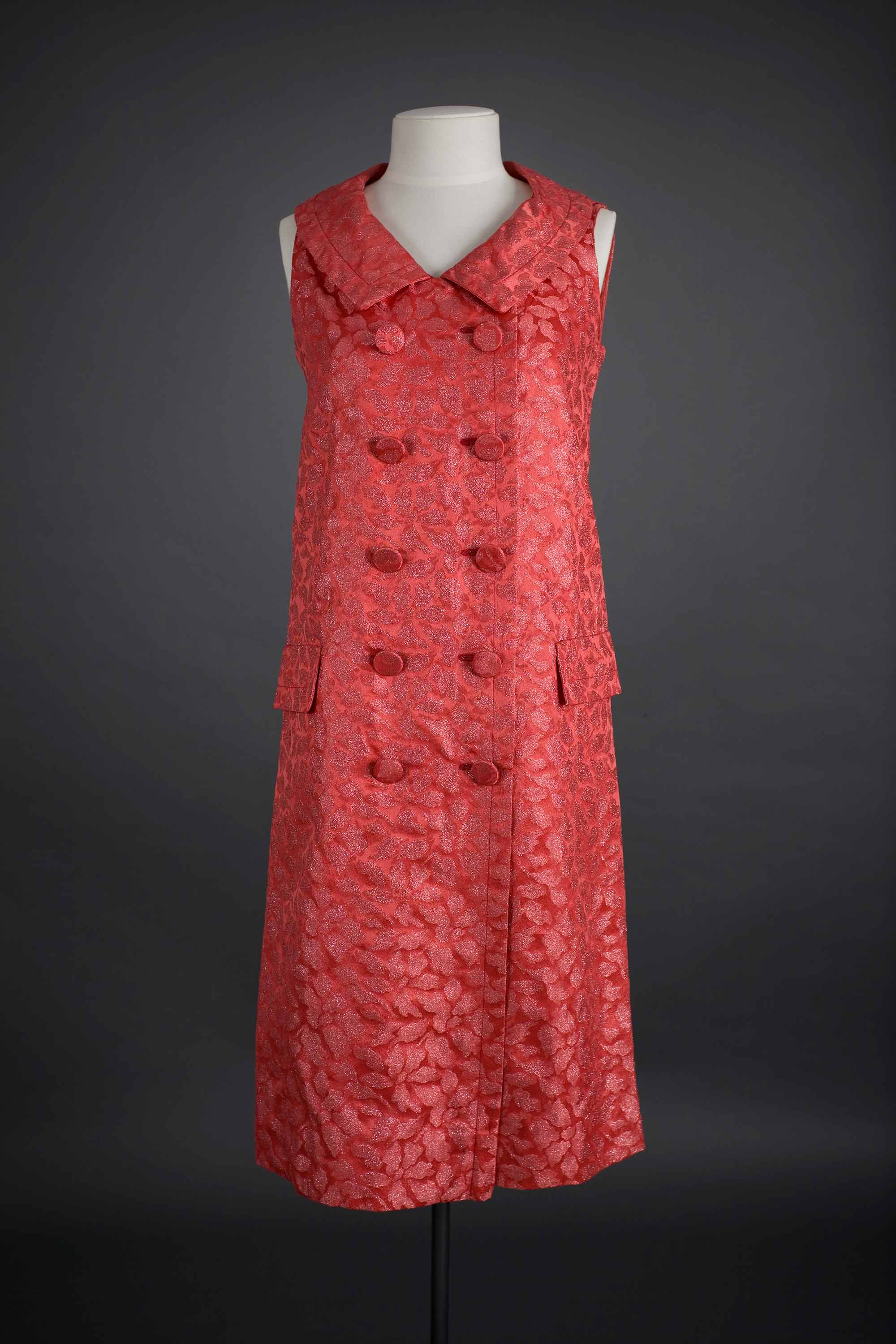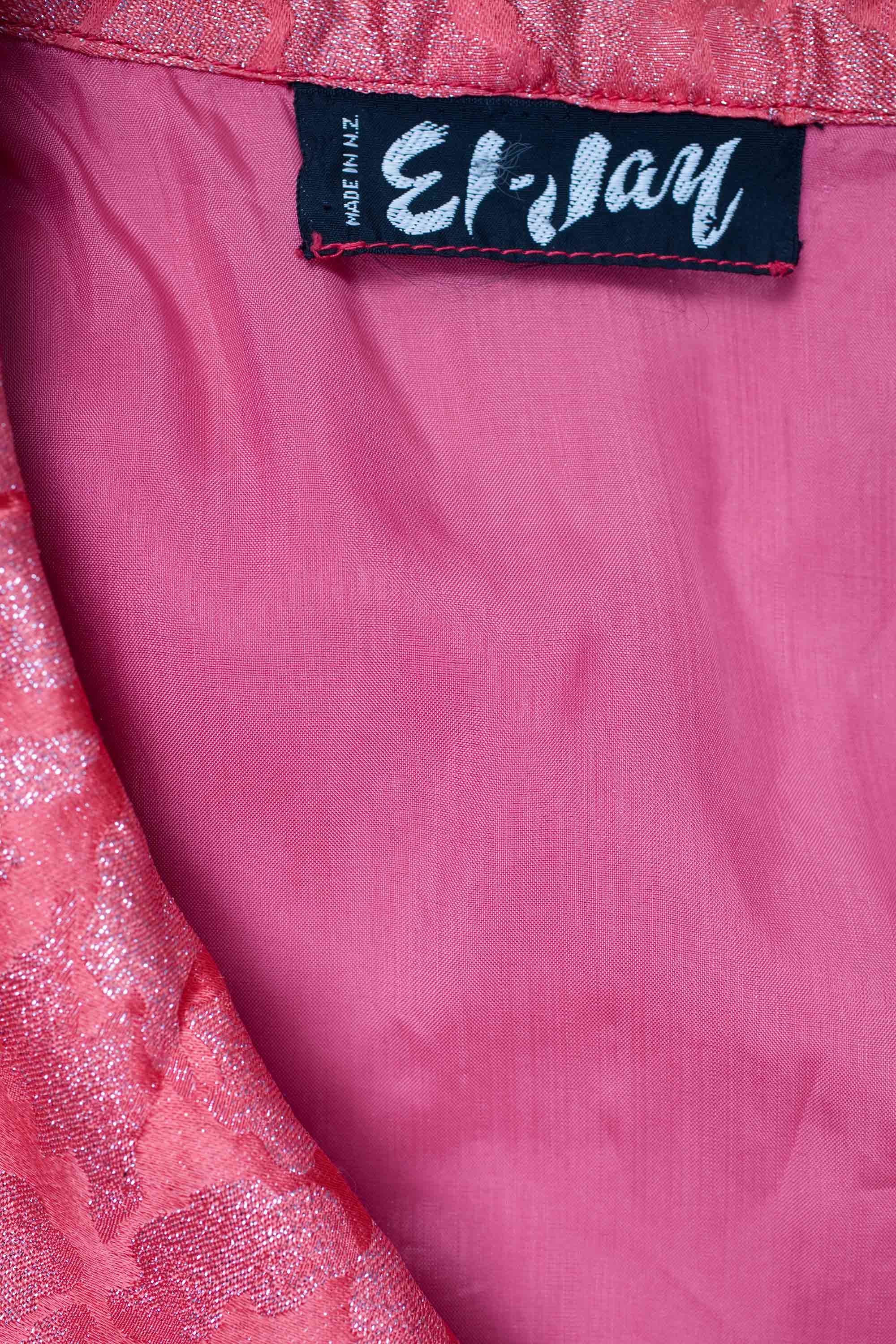 This dress was owned by Patricia Donnelly who was the Chief Dietitian of the Wellington Hospital Board for 24 years. This dress has been kept in the family because it reminds them of her sense of fashion and her love of colour. The 10 original covered buttons are still where they were sewn on more than 50 years ago. Read more about Gus Fisher and the El Jay label in the New Zealand Fashion Museum publication Looking Terrific: The story of El Jay.