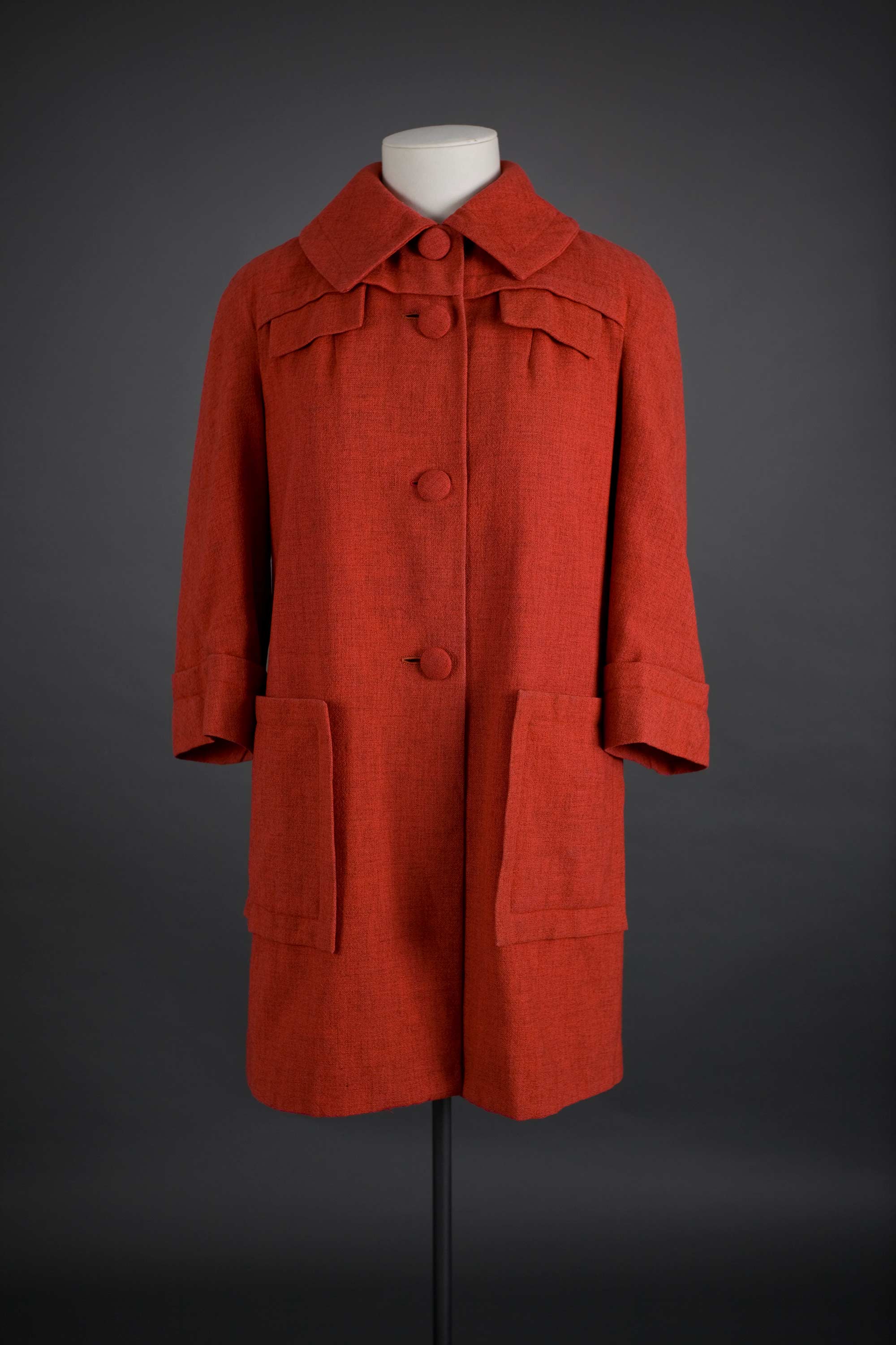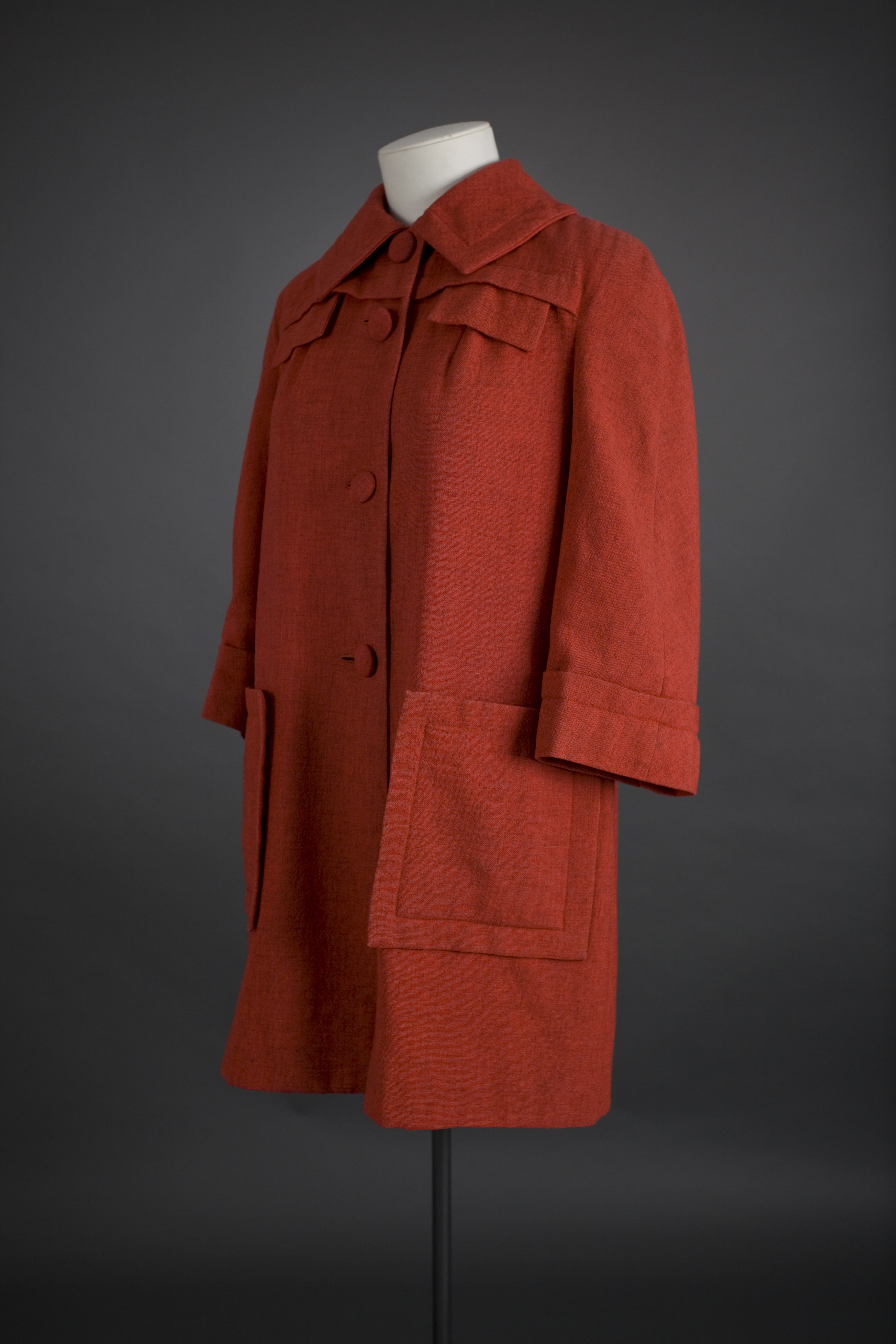 Mary Smythe was always know for her snappy dress sense. Today when the current wearer of this coat ventures out in it people think it is a design by Marni, so its style is still very contemporary. Read more about Gus Fisher and the El Jay label in the New Zealand Fashion Museum publication Looking Terrific: The story of El Jay.