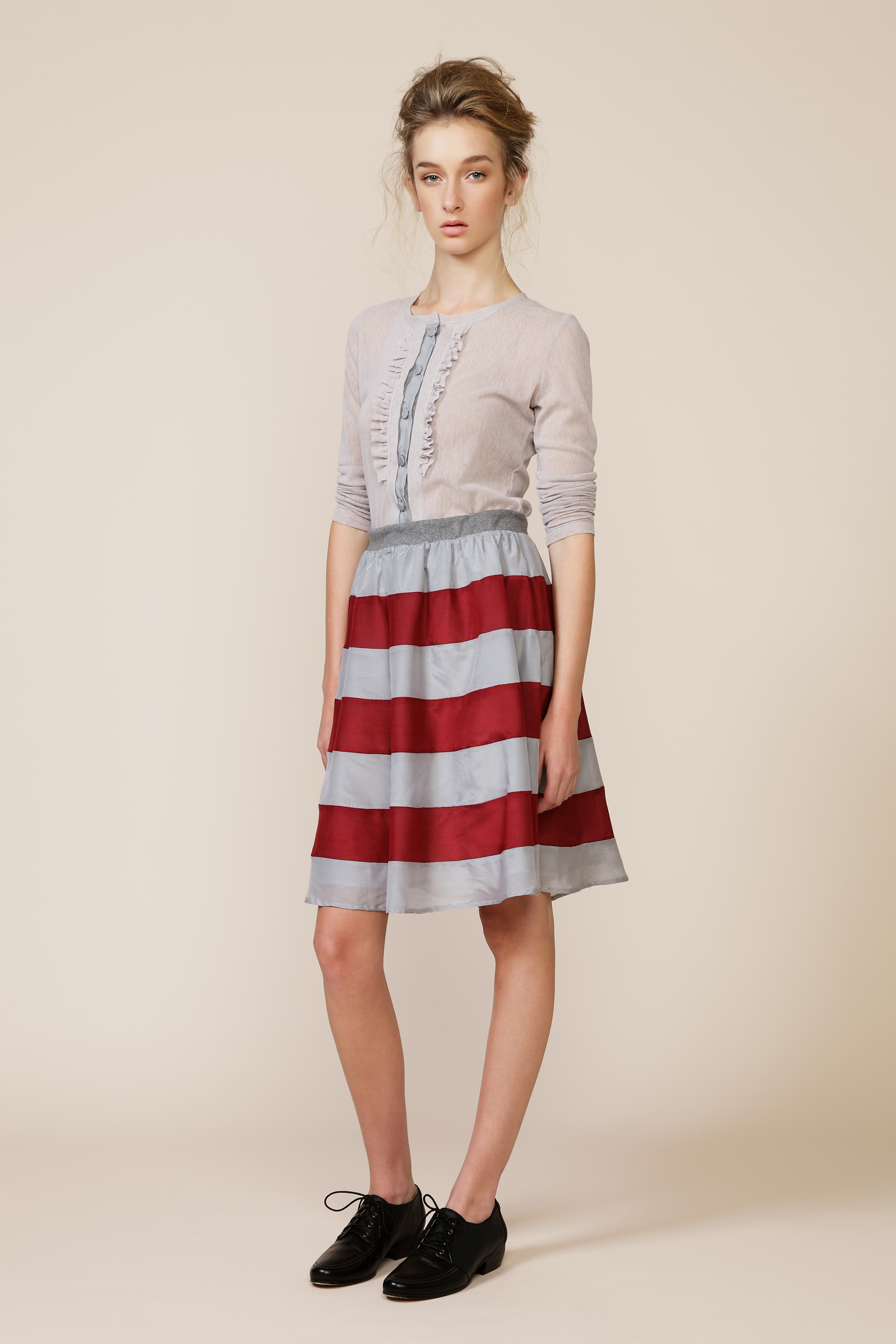 The skirt is designed to be made with two contrasting stripes of colours or textures.
