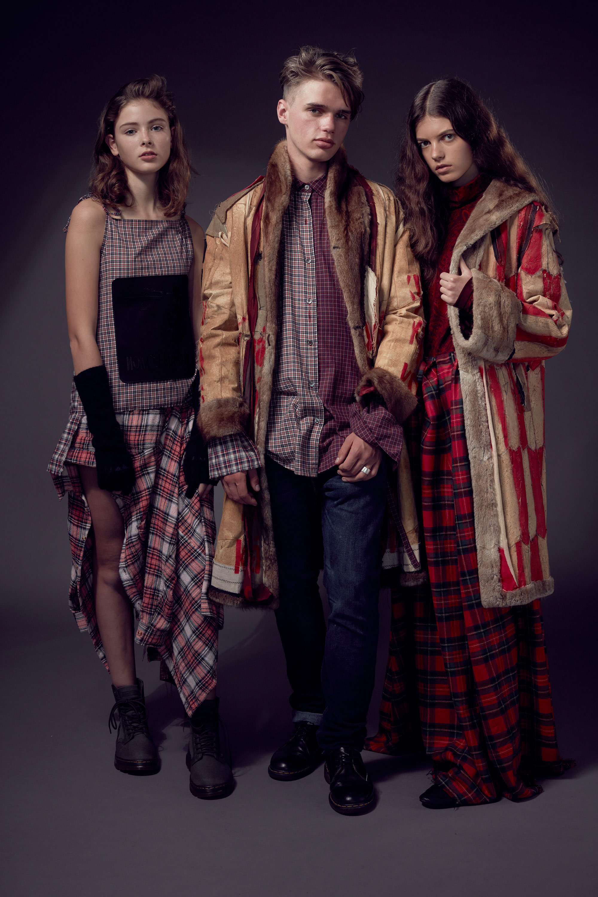 NOM*d interpreted June Black's 'Costume in which to celebrate perfect moments' for the Intellectual Fashion Show 2016. The label text read: "A Perfect Moment for is when we create a garment that completely affirms the essence of the NOM*d aesthetic. In these instances, our love of mismathcing checks and tartans stems from a punkish subversion of the aristocratic association carried by that iconic cloth. RED Autumn Winter 2002 was our second New Zealand Fashion Week show and represented our move to expand NOM*d's product offering into woven and reworked vintage garments, such as the Vintage Fur Coat. It was the show that really elevated NOM*d as a brand into the wider fashion industry.