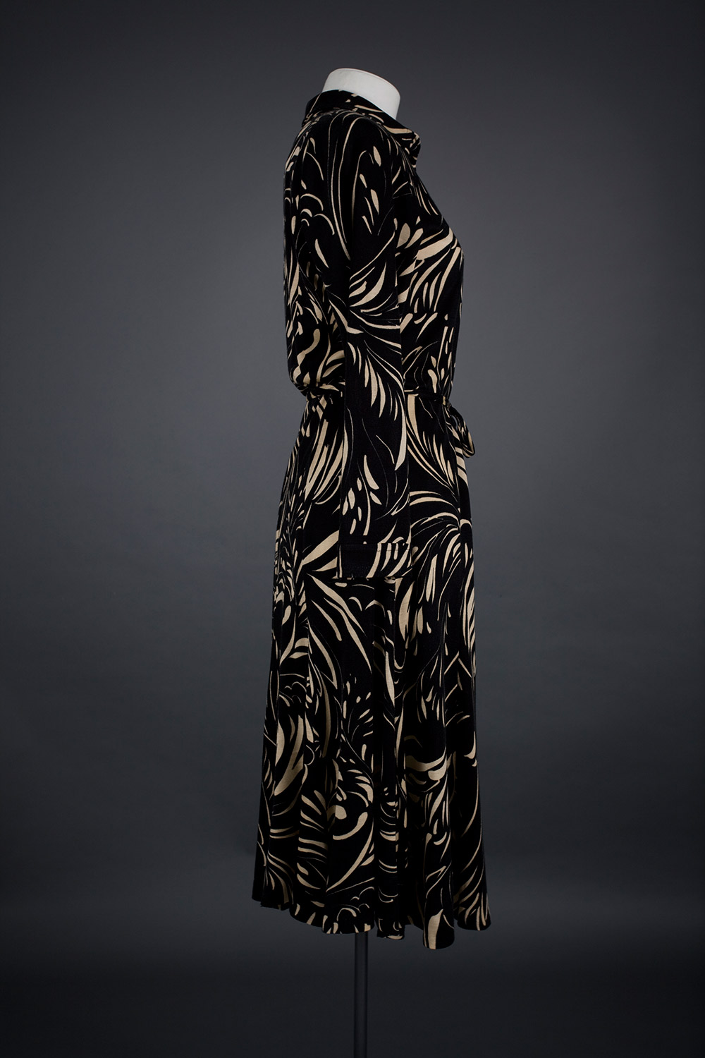 Beverly Davidson usually sewed and knitted the clothes for her large family, but on this occasion treated herself to a shop-bought garment - this day dress by El Jay. "This dress was on display at The DIC in Lower Hutt. I looked at the dress and I’ll swear it said, 'Please try me on'. The moment the dress slipped over my head it was sold. I turned before the mirror and I was in love!" Read more about Gus Fisher and the El Jay label in the New Zealand Fashion Museum publication Looking Terrific: The story of El Jay.