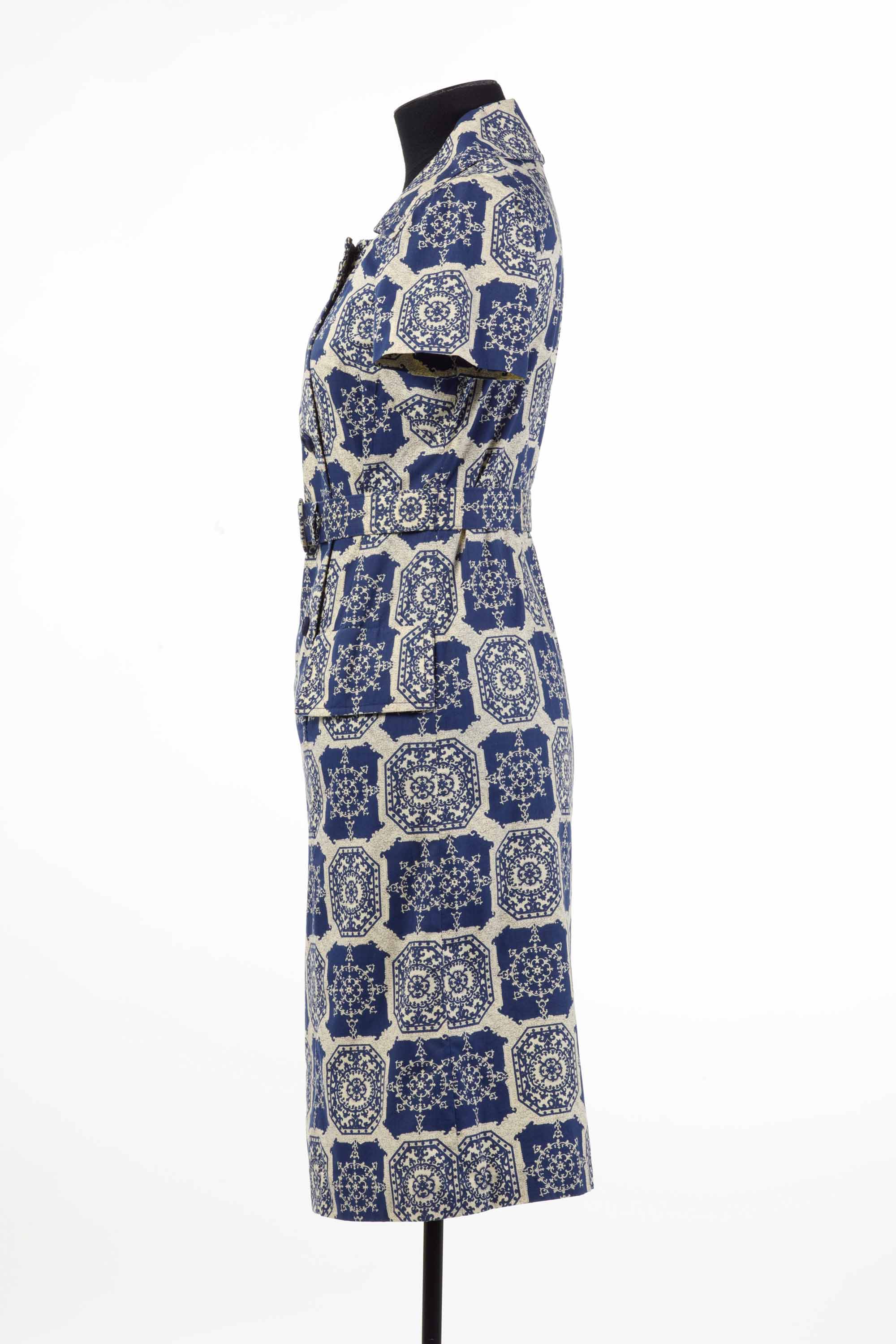 This printed cotton dress features plastic buttons and a belt with metal fittings.