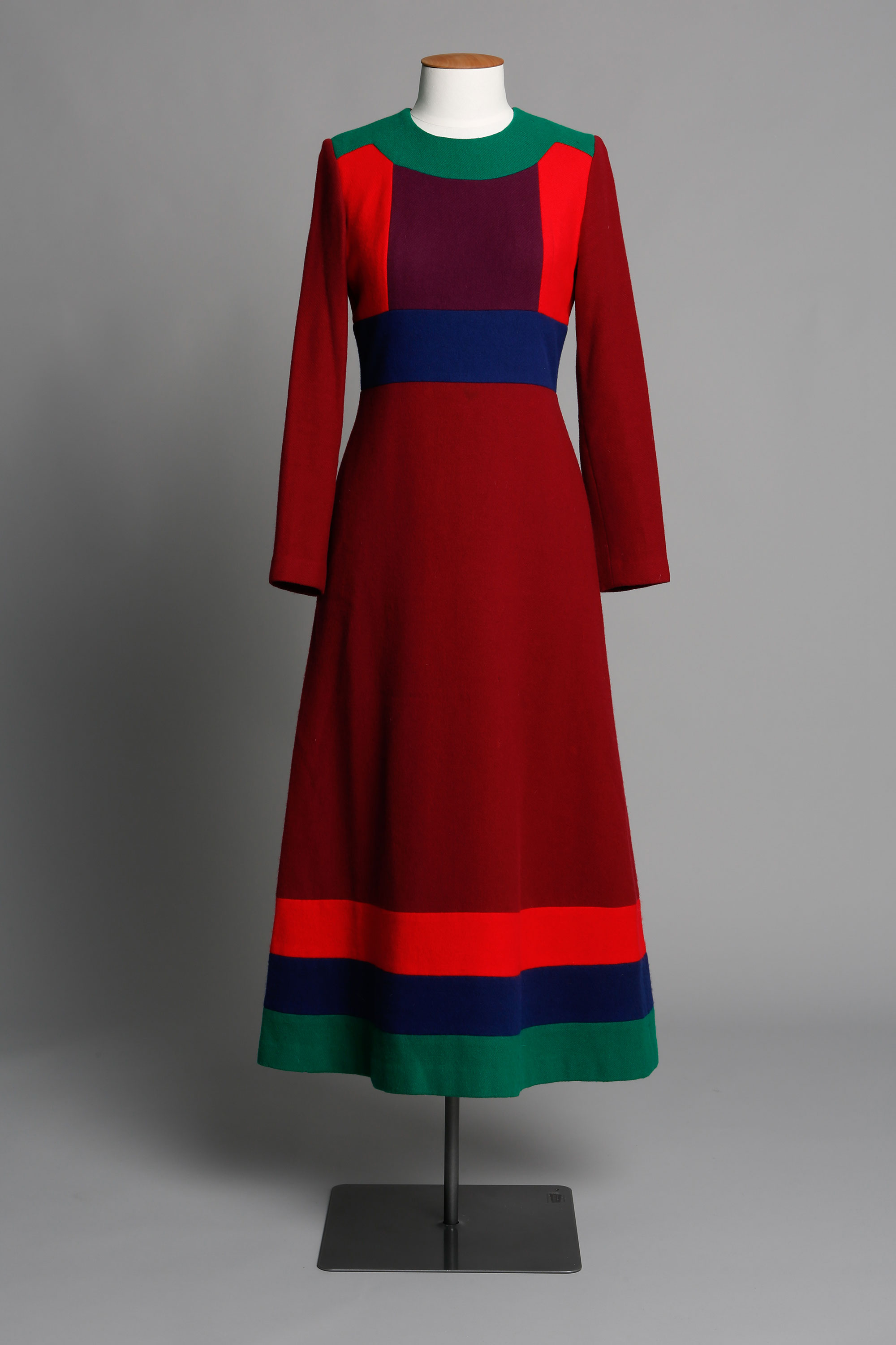 Dress in multi-coloured pieced panels
