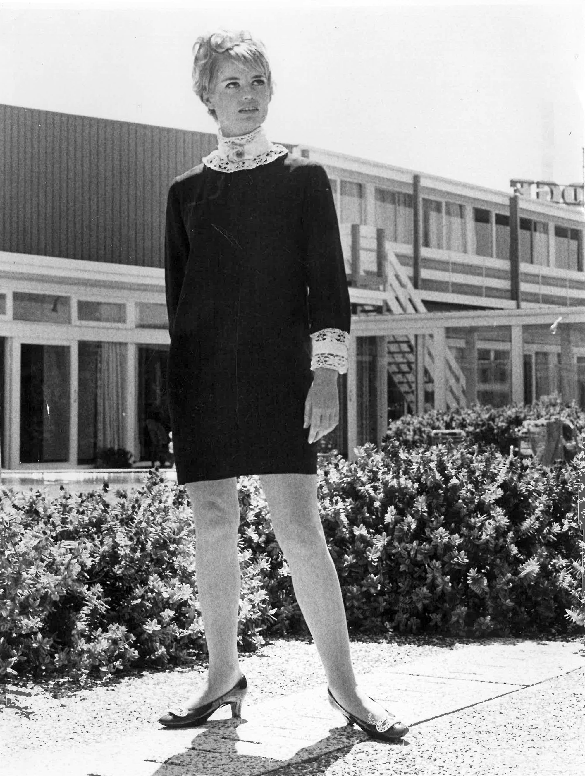 Hadny 5 designer, Isabel Haworth, had many clients from Wellington and the lower part of the North Island so she opened a boutique in Willis Street in Wellington in 1966. Model Lyn Farry was one of her Wellington customers. "Her fashions were so 'me' that I acquired probably more than I could afford at the time but I just couldn’t resist." Lyn later modelled for Hadny 5 at an off-site show. This photo of Lyn wearing a Hadny 5 dress was taken at The White Heron hotel in Wellington the day she won the Wellington section of the Wool Alive competition.