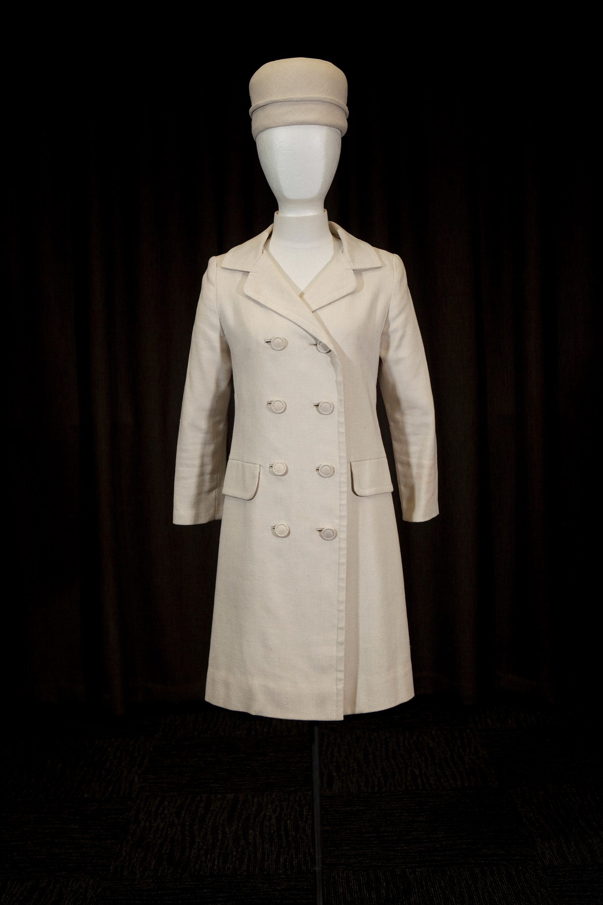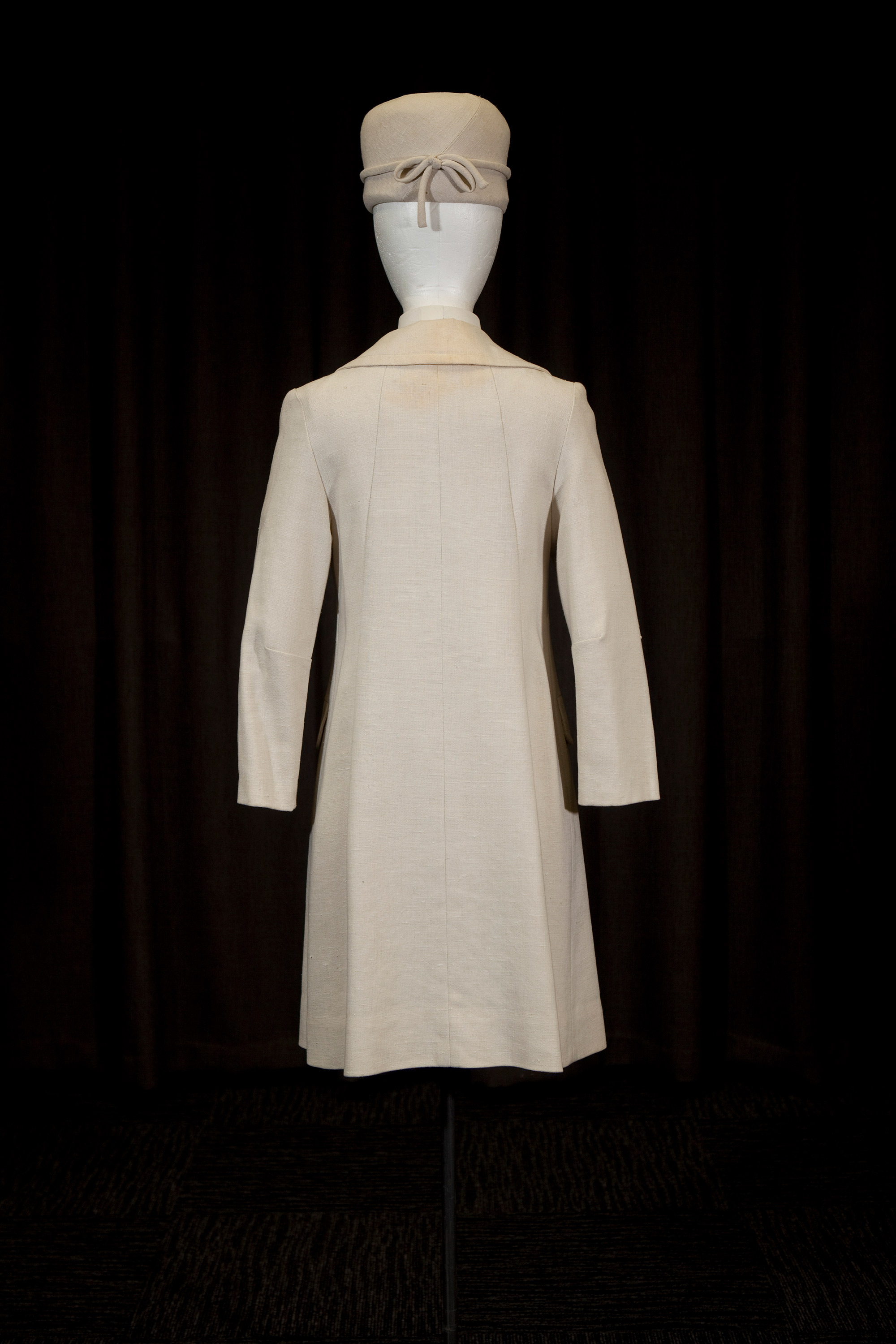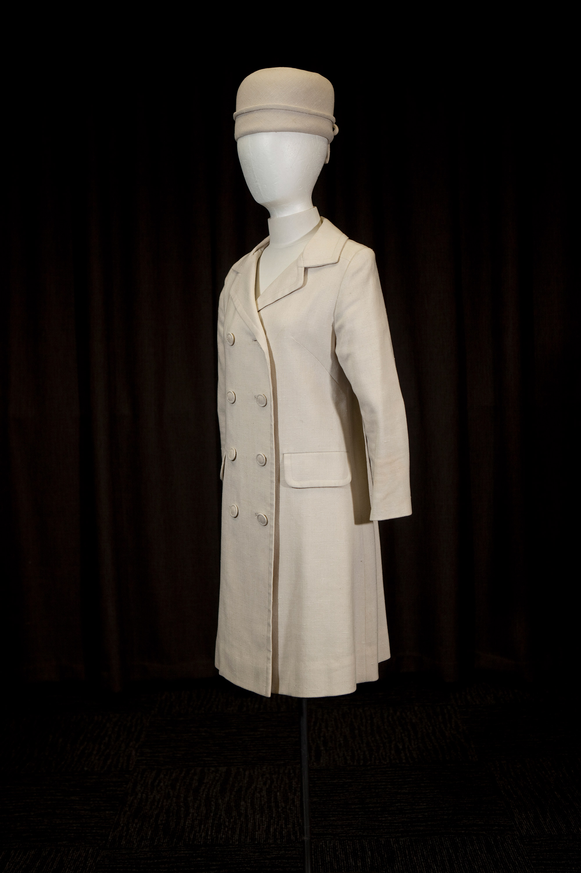 Ecru linen coatdress & pillbox hat