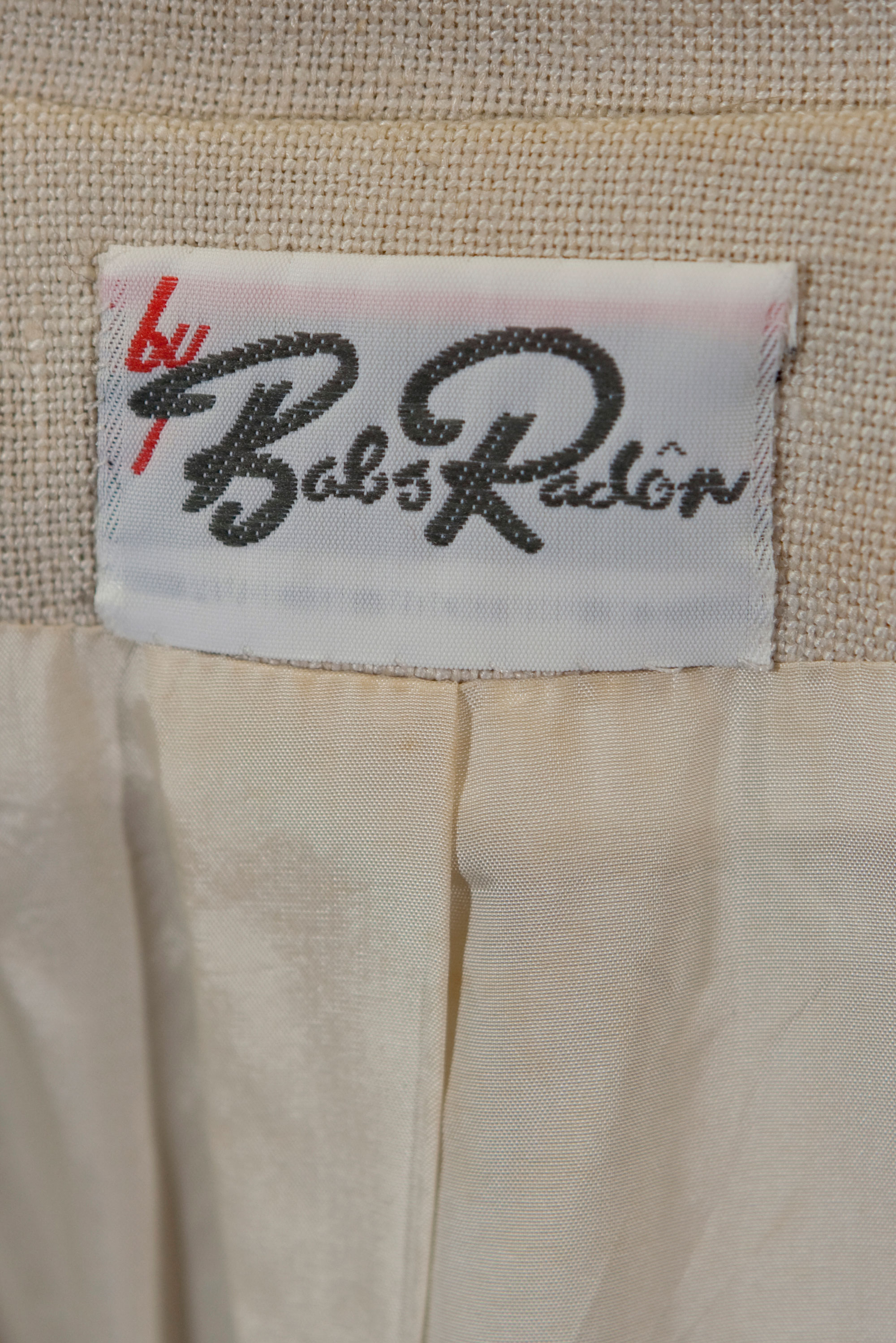 This coatdress and pillbox hat was designed by Barbara Herrick of Babs Radon in 1964. That same year, Barbara won the Silver Shears for racewear for another ensemble made from linen - a dress and coat with a cape collar.