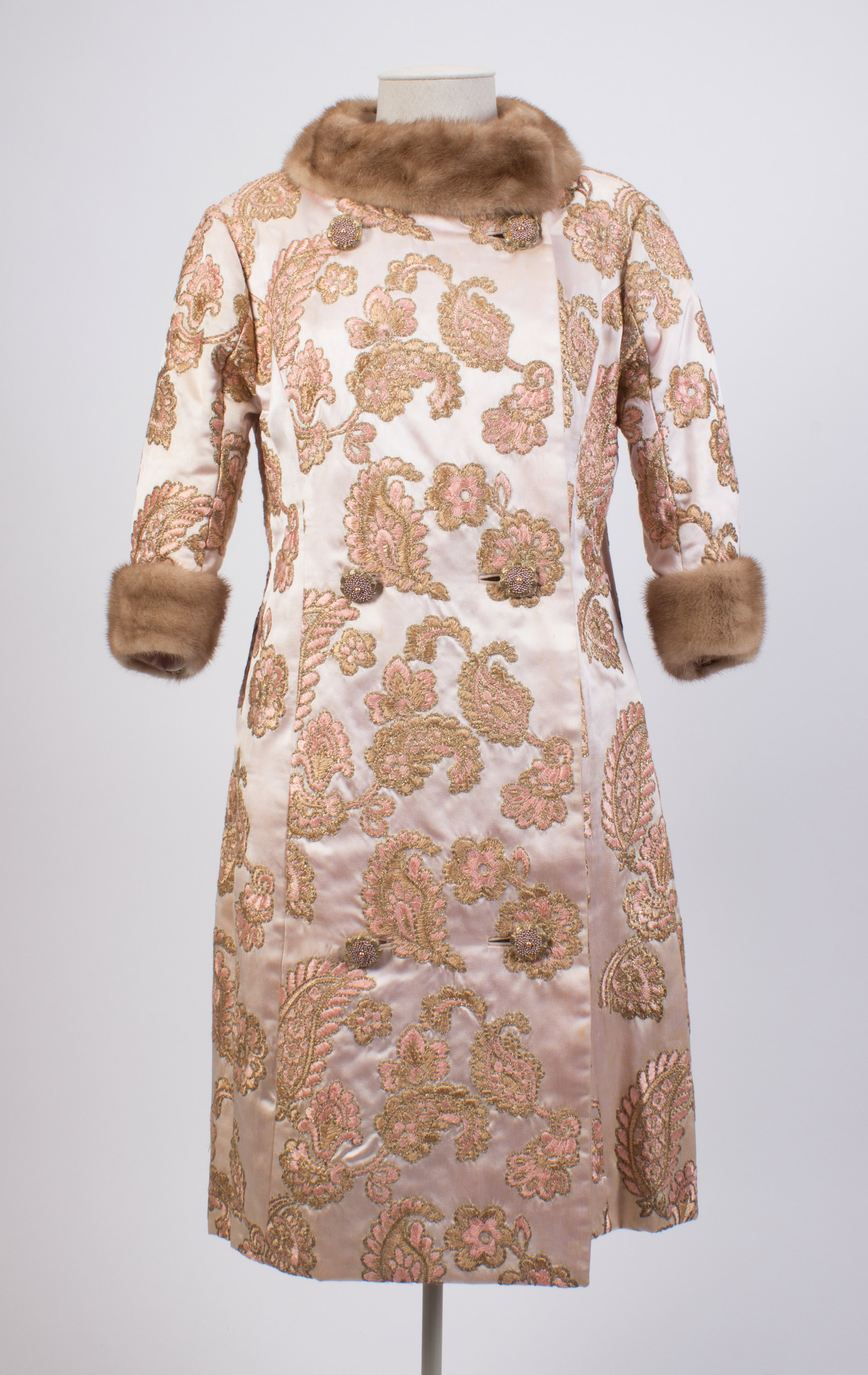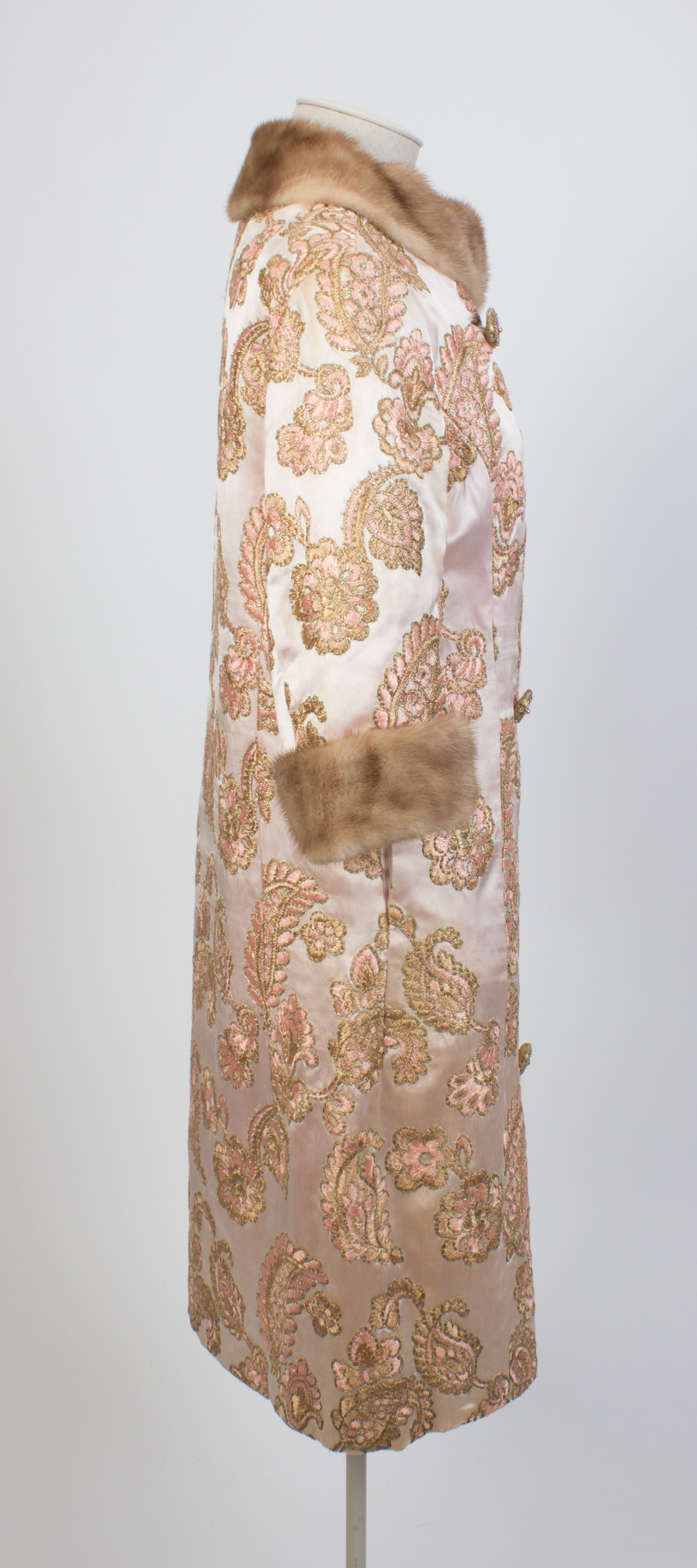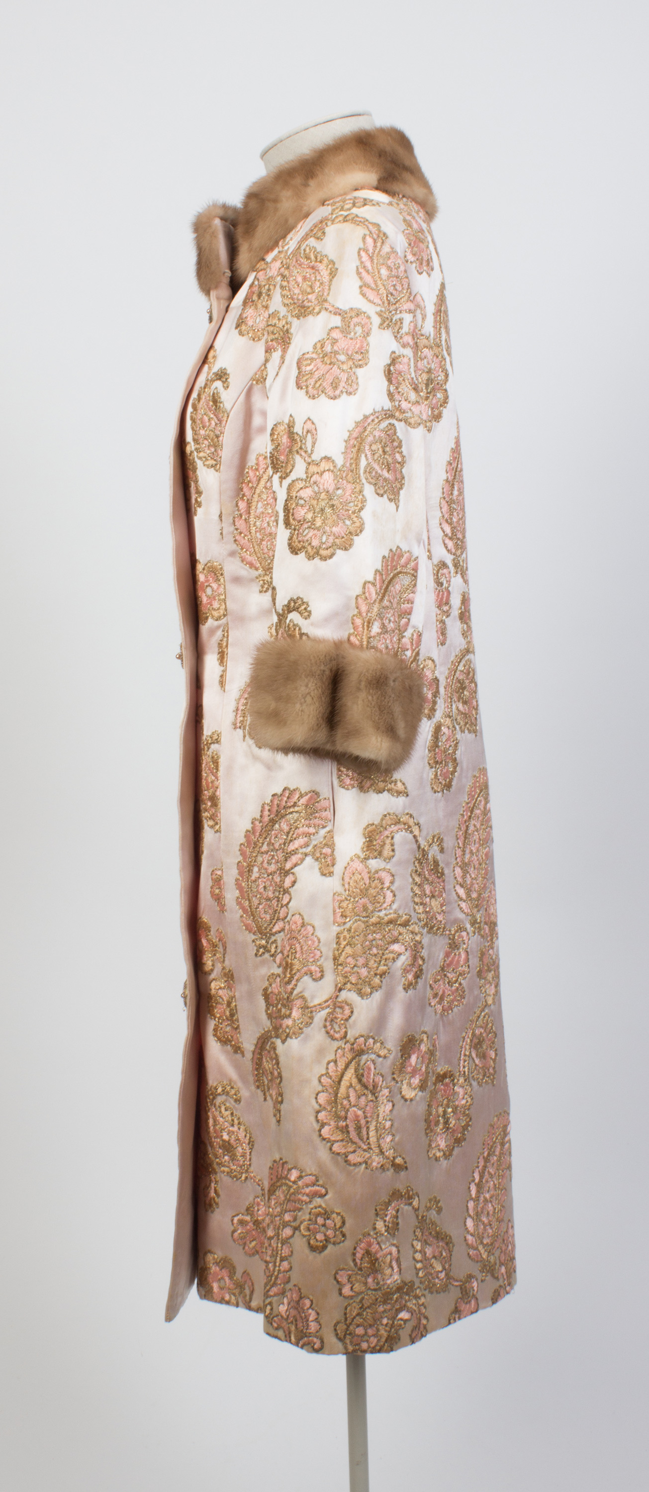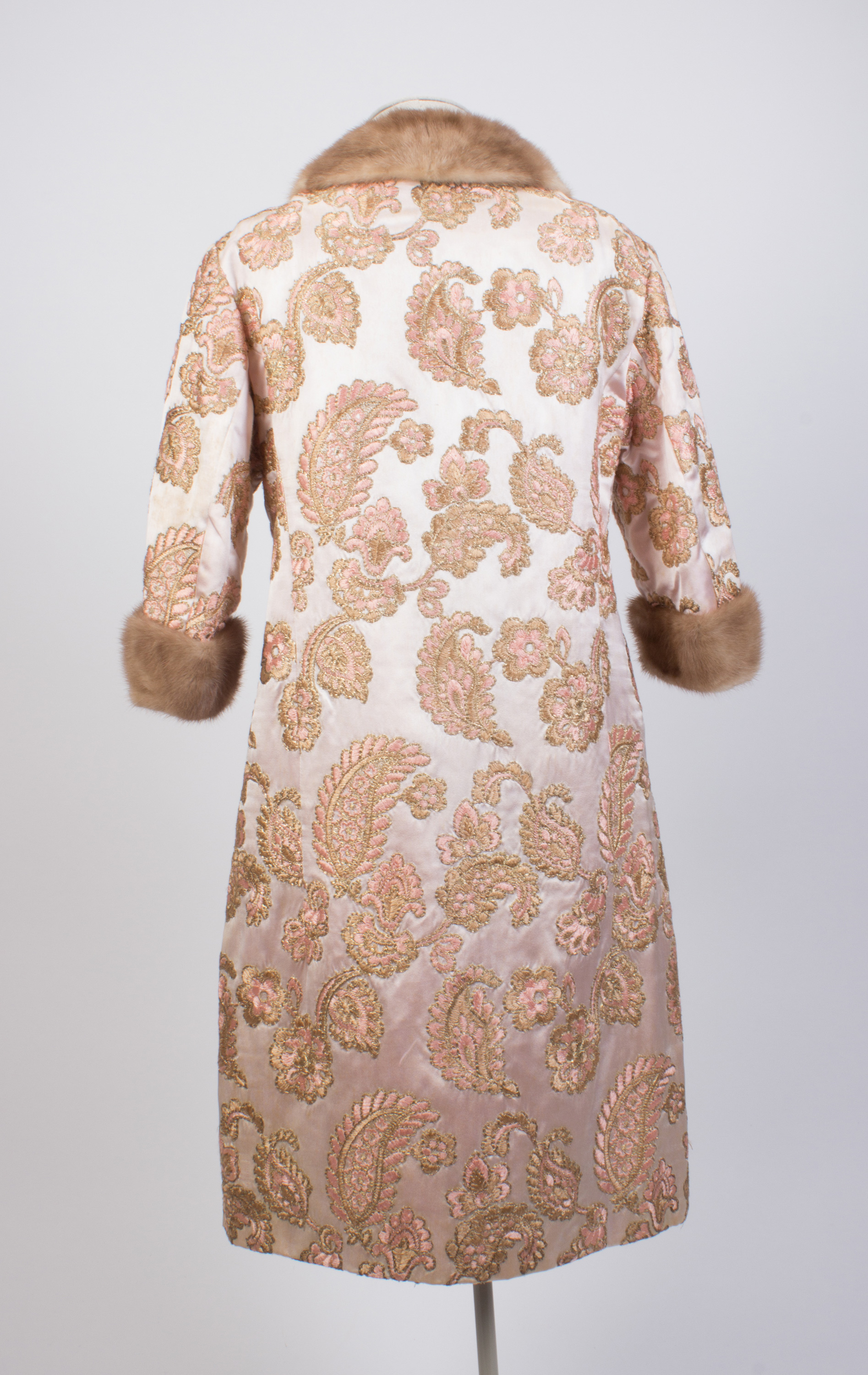 Embroidered silk coat with mink collar & cuffs
