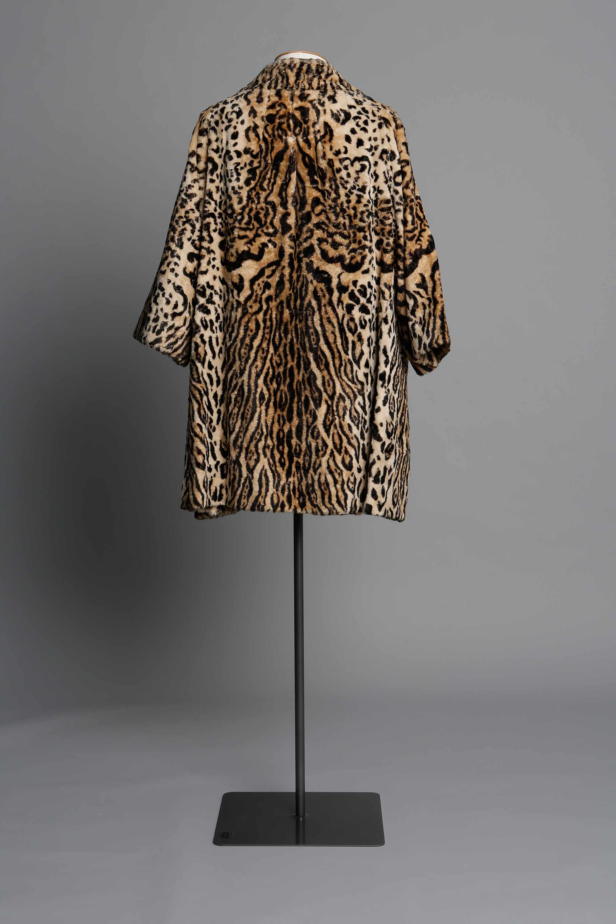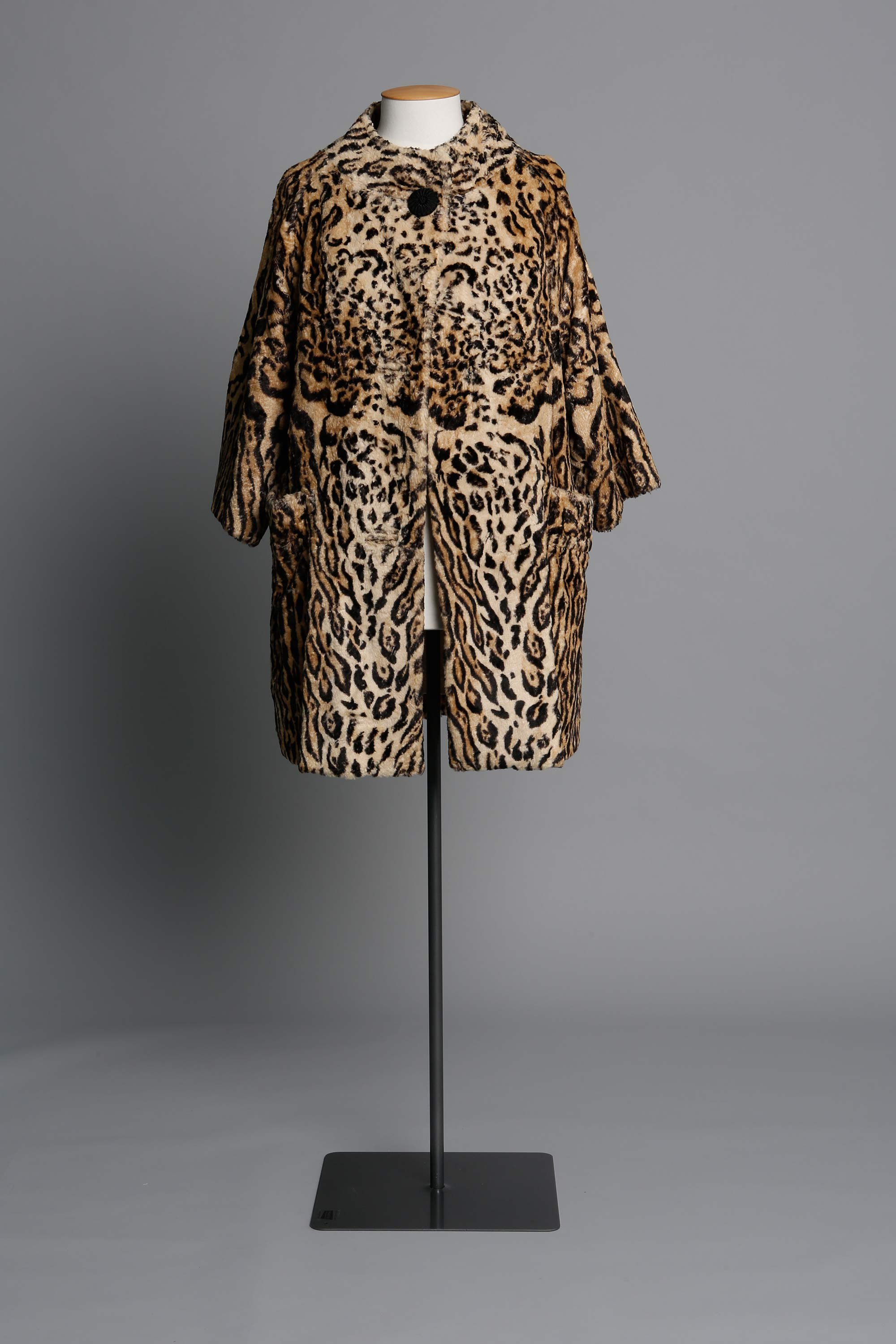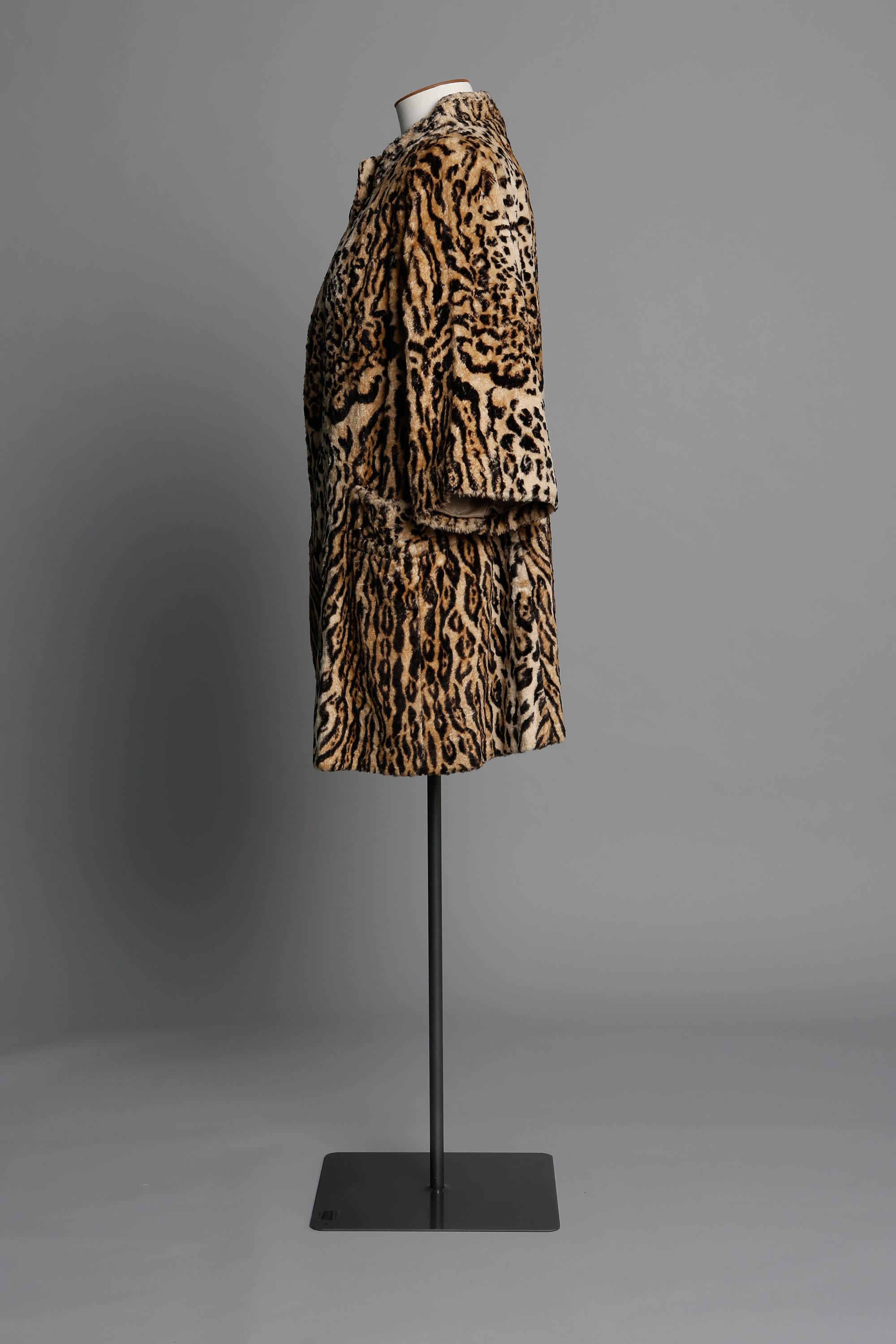 Faux leopard print fur lined with polyester (replaced in body, original in pockets)
