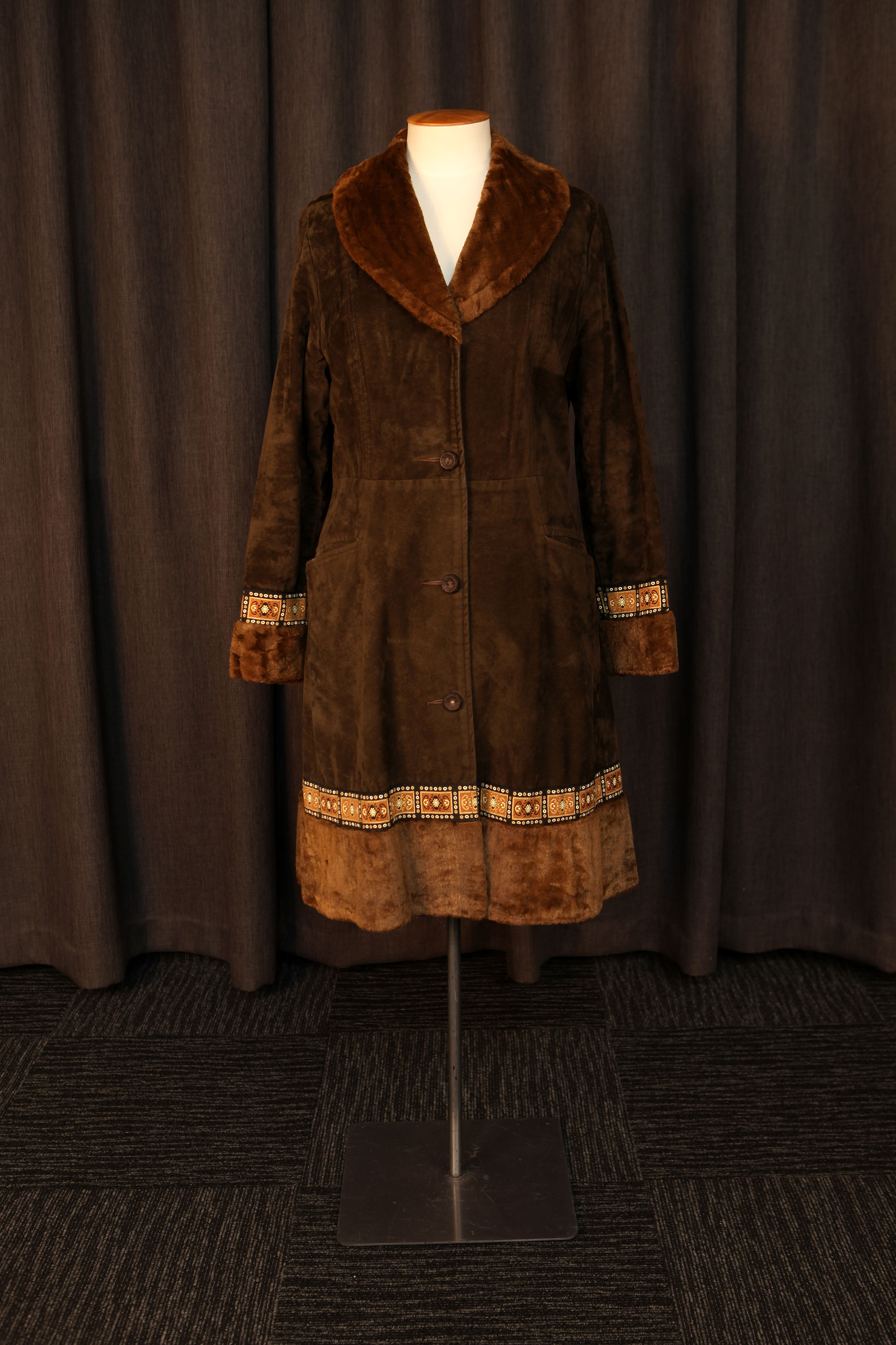 Marianne Lock was 15 years old when she moved to Wellington from Bluff in 1974. The cost of living was higher in Wellington so Marianne's mother returned to work as a nurse at Wellington Hospital. "Mum bought this coat for me with her first pay," Marianne recalls. "I loved it because it was up-to-the-minute as far as fashion was concerned. It was also very expensive ($54) from my perspective and one of the very few items of clothing that had been purchased, as my mother made most of our clothes herself."