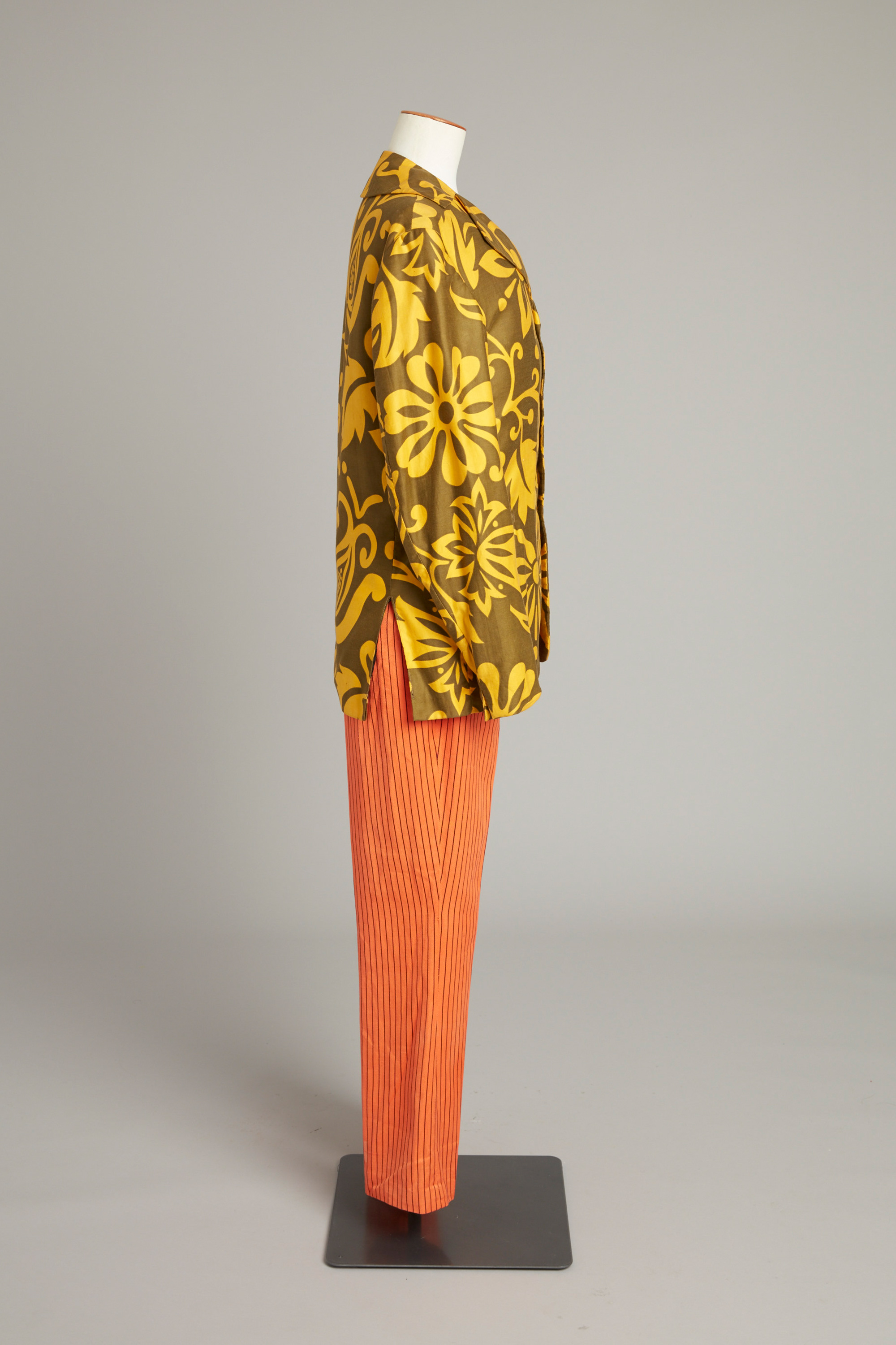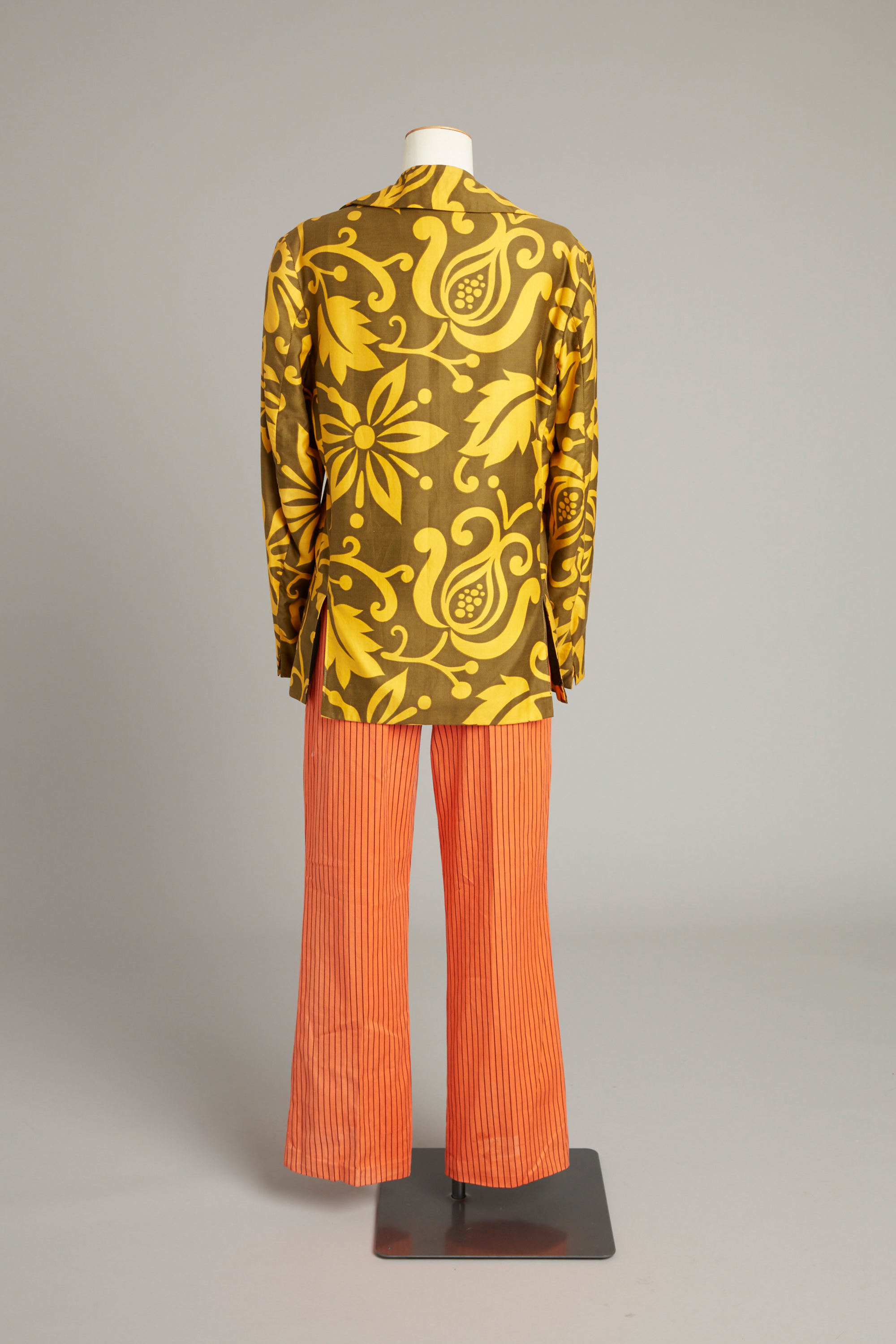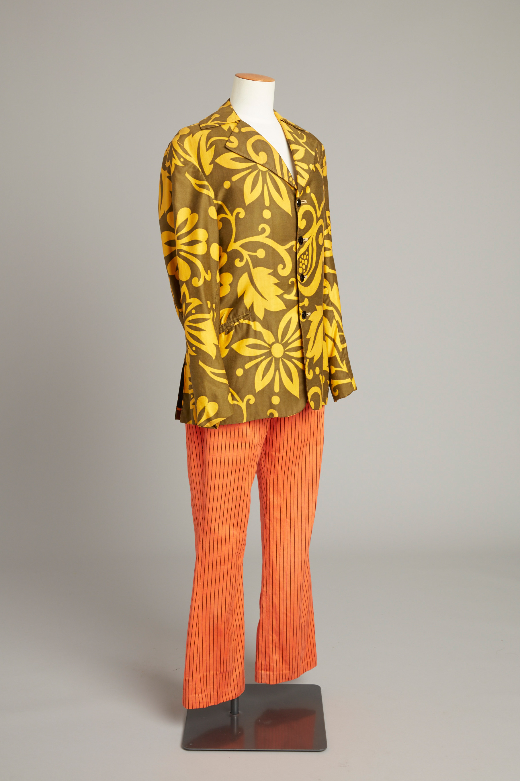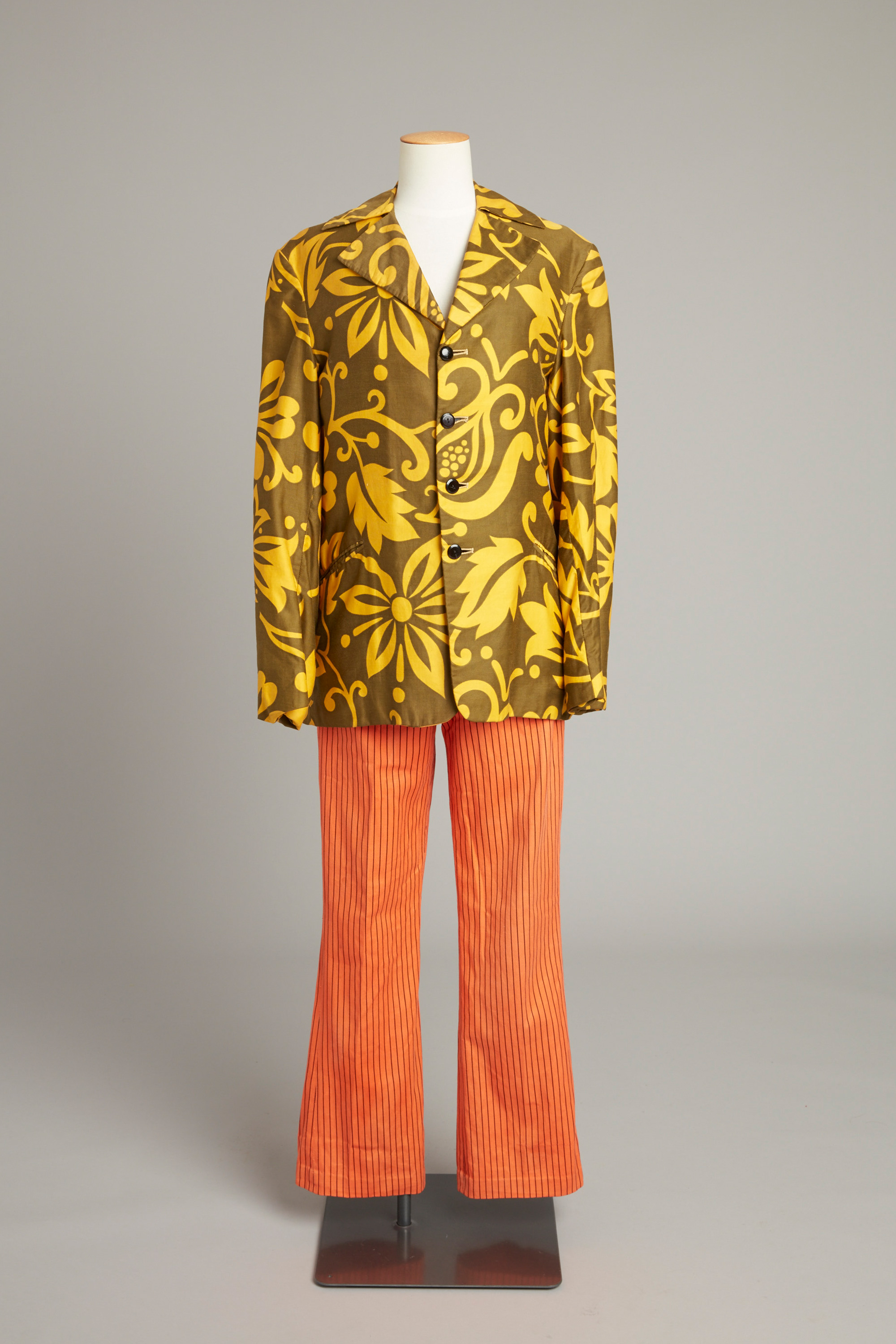 Floral print men's jacket & orange trousers