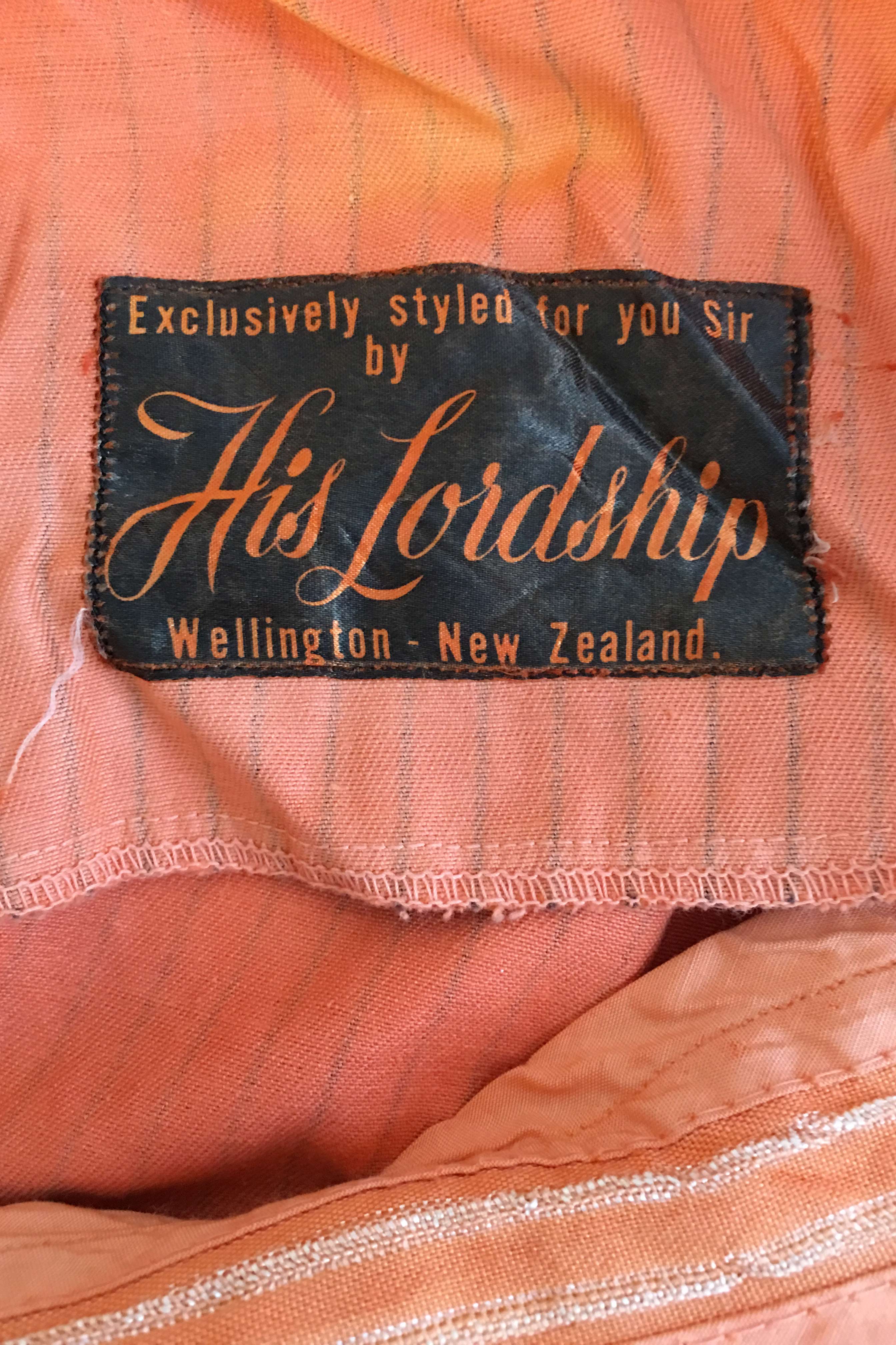 In the late 1960s, tv music shows such as C'mon showcased performances by New Zealand musicians. Musicians appeared in trendy outfits by 'it' designers including Annie Bonza and Gerry Broughan - designer for His Lordship. The band Larry's Rebels used to visit the His Lordship store to buy outfits for their shows. Larry Morris is wearing a His Lordship jacket on the cover of their 1967 self-titled EP. When British popstars, Paul and Barry Ryan toured New Zealand, they were backed by Larry's Rebels. They apparently "flipped" when they saw Larry's His Lordship jacket, each later buying an identical jacket of their own. Larry later gave the jacket to fellow band member Terry Rouse.