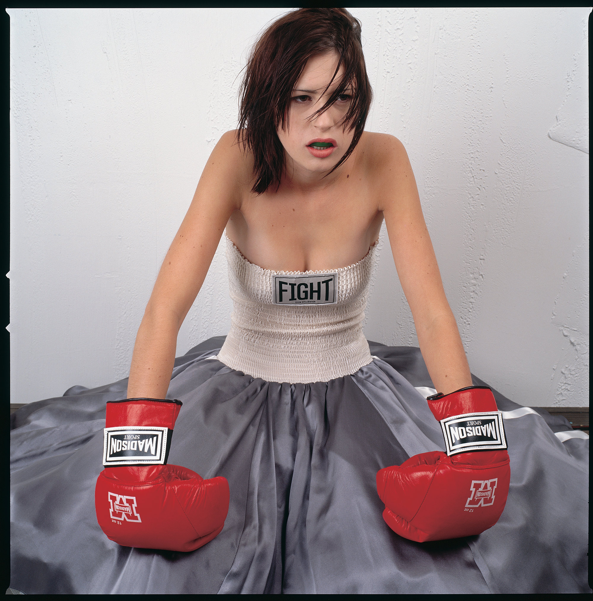 This dress by Kate Sylvester featured in her 'Fight Club' collection, and was photographed by Stephen Tilley.