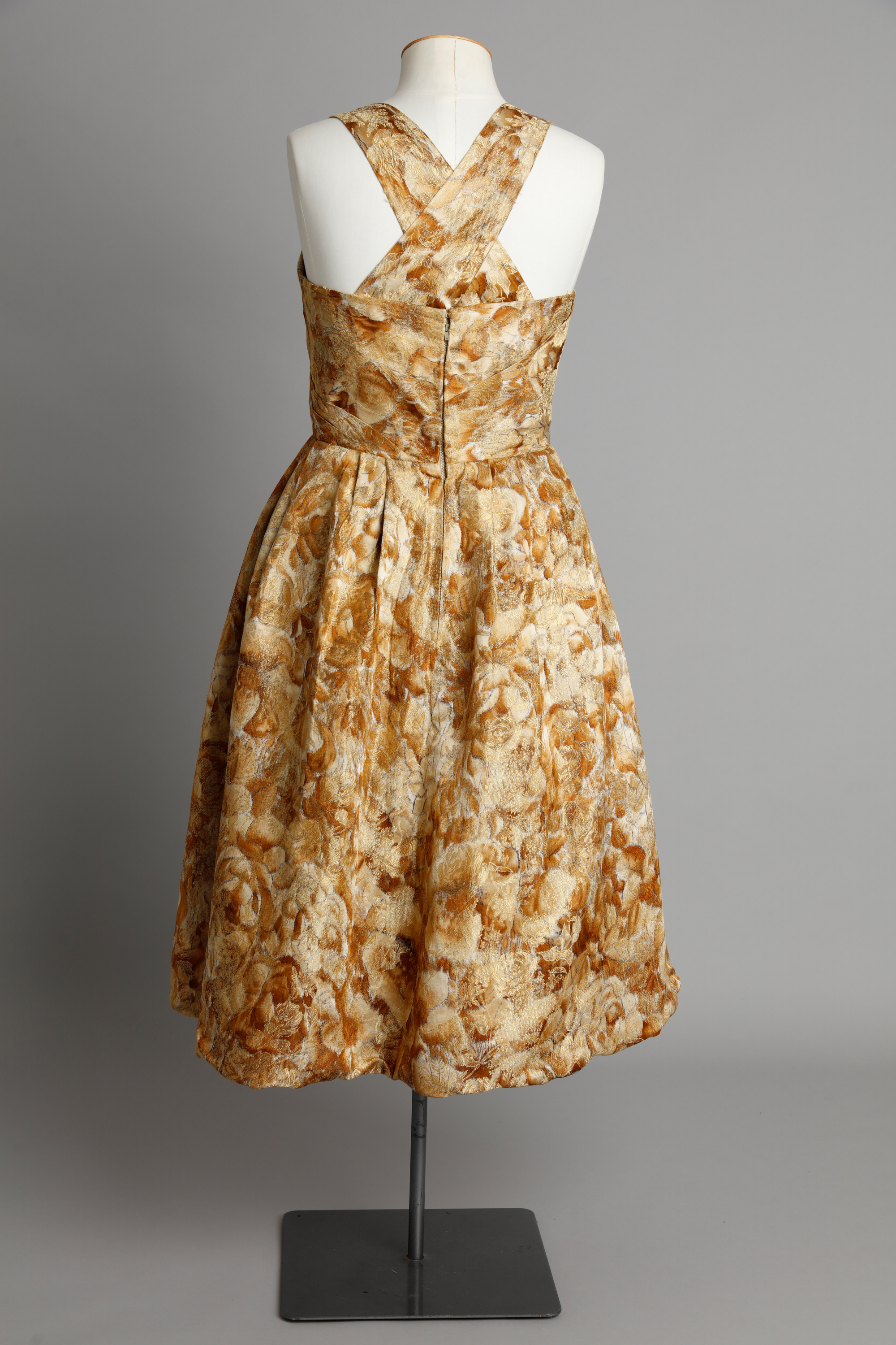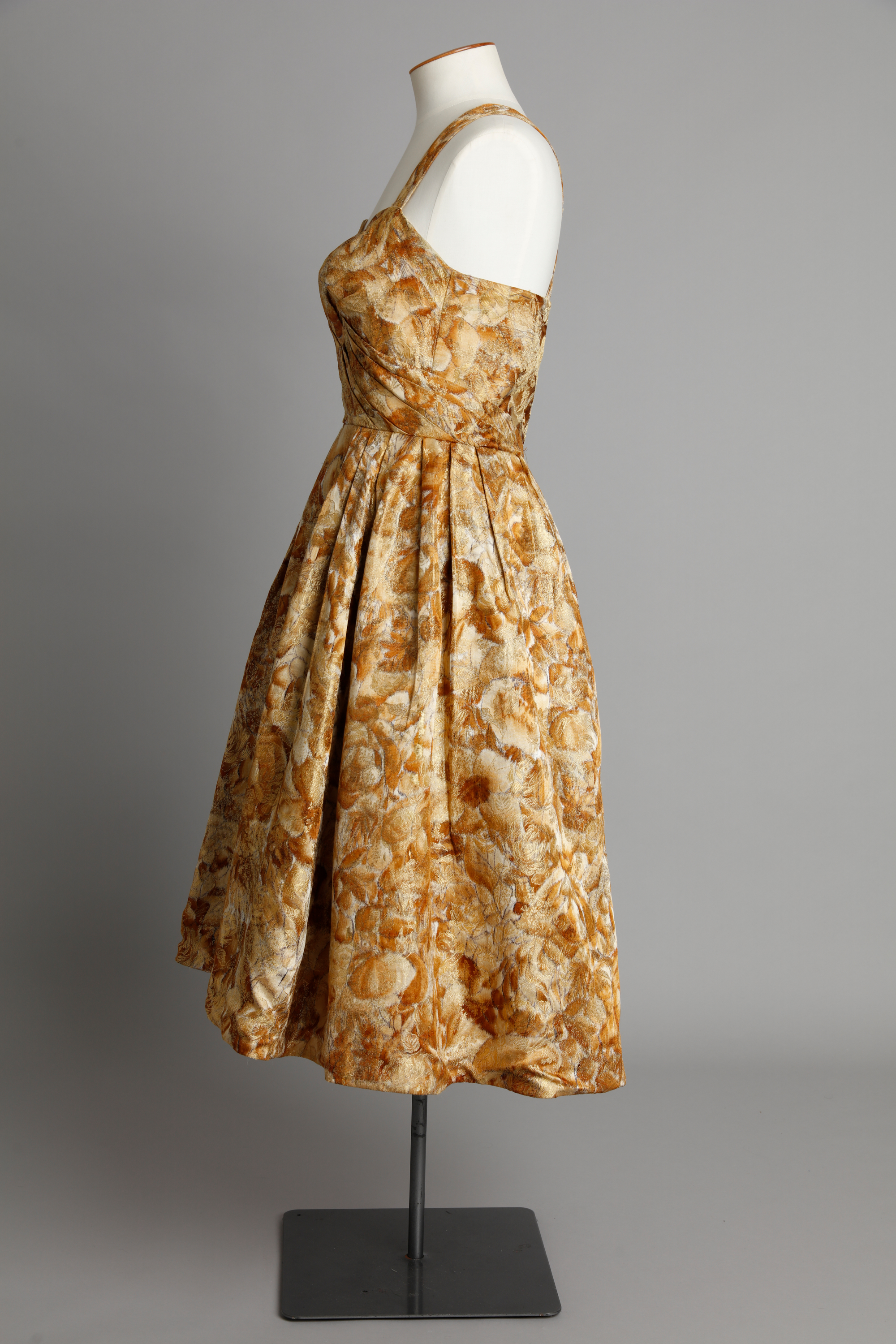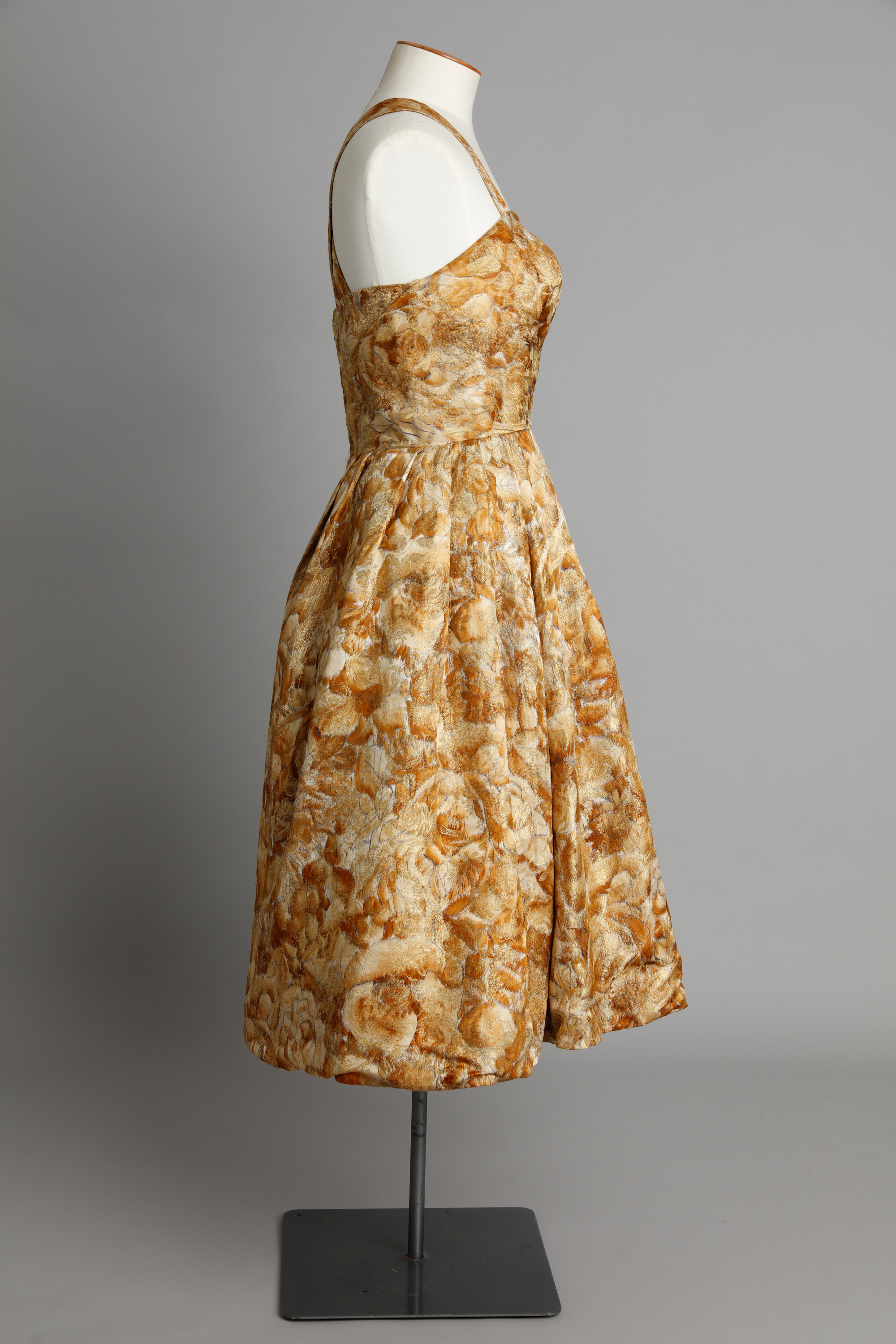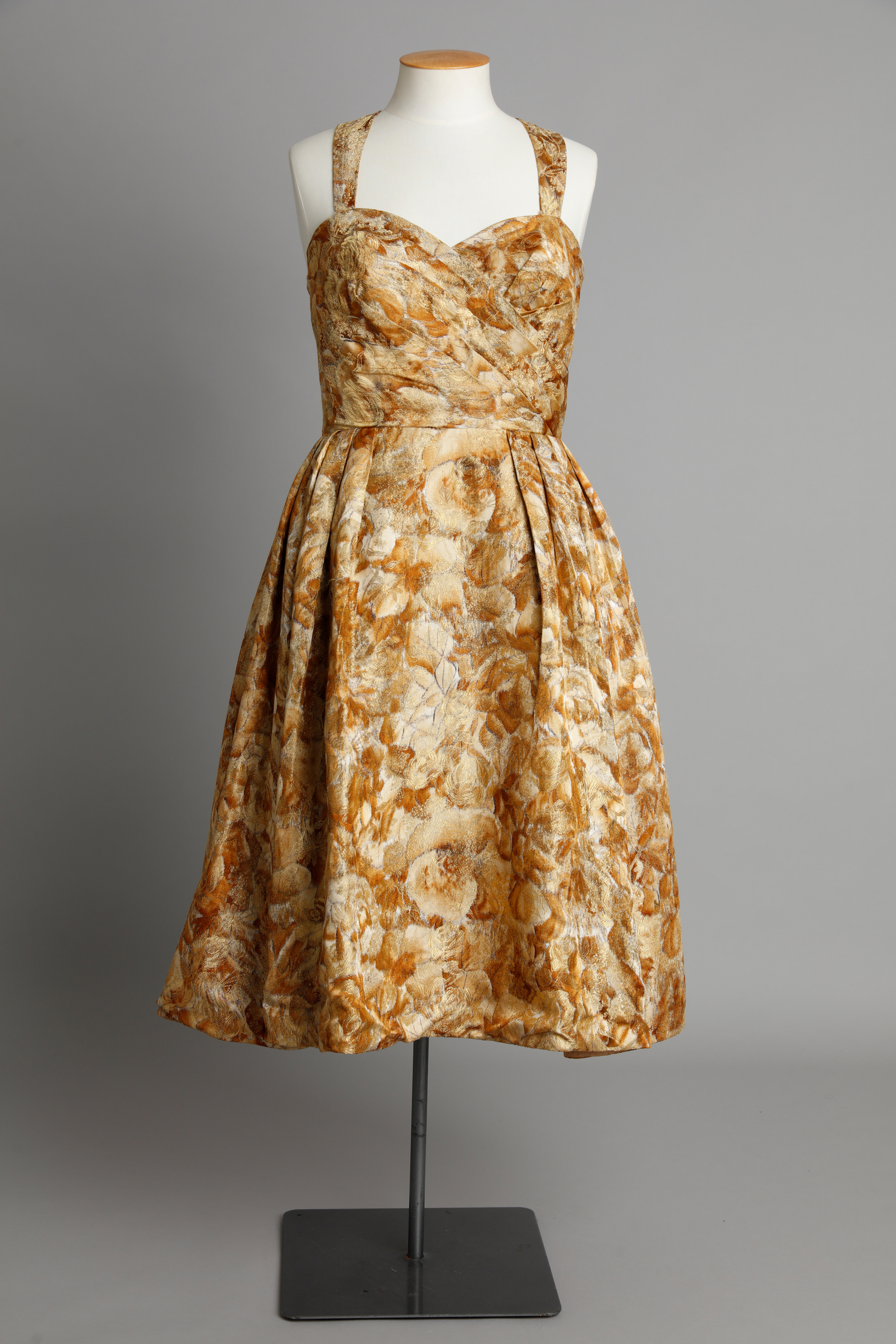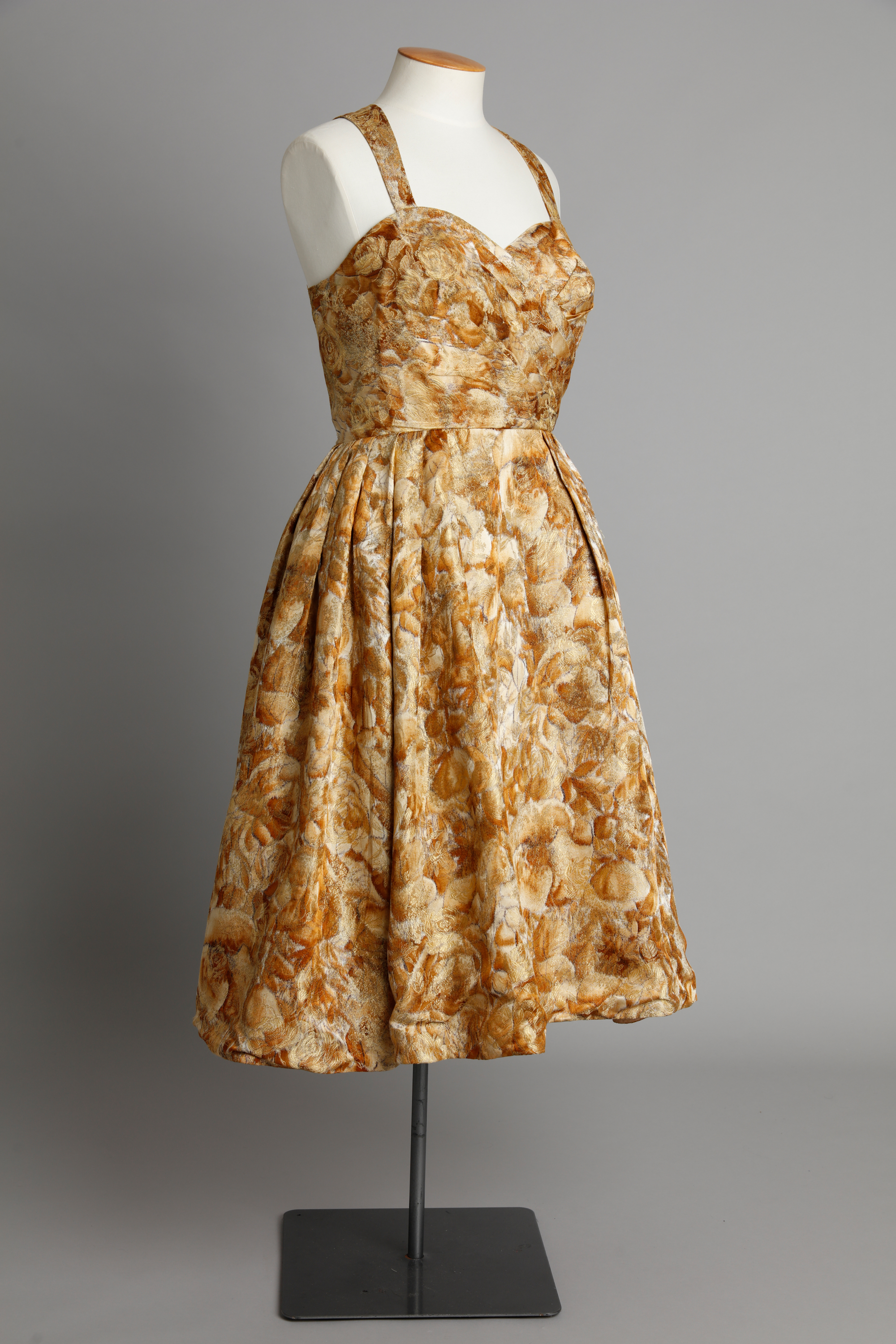 Gold floral dress with sweetheart neckline