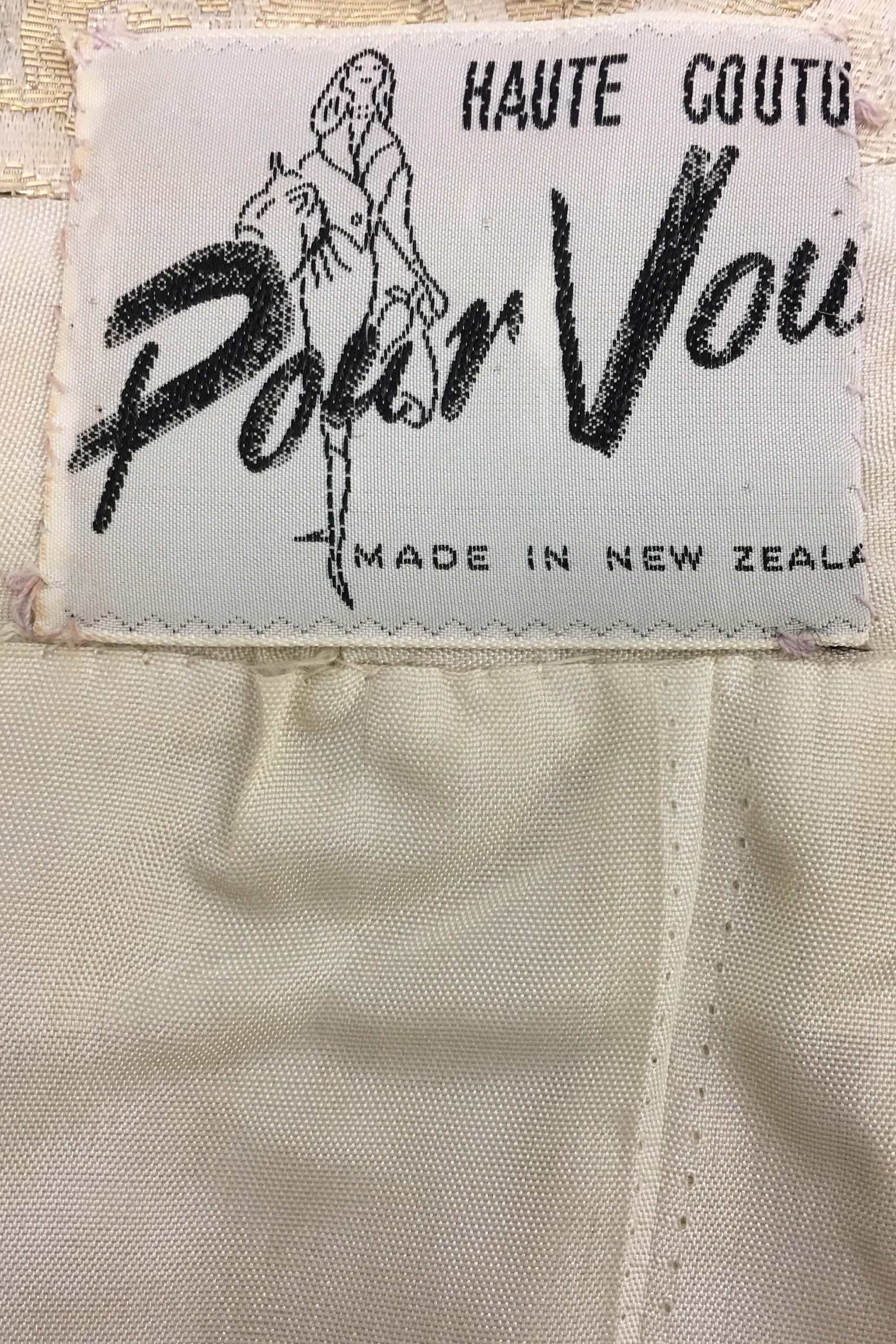 Pour Vous was owned by Joy Nesbit and Colleen Frei. Their designs were stocked at department stores and salons all over New Zealand. This Pour Vous garment was designed by their young new designer, Annie Cole (later Bonza), in about 1962.