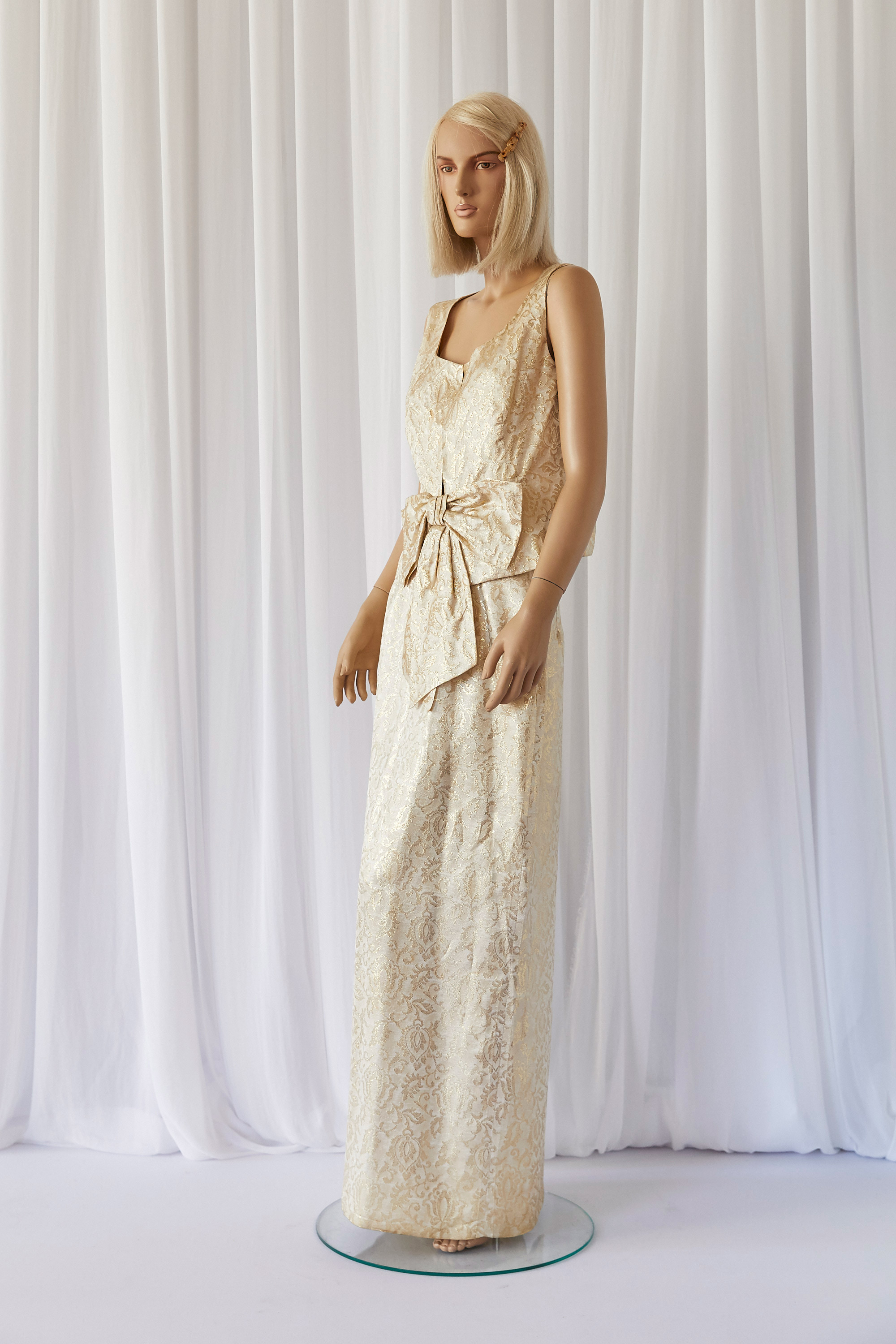 Gold two-piece with large bow