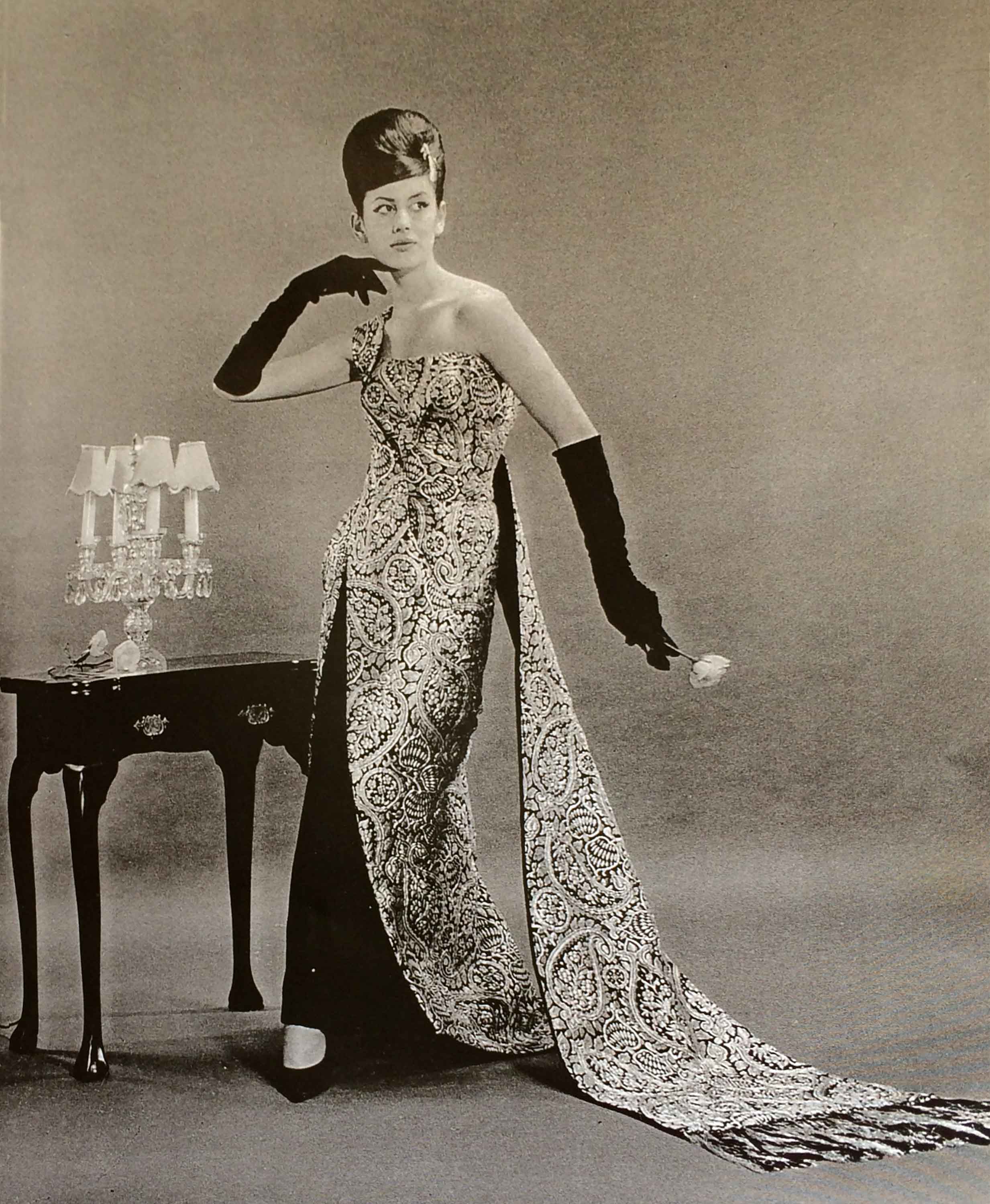 In 1961 Bruce Papas won the inaugural Golden Shears Awards with his Golden Peacock gown. The fabric for the gown cost £81, an astounding amount considering most haute couture gowns of the time sold for £30. Bruce had ordered 1.5 metres of the fabric for a fashion parade, but he decided to use it for the competition when the Milne & Choyce owners suggested that he enter. The name of the gown, Golden Peacock, was inspired by the fabric. It was sold to a Belgian pianist. "It had only been on display in the window at Milne & Choyce for 20 minutes! They called me and I had to jump in a taxi and rush over to meet her."