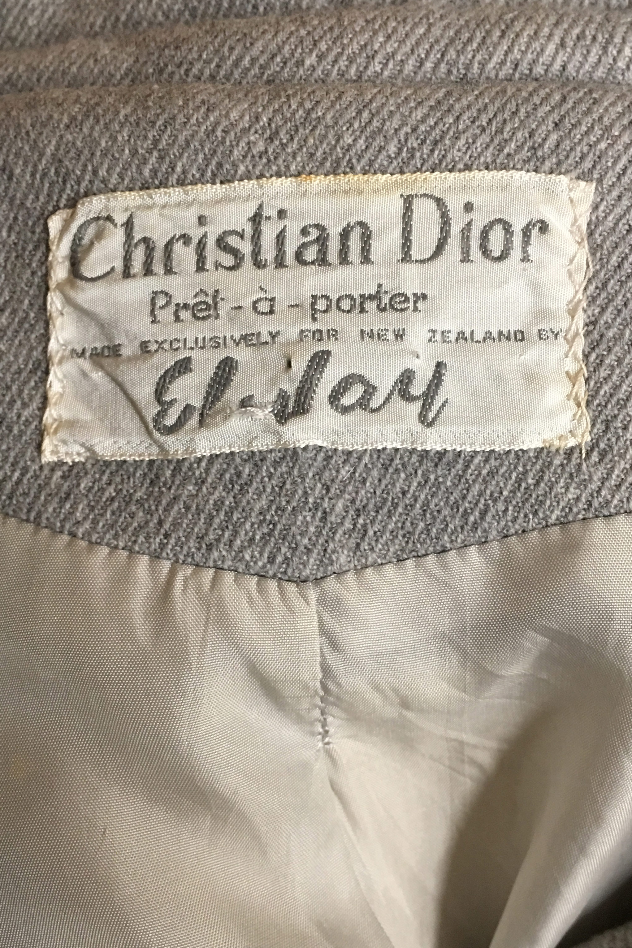 In 1953, Gus Fisher of El Jay was invited to take up the exclusive licence to produce Christian Dior originals in New Zealand. The offer was accepted and the agreement was signed with Christian Dior himself in Paris in 1954. Gus’ dedication to reproducing the authentic style of Dior even inspired him to create a scaled down replica of Christian Dior’s Paris salon in the El Jay premises in Kingston Street. Read more about Gus Fisher and the El Jay label in the New Zealand Fashion Museum publication Looking Terrific: The story of El Jay.