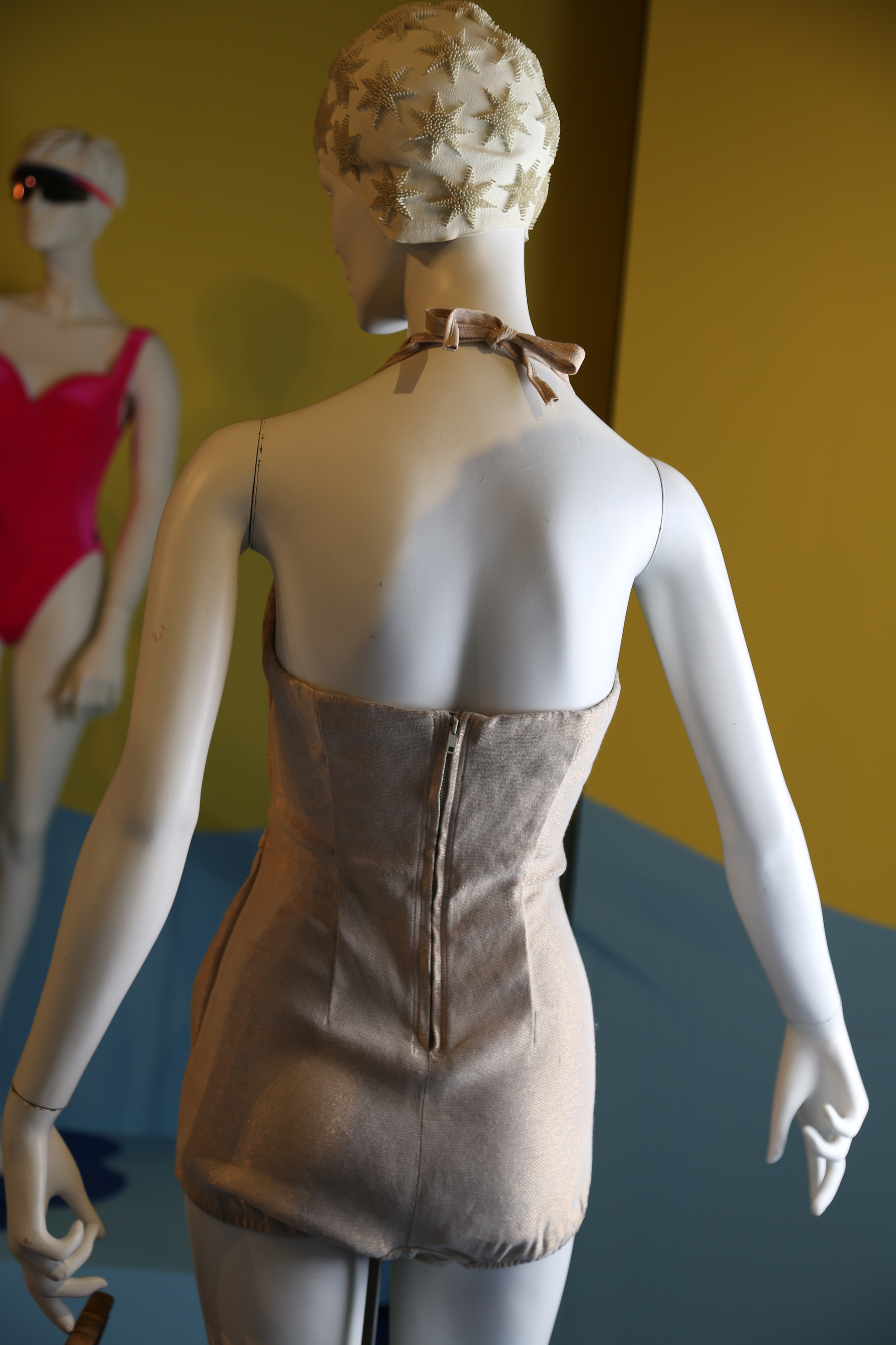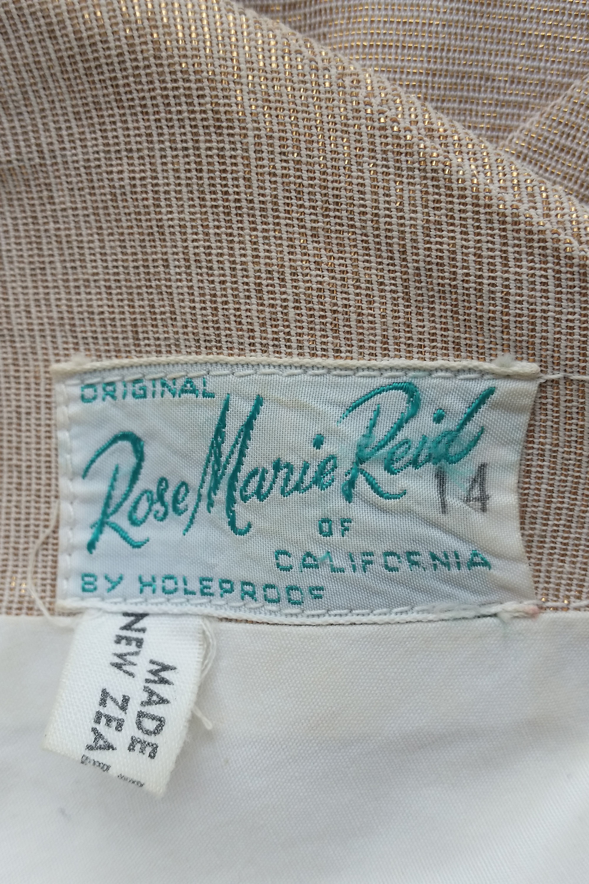 Rose Marie Reid gold swimsuit with double straps, 1958