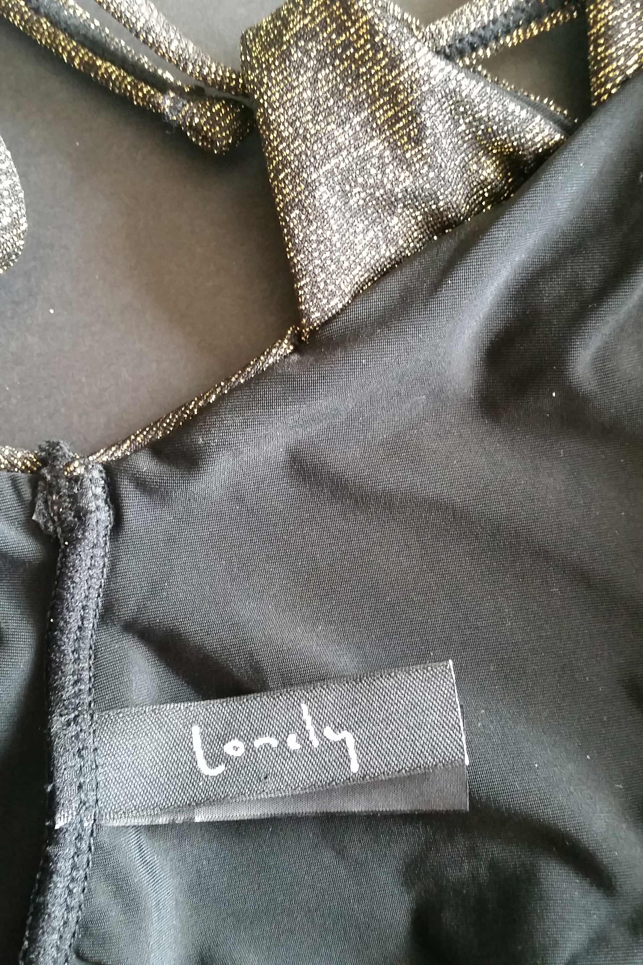 Lonely launched their swimwear range in 2014. It retains their signature aesthetic but is reinterpreted to work in lycra and mesh swimwear fabrics. This bikini was inspired by Lonely's original cut out bra and their signature Sabel brief. The top features signature cut out detailing and a clasp fastening at back. The brief has a high waisted strap with back clasp and open mesh side panels.