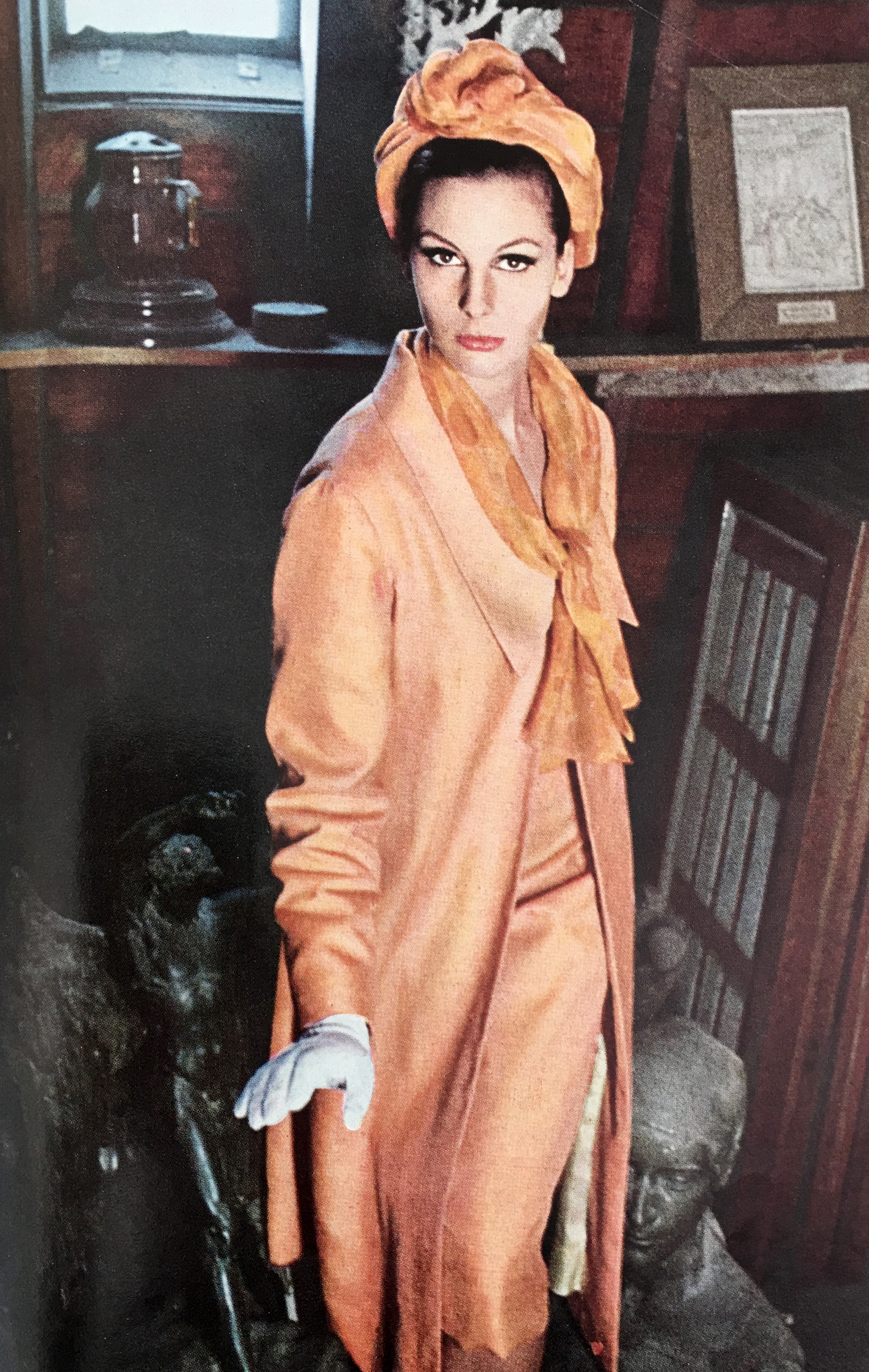 This Babs Radon ensemble appeared in the summer 1963 issue of New Zealand Vogue. The photo, by Michael Gillies, was part of an article called 'Five leaders of New Zealand Couture'.