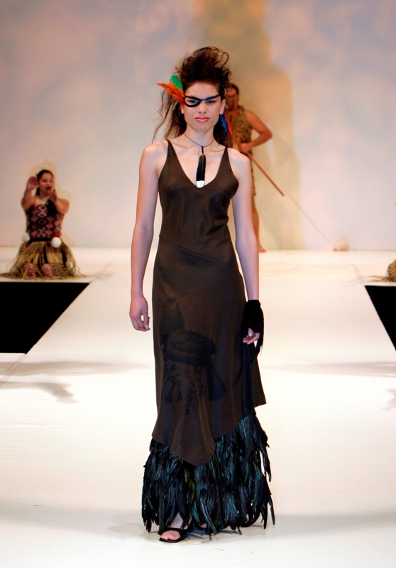 Sera Mitchinson entered in this dress in the evening wear section of Style Pasifika in 2003. It also received a standing ovation at New Zealand Fashion Week in 2003. "Te Papa were interested in buying it but for some reason I declined!"