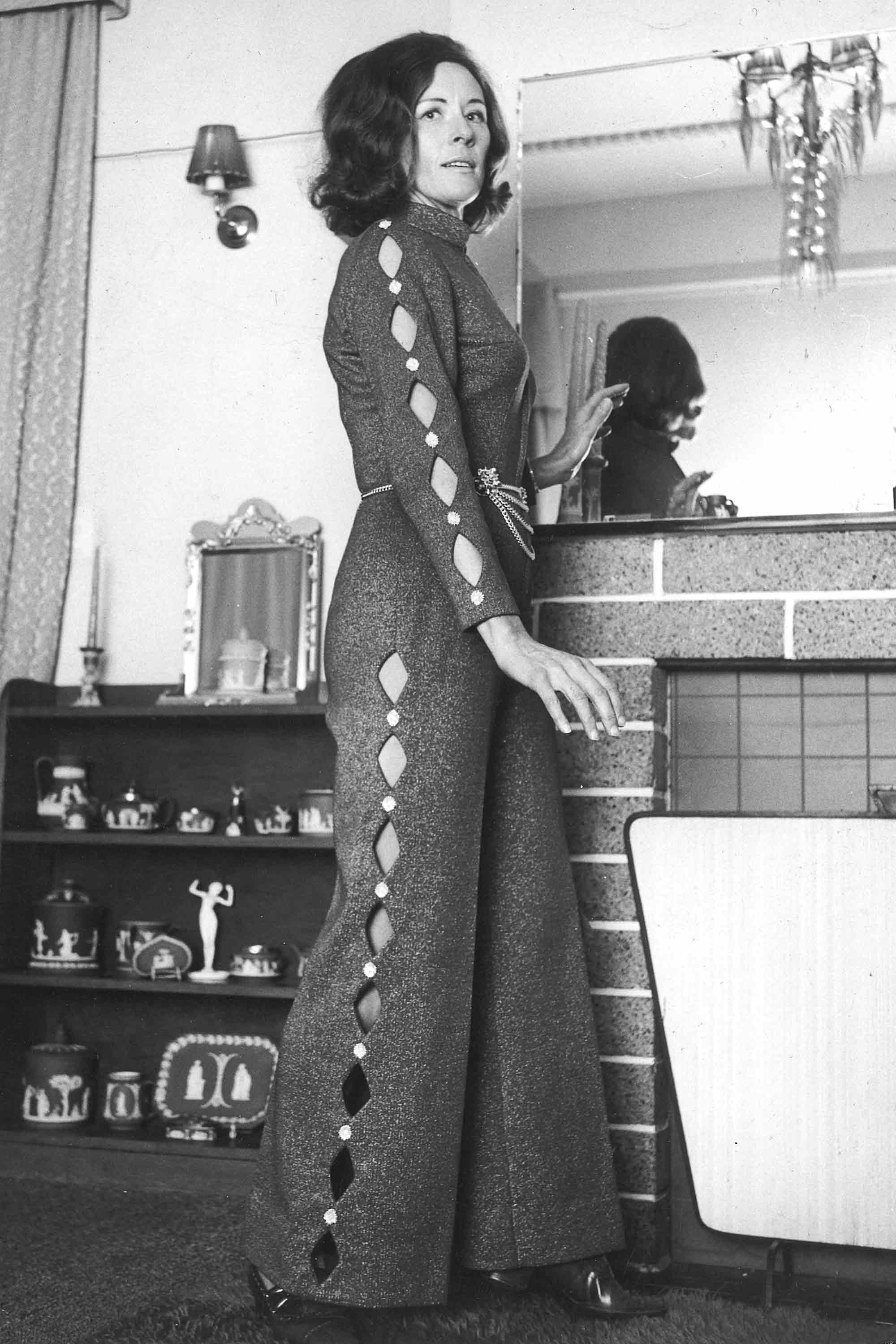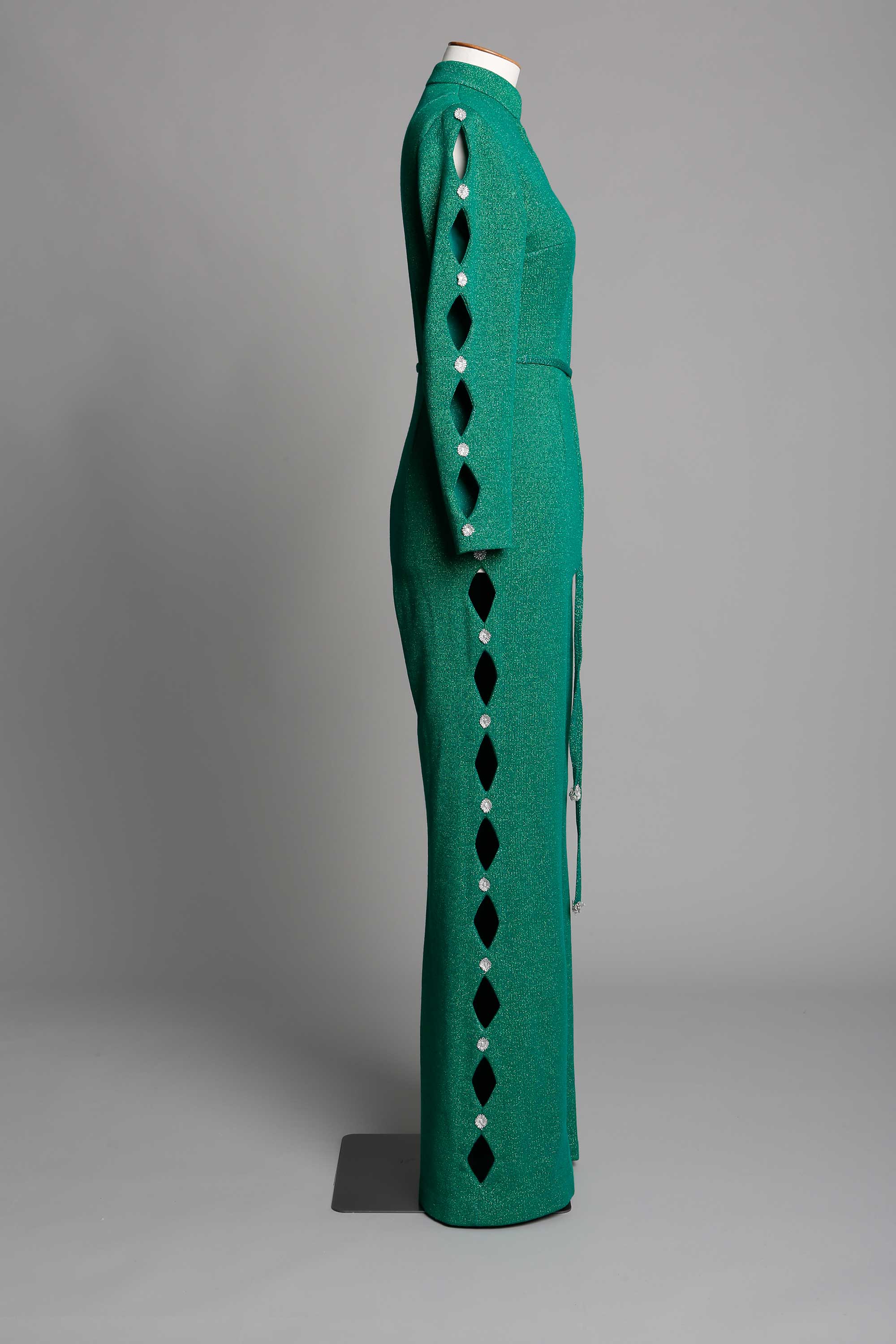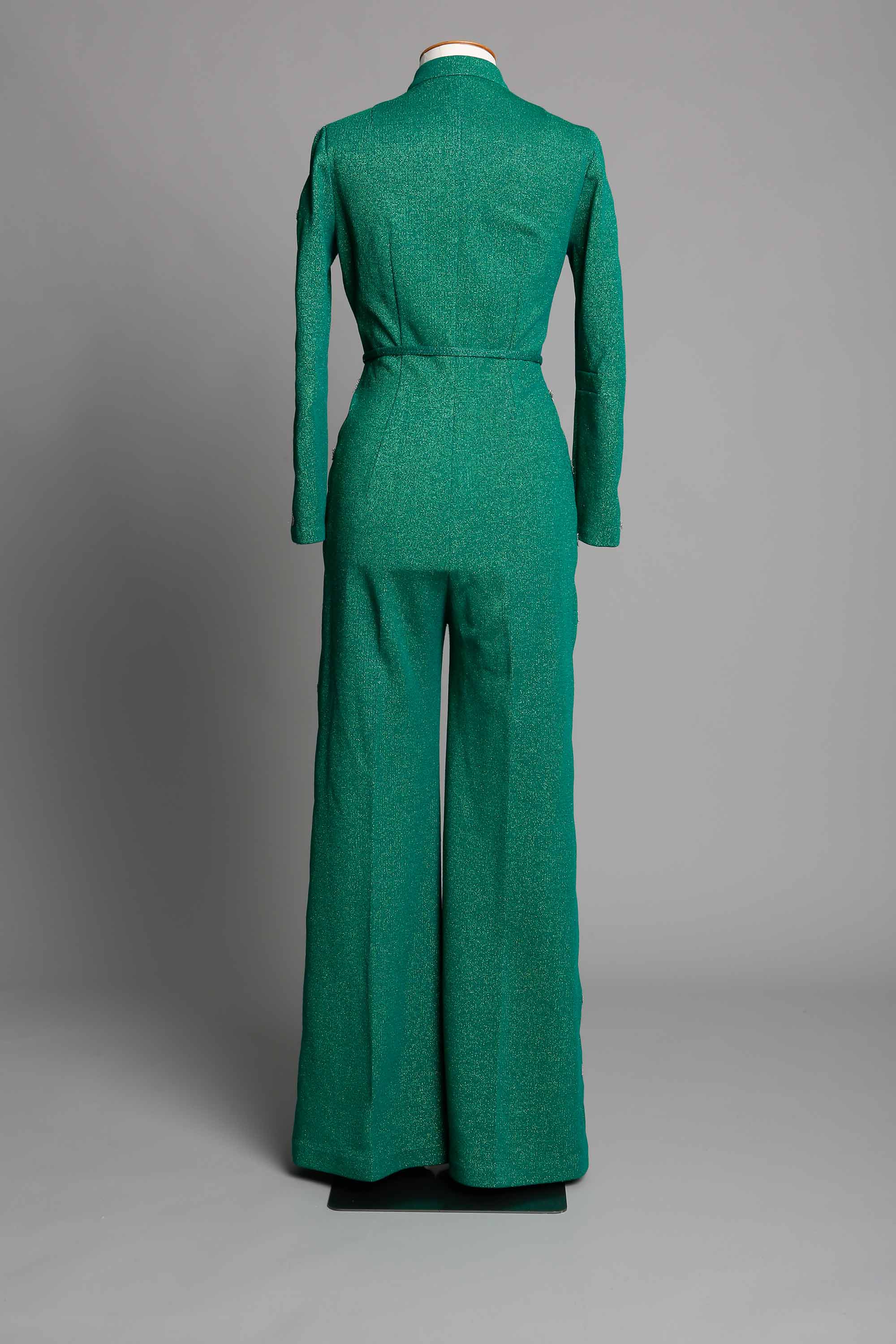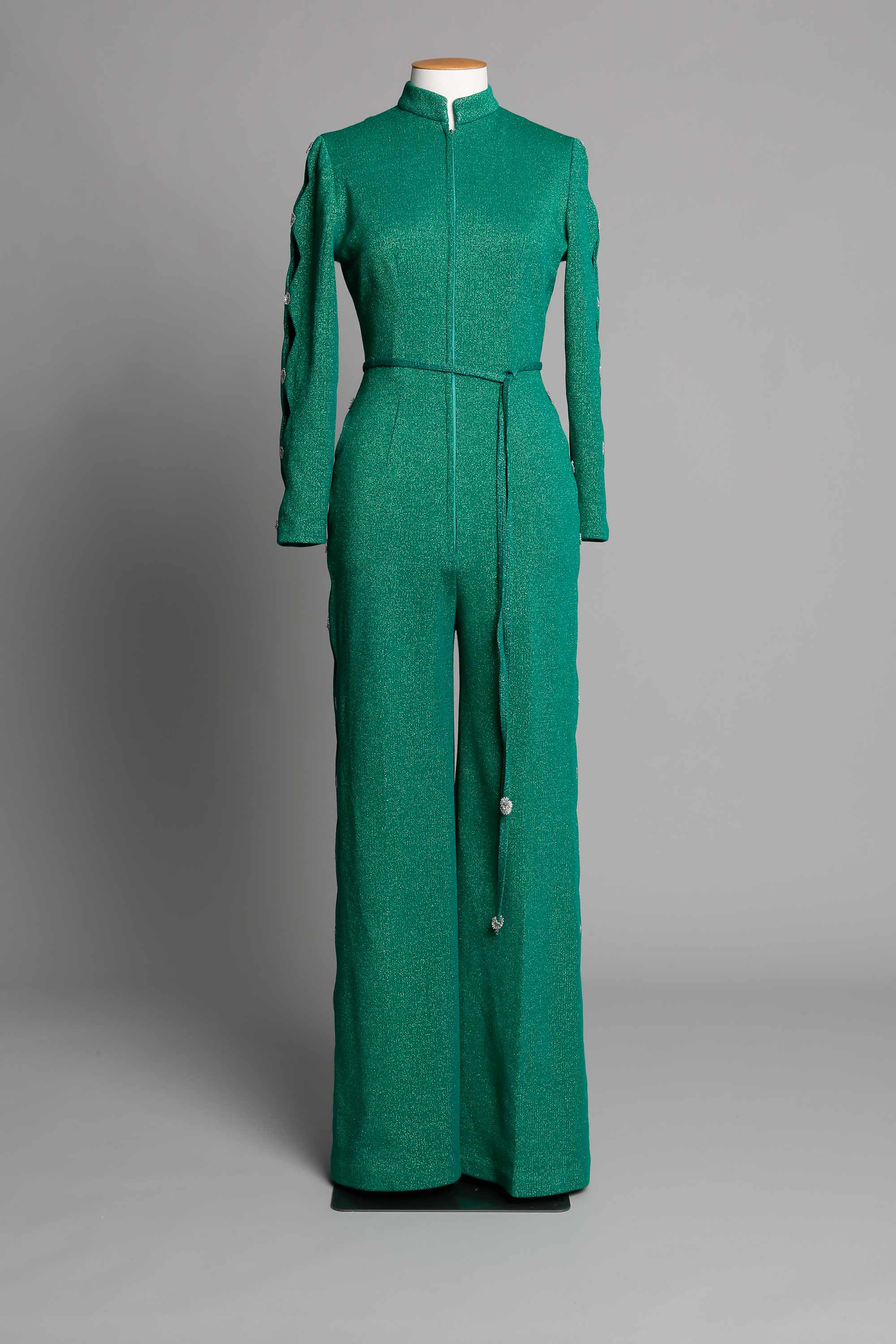 Zora Price's fanciful creations stood out against the typical dressmaking sensibilities of the 1970s. This emerald green jumpsuit was a fabulous and beautifully-tailored creation. “This is a jumpsuit that I had, this green jumpsuit. I used to have the slots on the sides up to the top of the hip, diamond shapes, and my husband said ‘you need to get those further up’, I said ‘I can’t have those further up! There’s bare skin through there.’ He said, ‘That doesn’t matter, just hike your pants up a bit further, you’ll be alright’, so I was, that’s what I did with those.” Read more about 1970s fashion in the New Zealand Fashion Museum publication The Age of Aquarius: A 70s revolution in fashion. Listen to an interview with Zora Price talking about fashion in 1970s Christchurch.