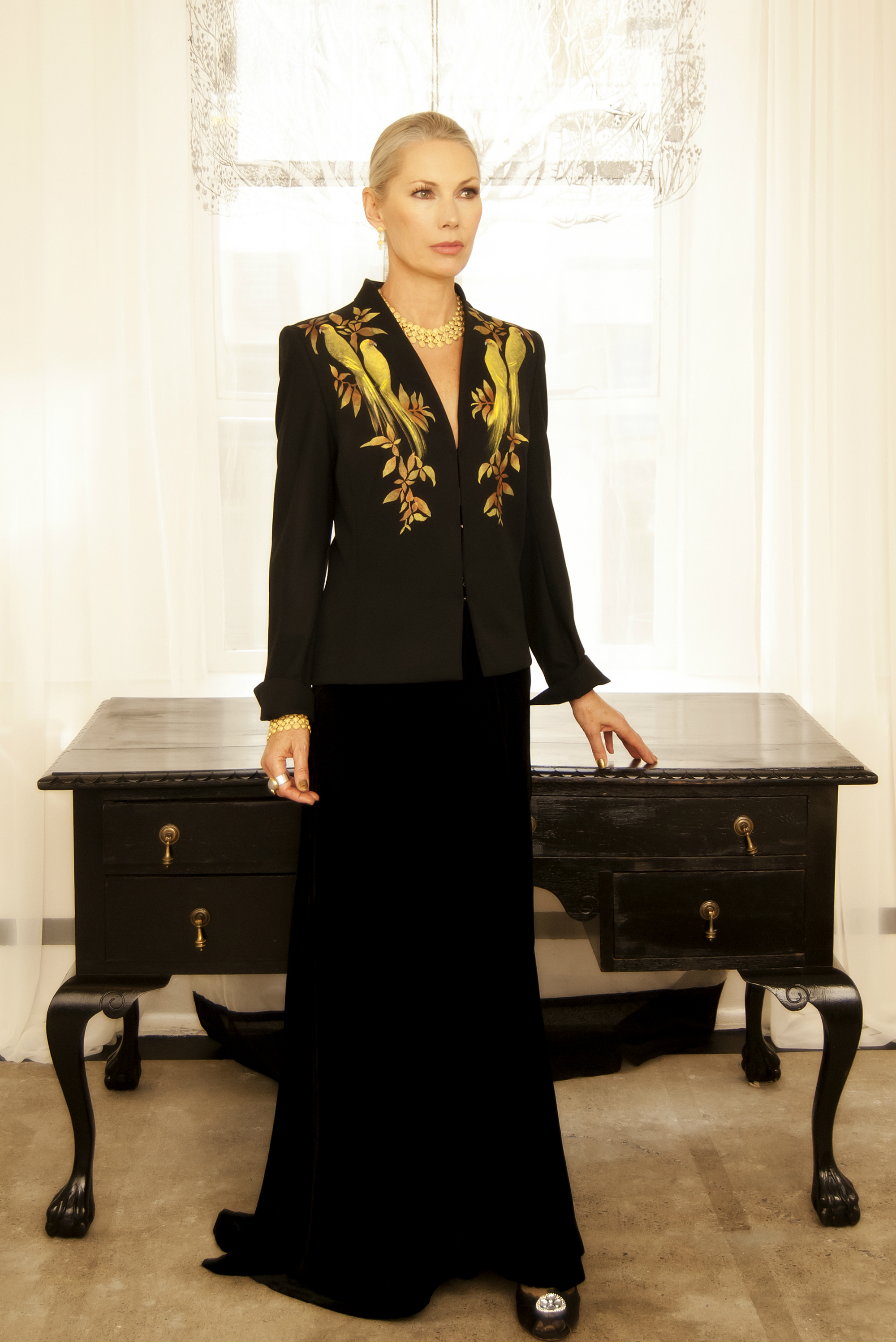 This Kakariki wool jacket was hand-painted by Liz Mitchell’s long-term collaborator, artist Gillian Driver.