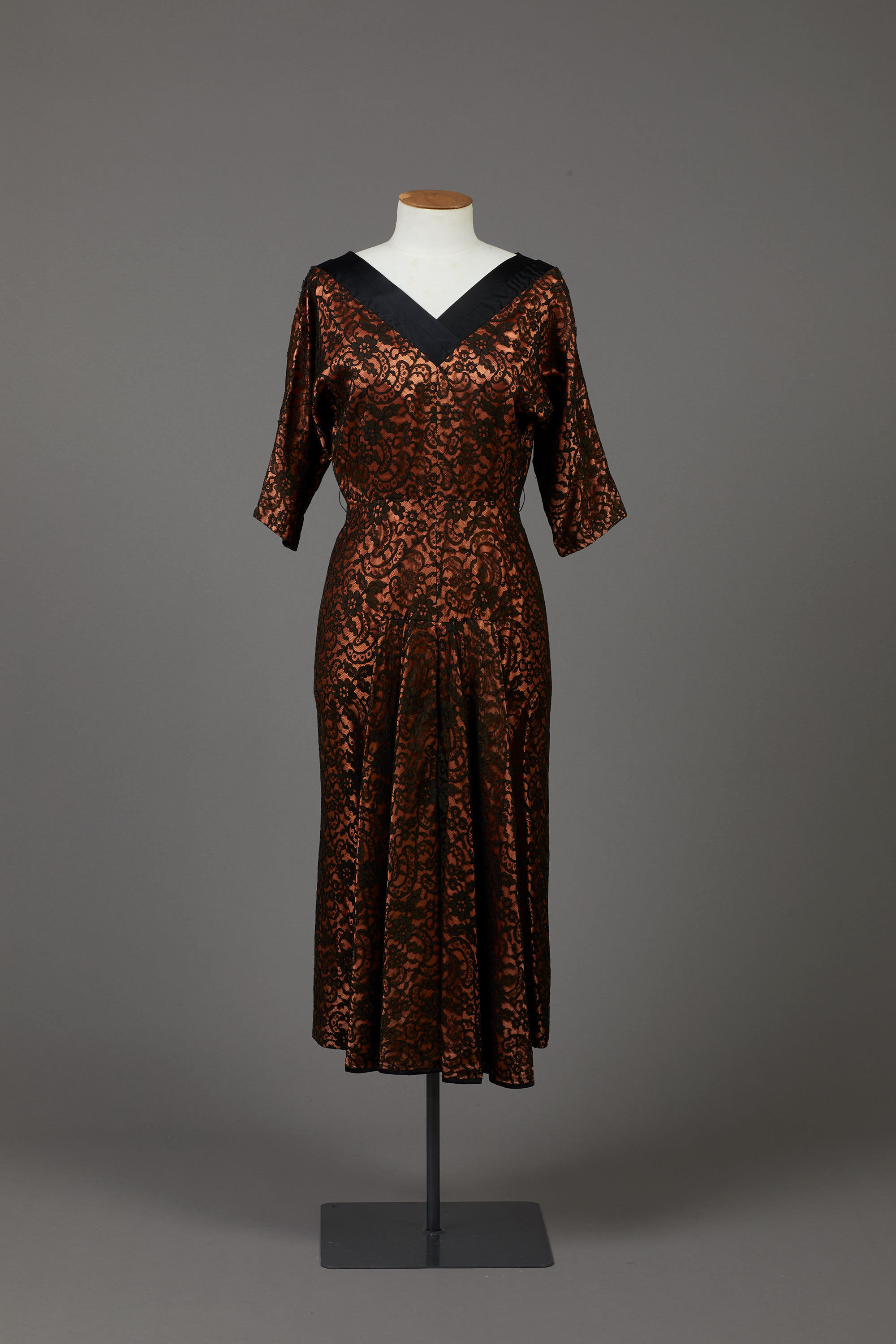 This dress is labeled 'Fashionbilt', one of a number of labels made by Wellington manufacturer, Fashions Ltd.